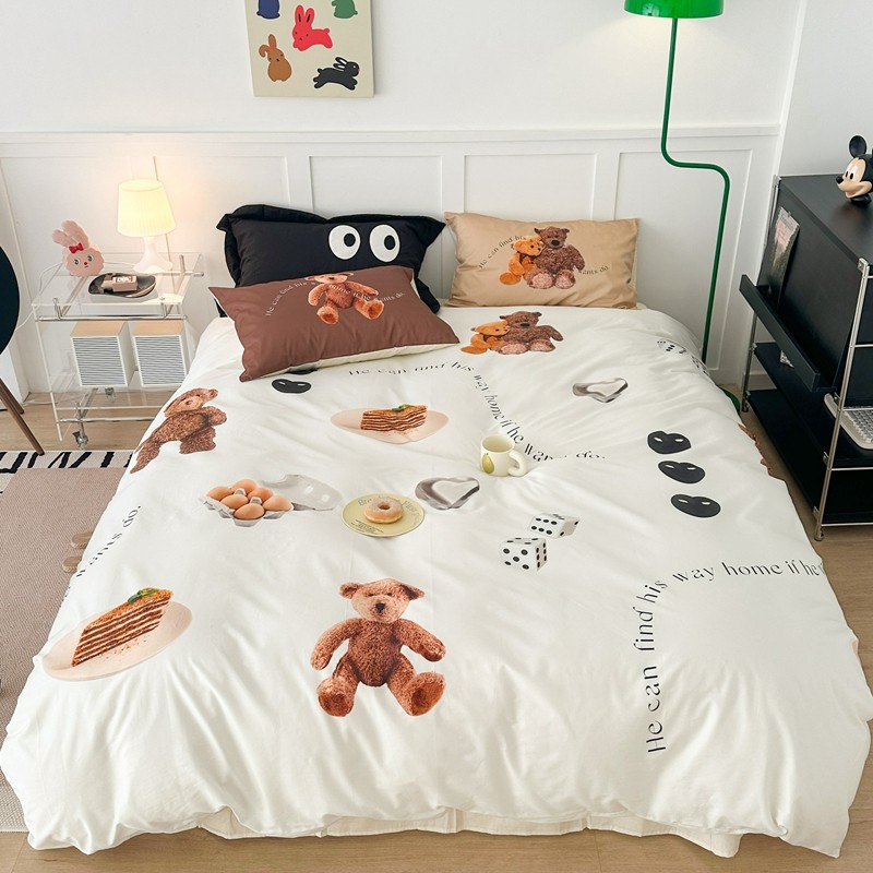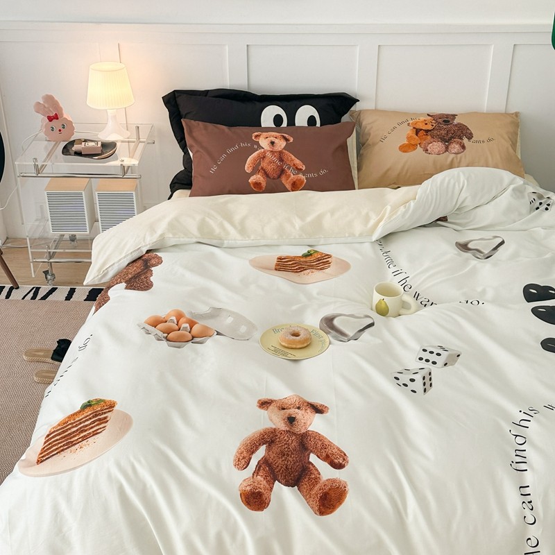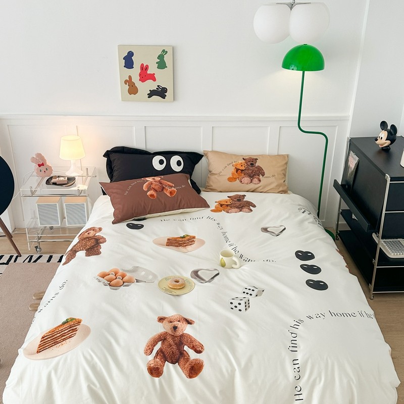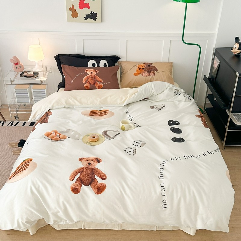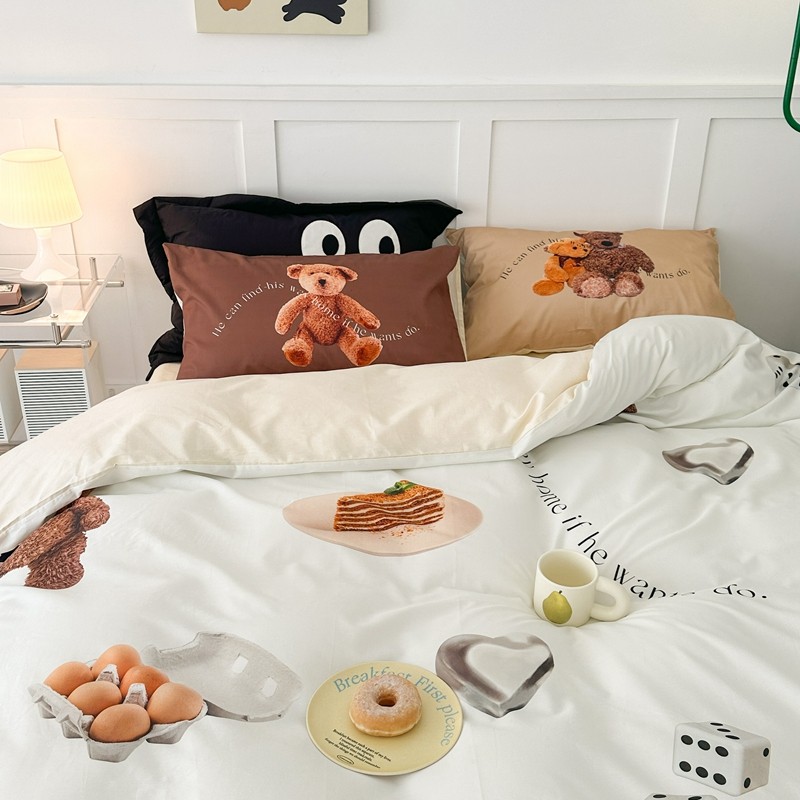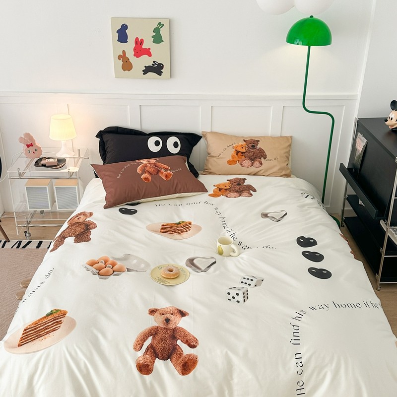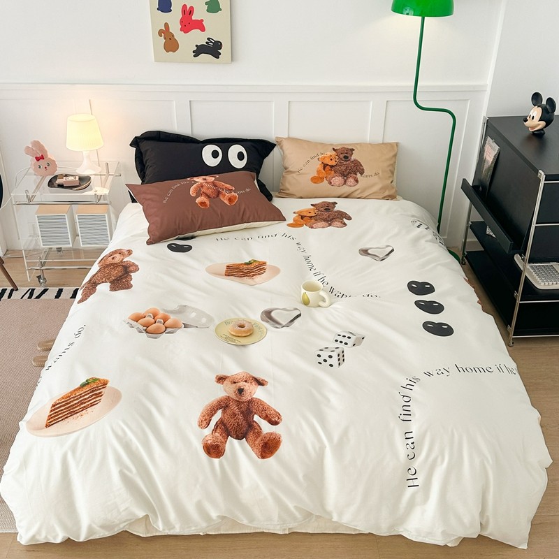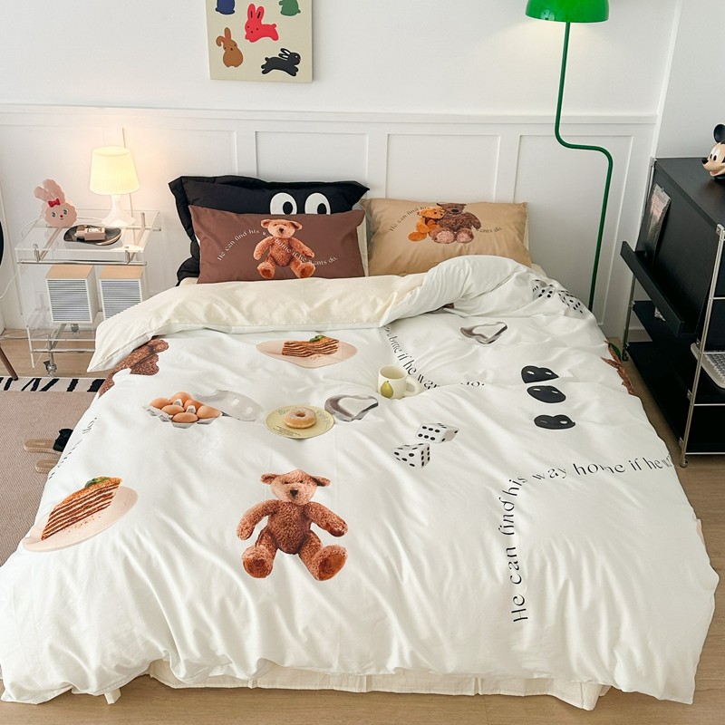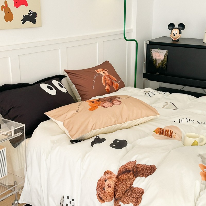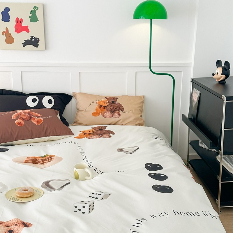 (总)昔可 2023新款学生季卡通普通款四件套,彩色气球熊,彩条恐龙,憨憨熊,花蜜小兔,蘑菇兔,圈圈草莓,蔬菜小兔,郁金香小萌狗