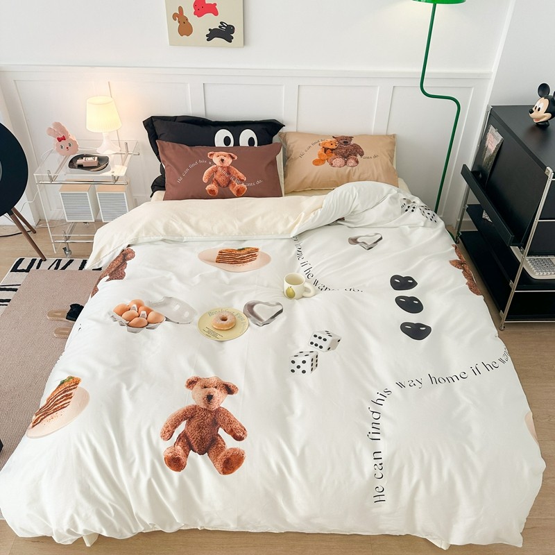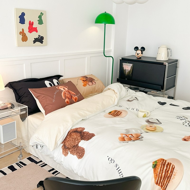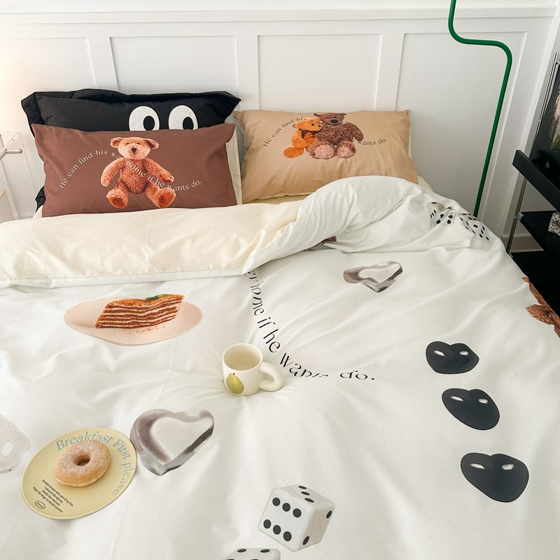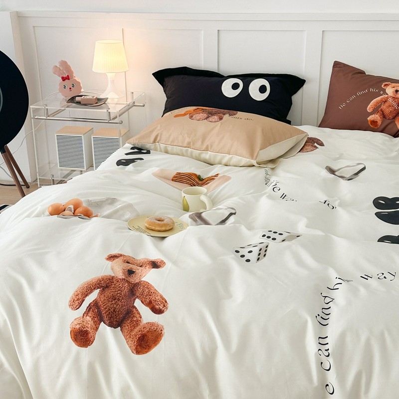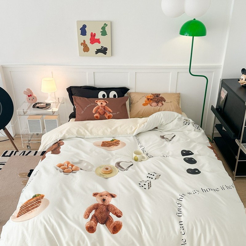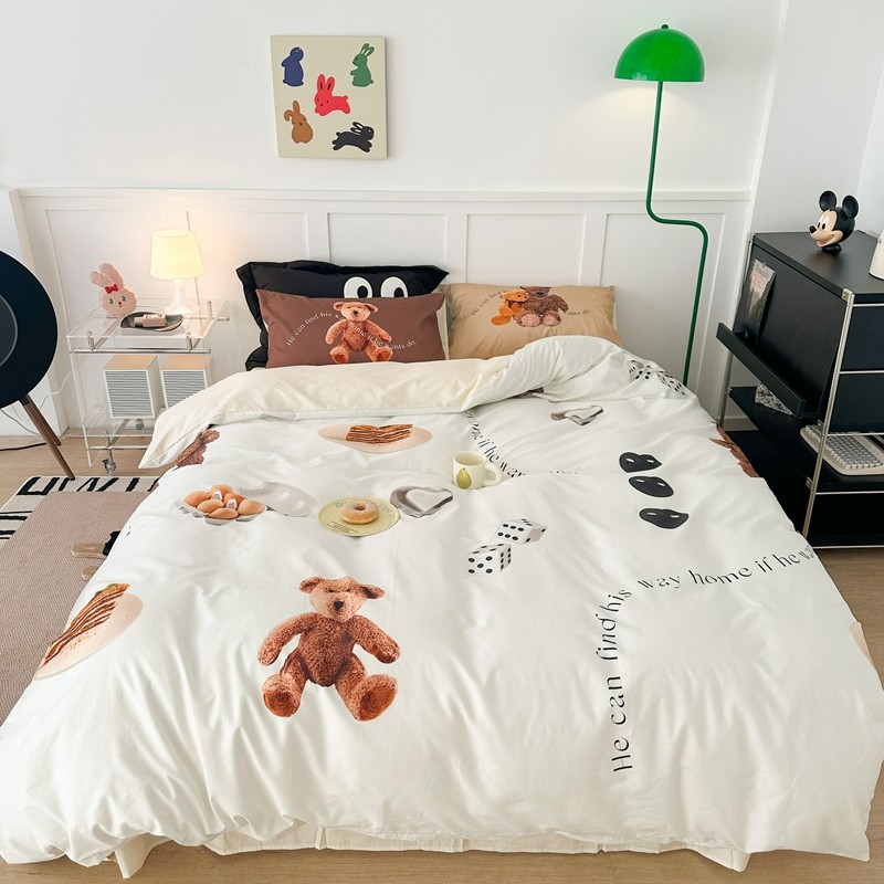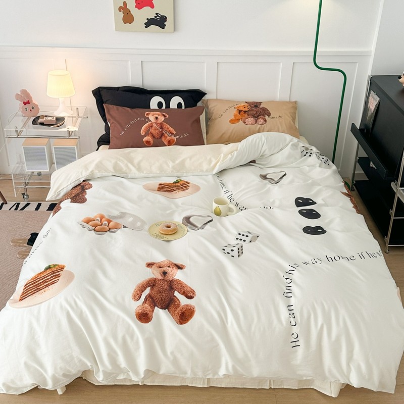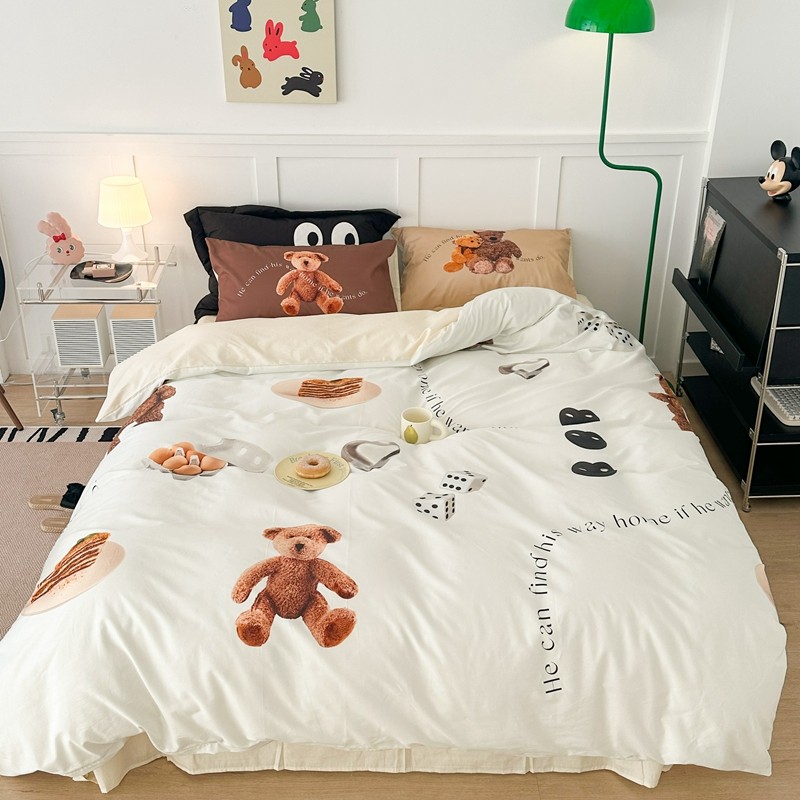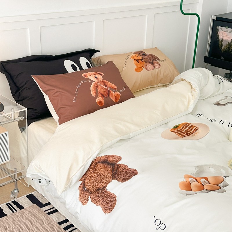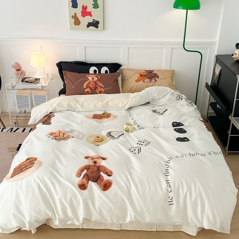 (总)昔可 2023新款学生季卡通普通款四件套,彩色气球熊,彩条恐龙,憨憨熊,花蜜小兔,蘑菇兔,圈圈草莓,蔬菜小兔,郁金香小萌狗