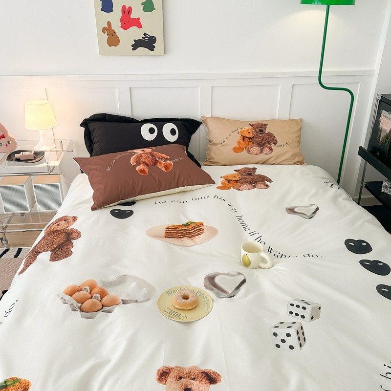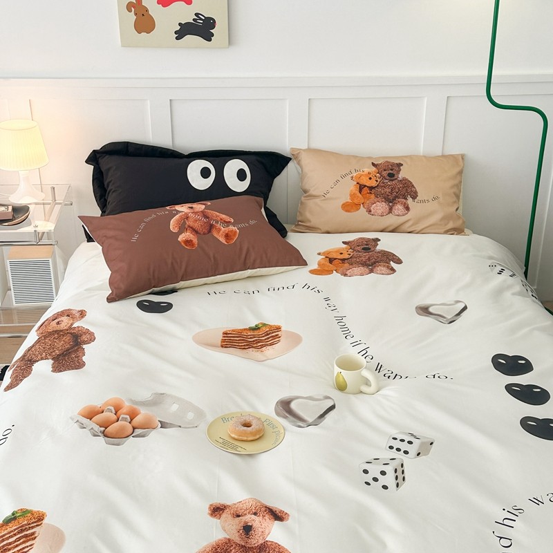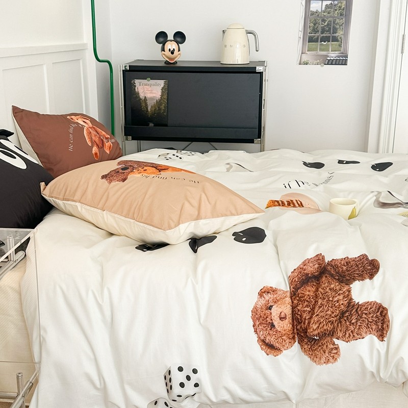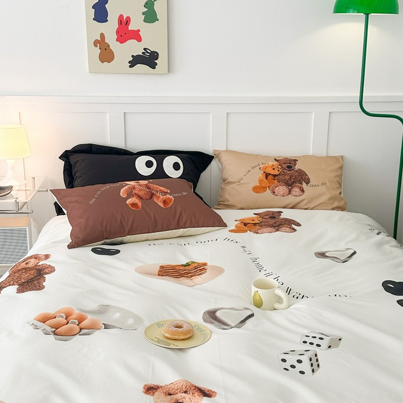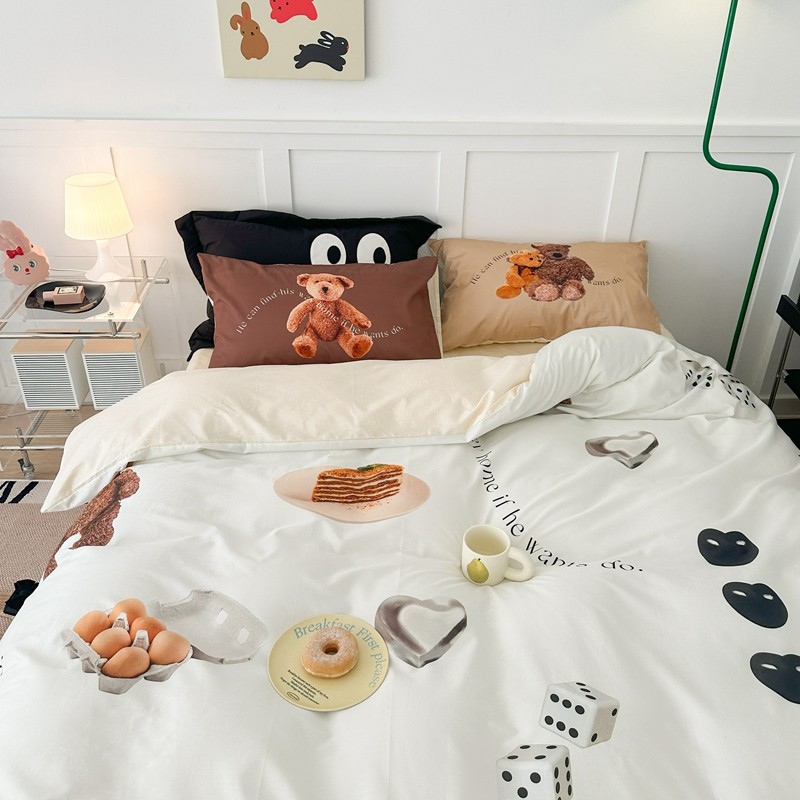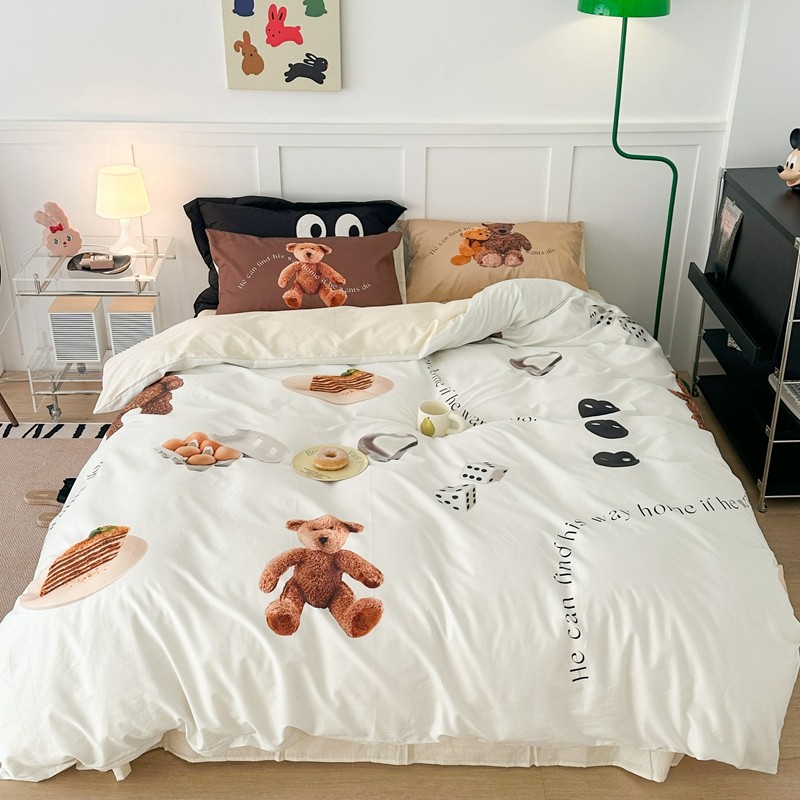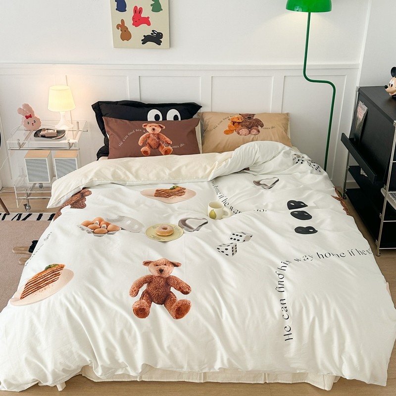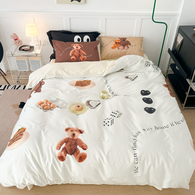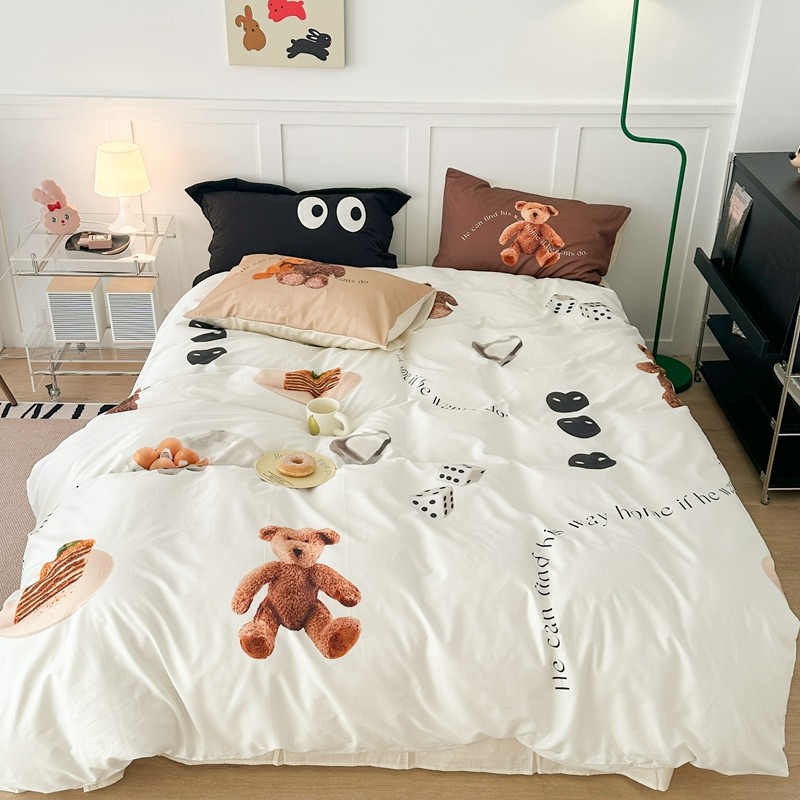 (总)昔可 2023新款学生季卡通普通款四件套,彩色气球熊,彩条恐龙,憨憨熊,花蜜小兔,蘑菇兔,圈圈草莓,蔬菜小兔,郁金香小萌狗