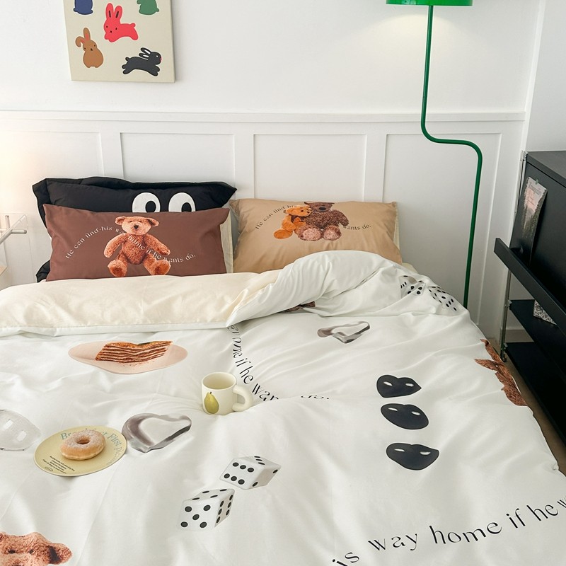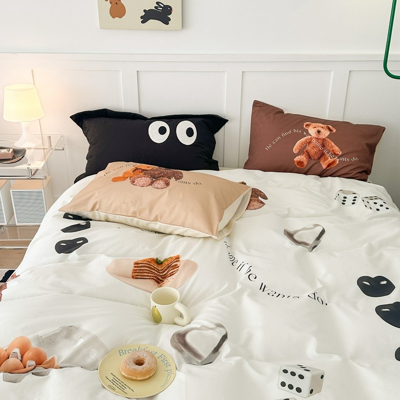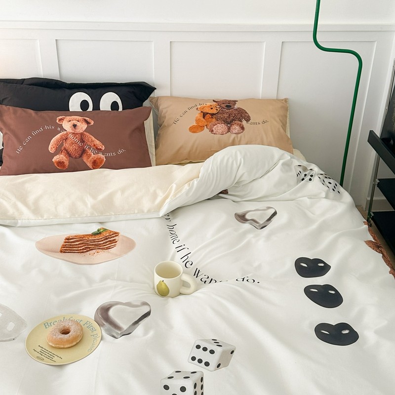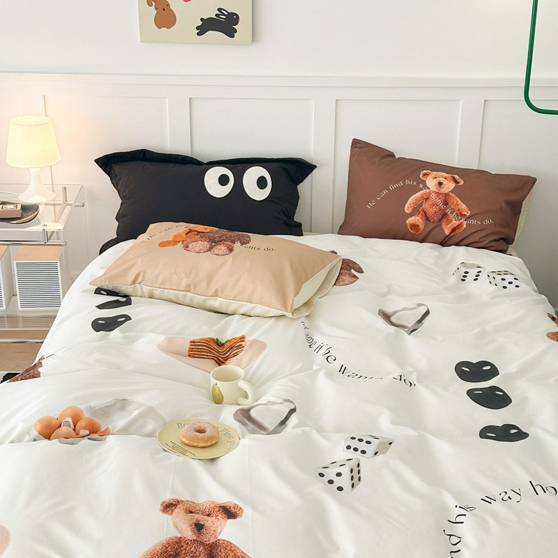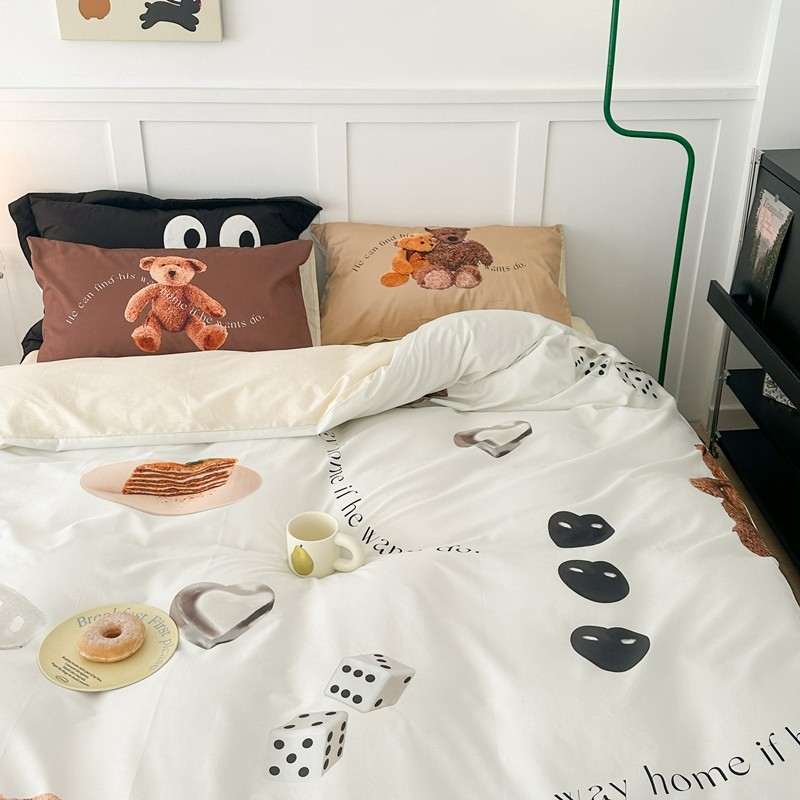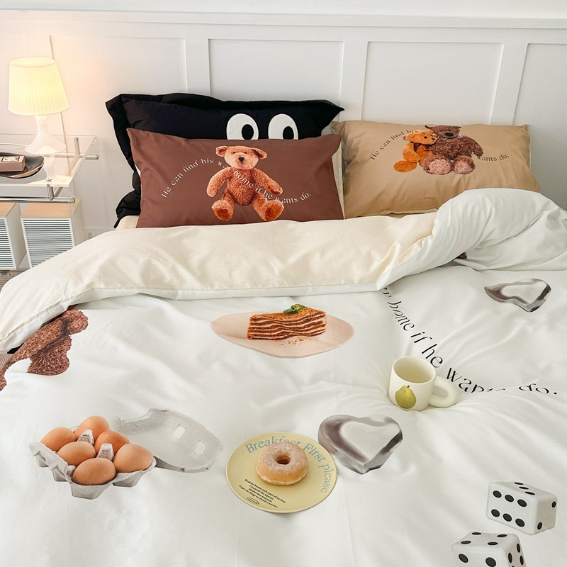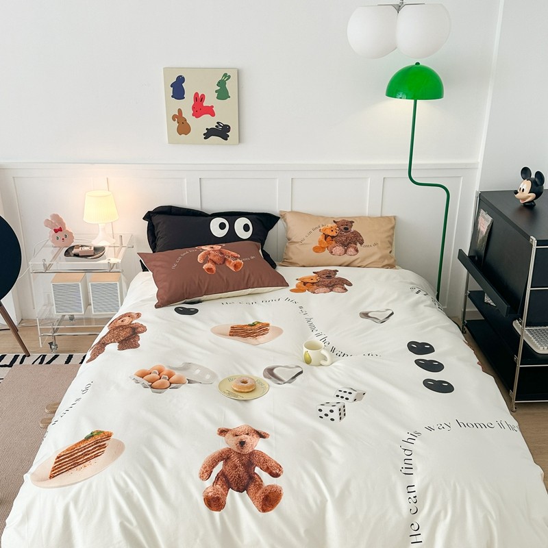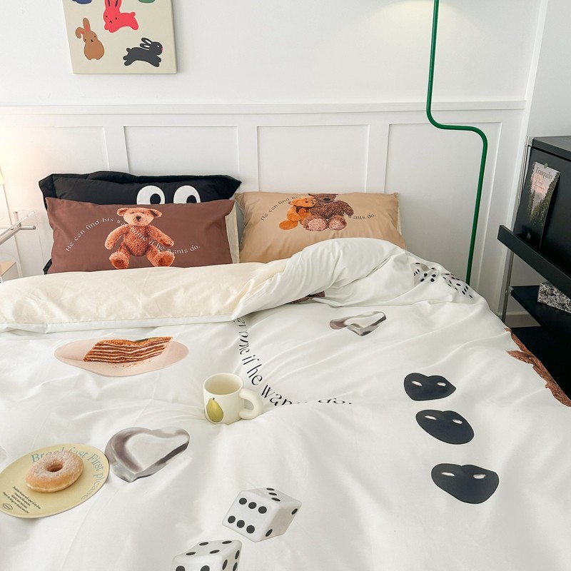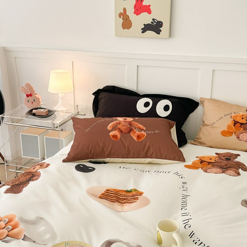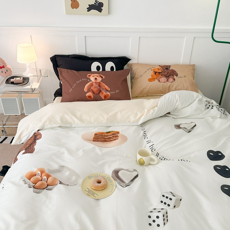 (总)昔可 2023新款学生季卡通普通款四件套,彩色气球熊,彩条恐龙,憨憨熊,花蜜小兔,蘑菇兔,圈圈草莓,蔬菜小兔,郁金香小萌狗
