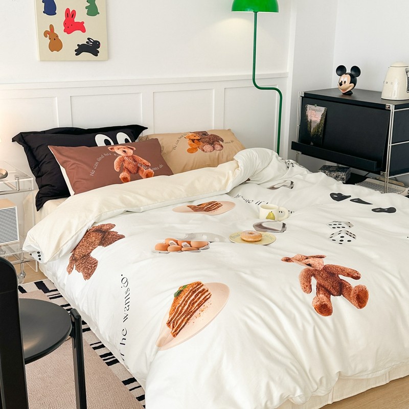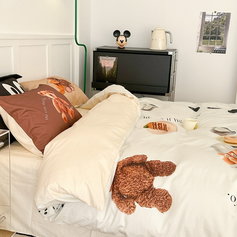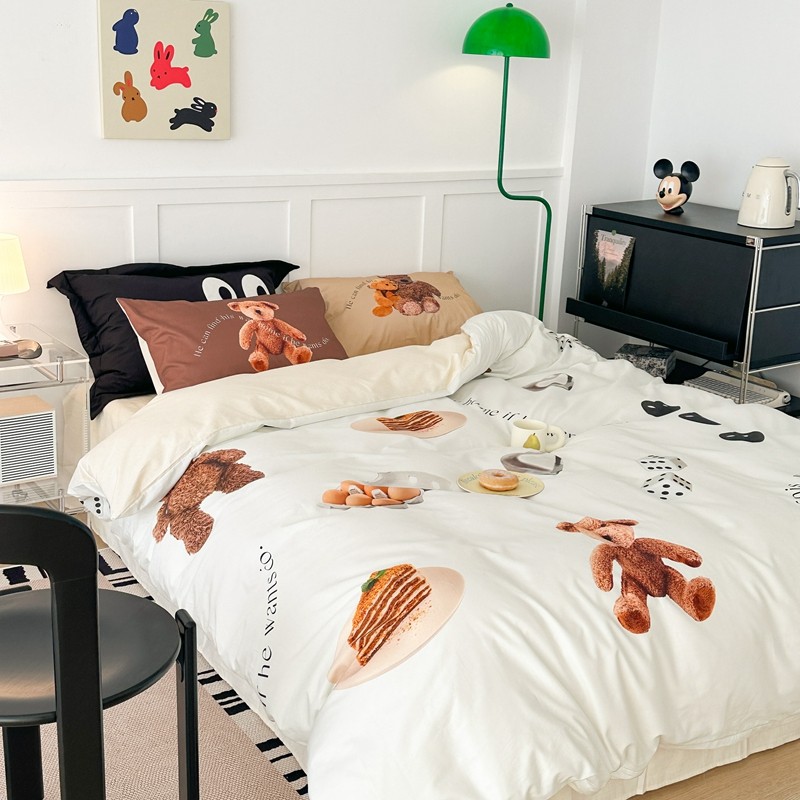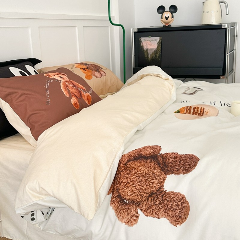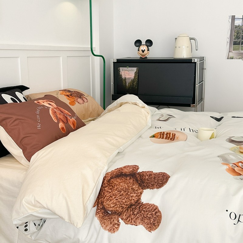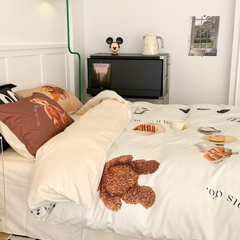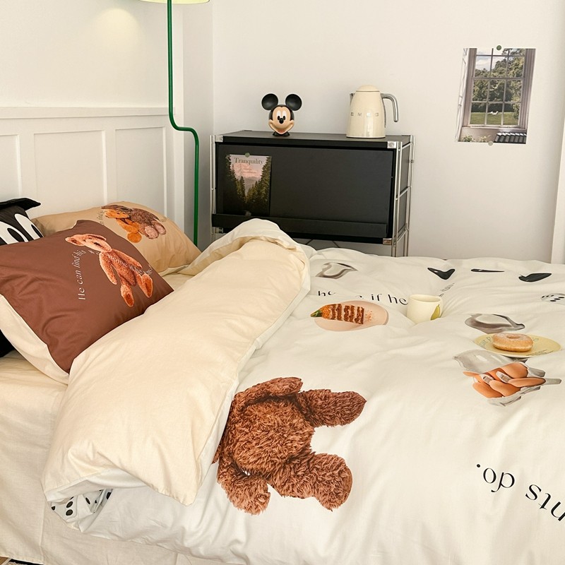 (总)昔可家纺 2024新款印花牛奶绒四件套系列-洛丽塔风,萝莉小兔,小熊烘焙屋,小熊玩偶屋