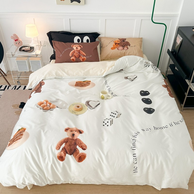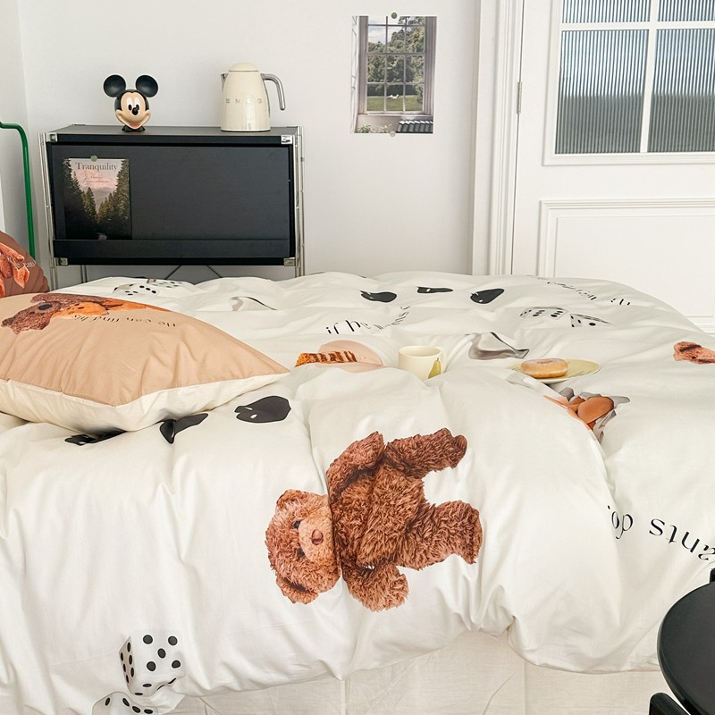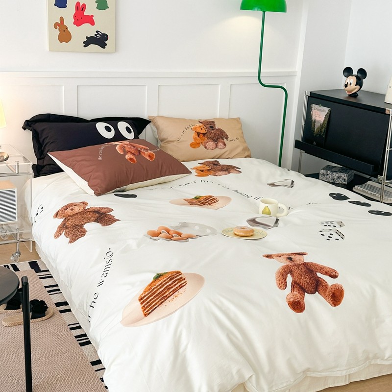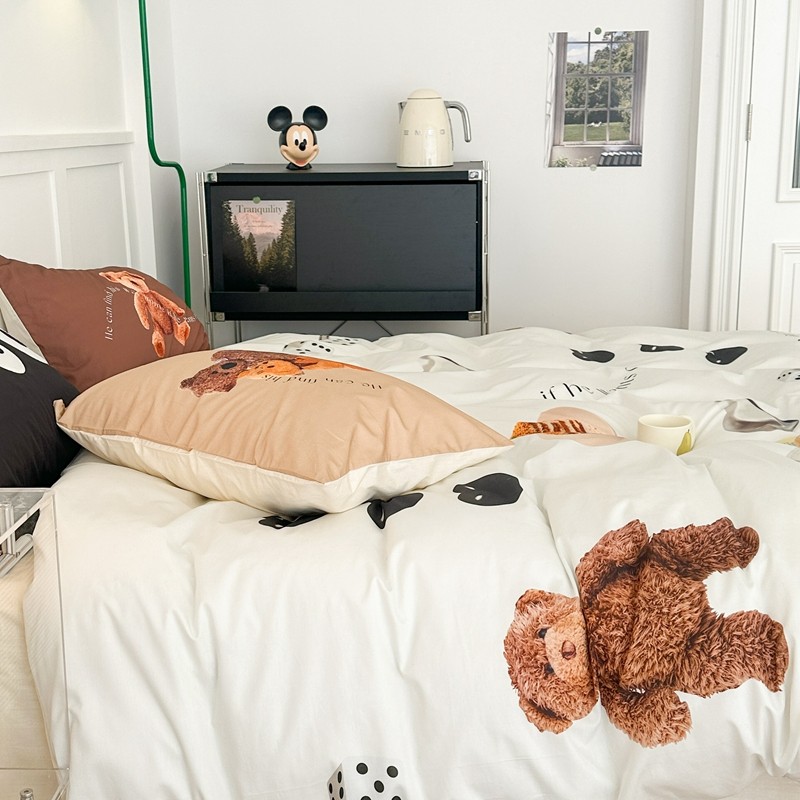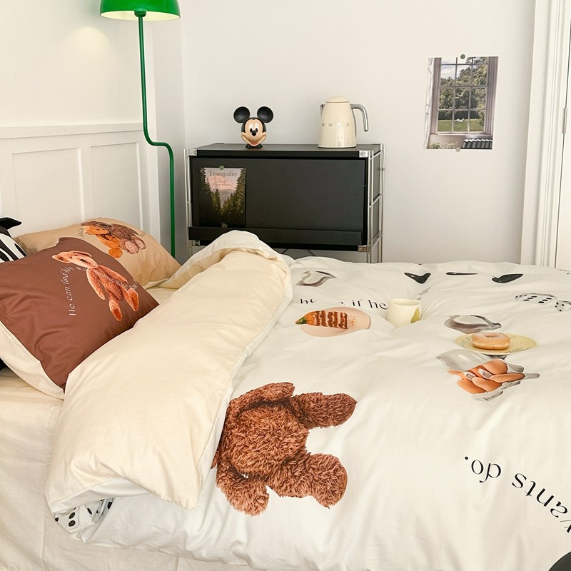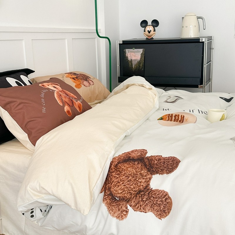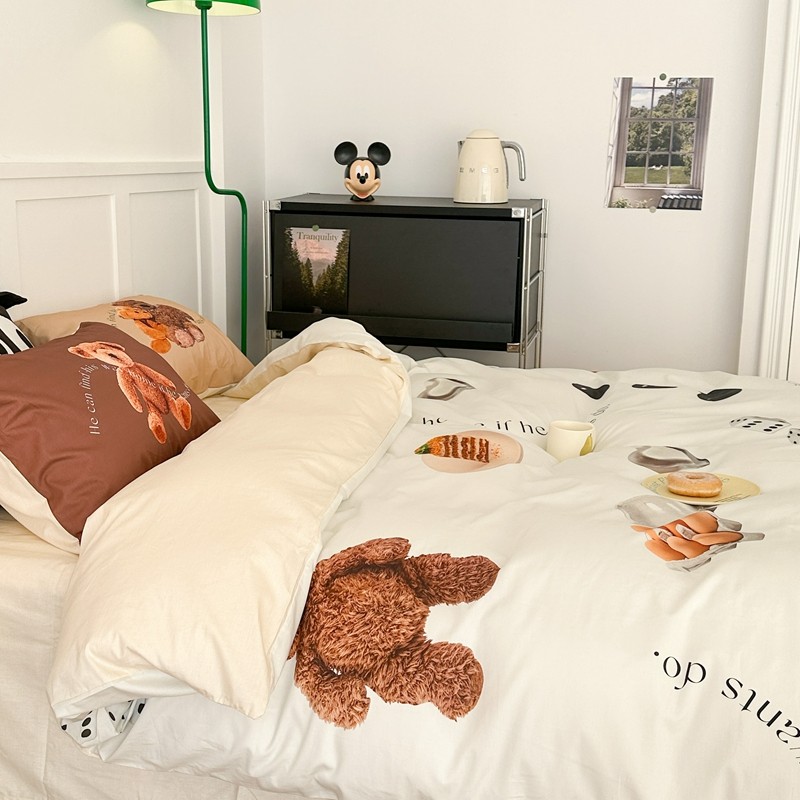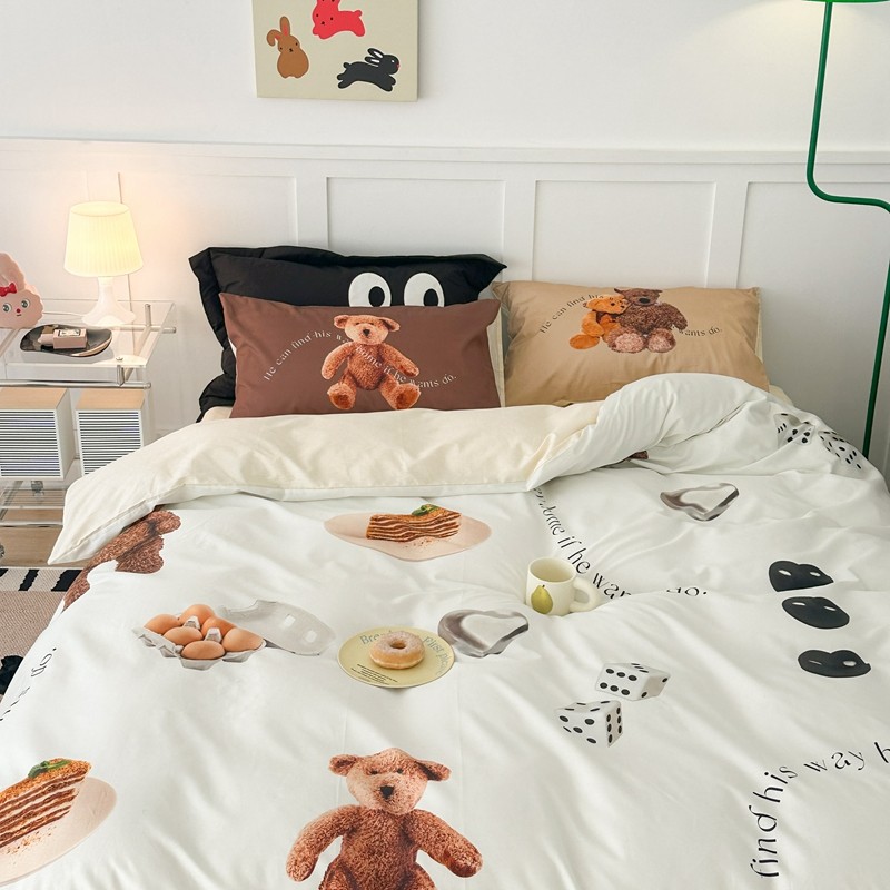 (总)昔可家纺 2024新款印花牛奶绒四件套系列-洛丽塔风,萝莉小兔,小熊烘焙屋,小熊玩偶屋