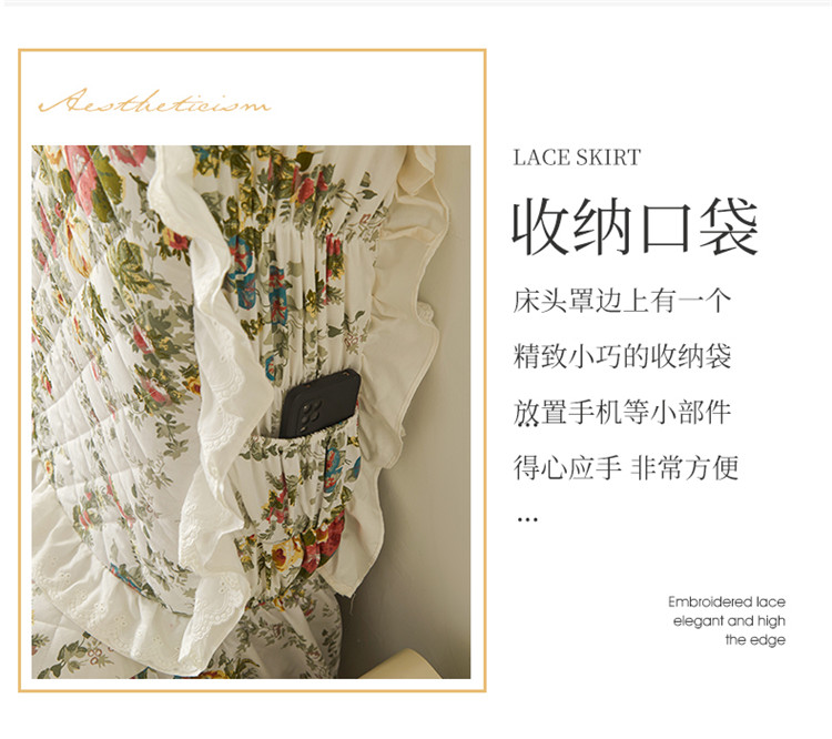 商品名称:十个点 2024新款全棉印花夹棉韩版蕾丝夹棉床头罩 纯爱-夹棉