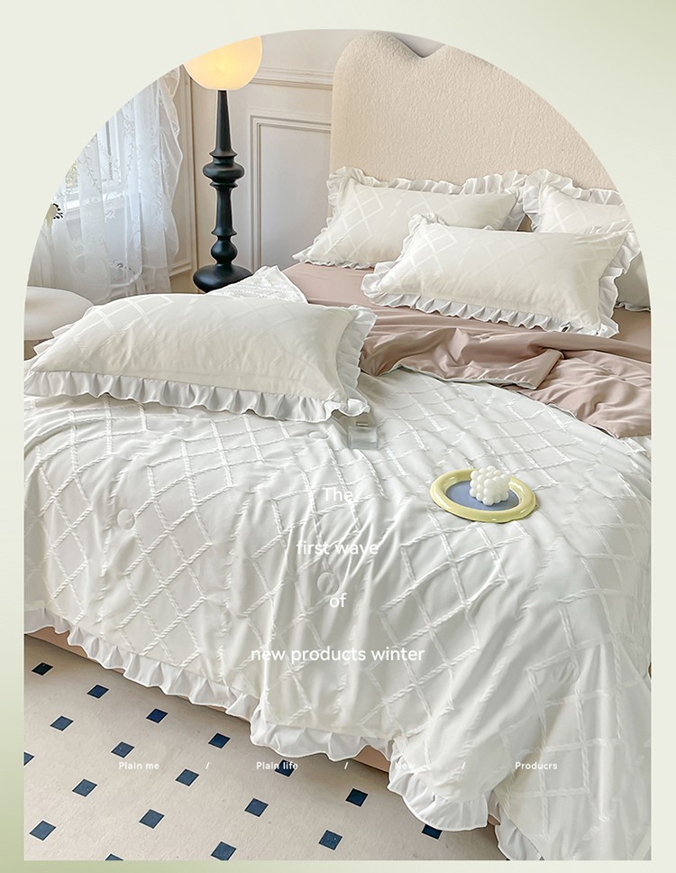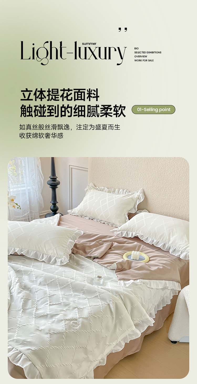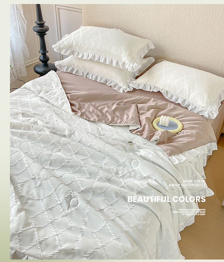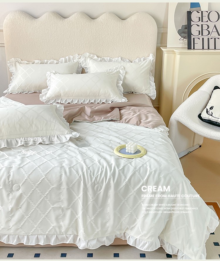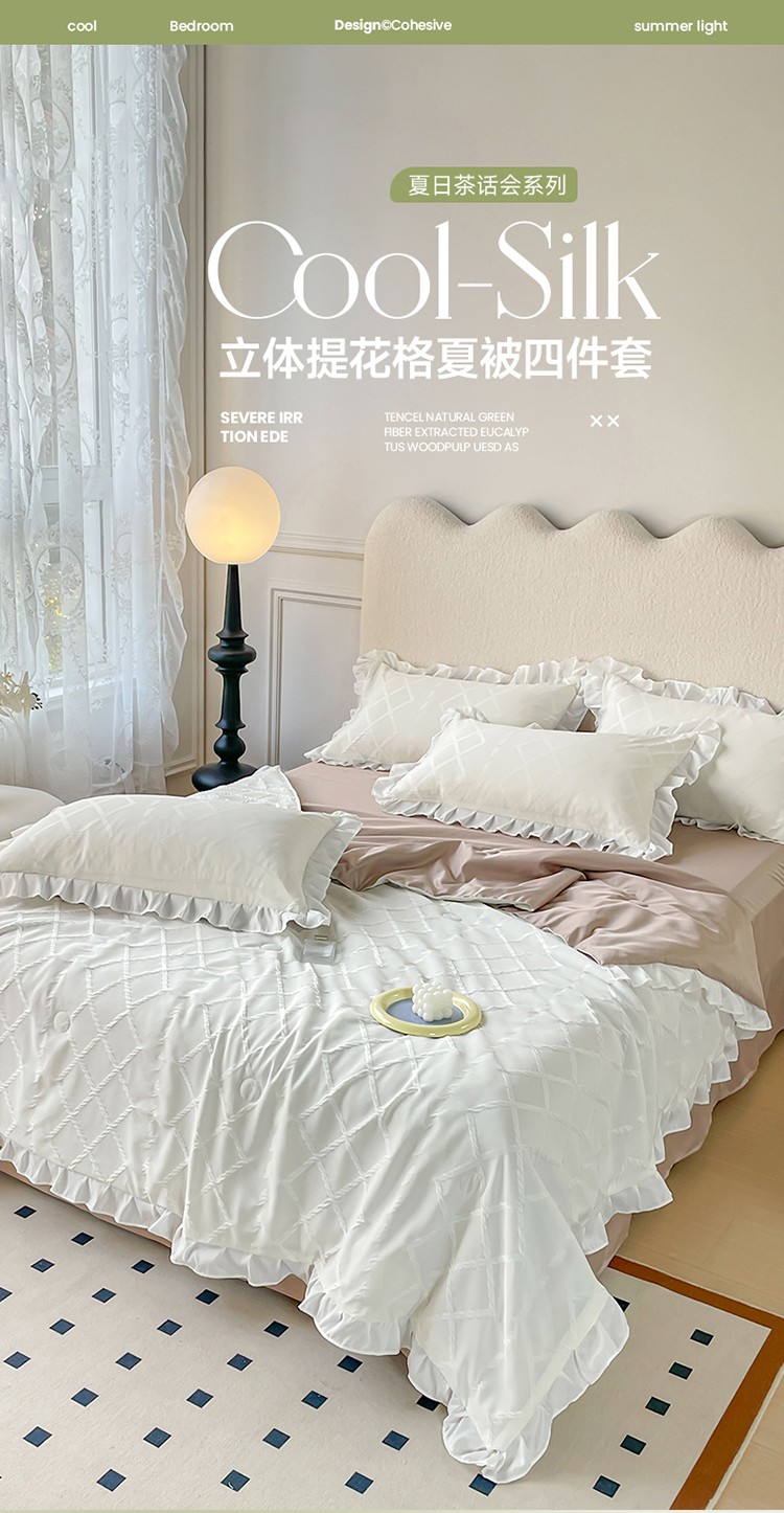 当前位置: 91家纺网 > 商品网购 > 床品套件 > 四件套 > 夏被四件套 > 澳梵2023新款【夏日茶话会】系列-立体提花格夏被四件套 夏日午后-白