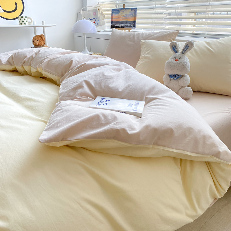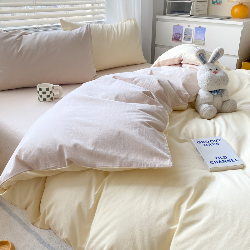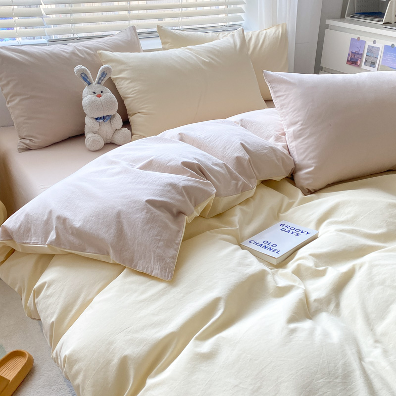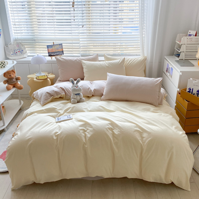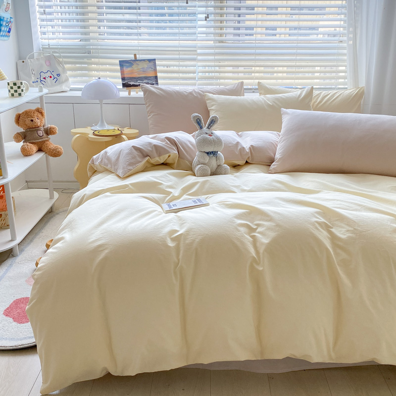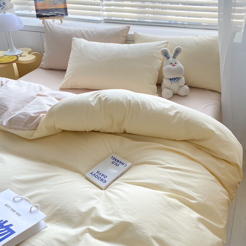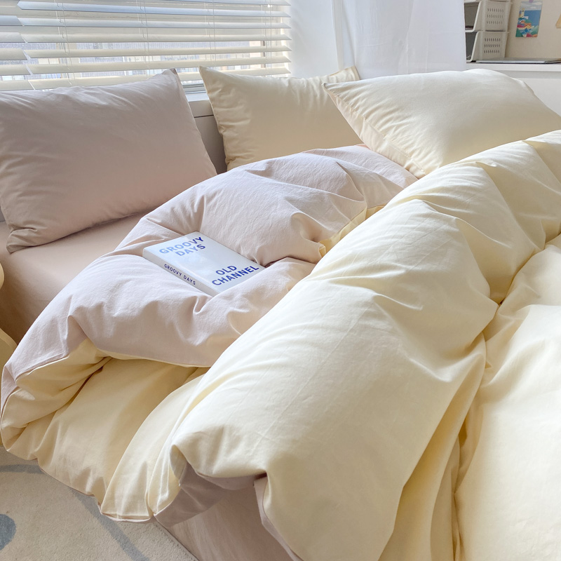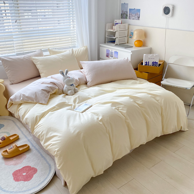 当前位置: 91家纺网 > 商品网购 > 床品套件 > 四件套 > 水洗棉四件套 > 盼季家纺 2023新款纯色双拼简约水洗棉四件套 芝杏芝士