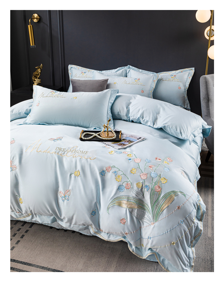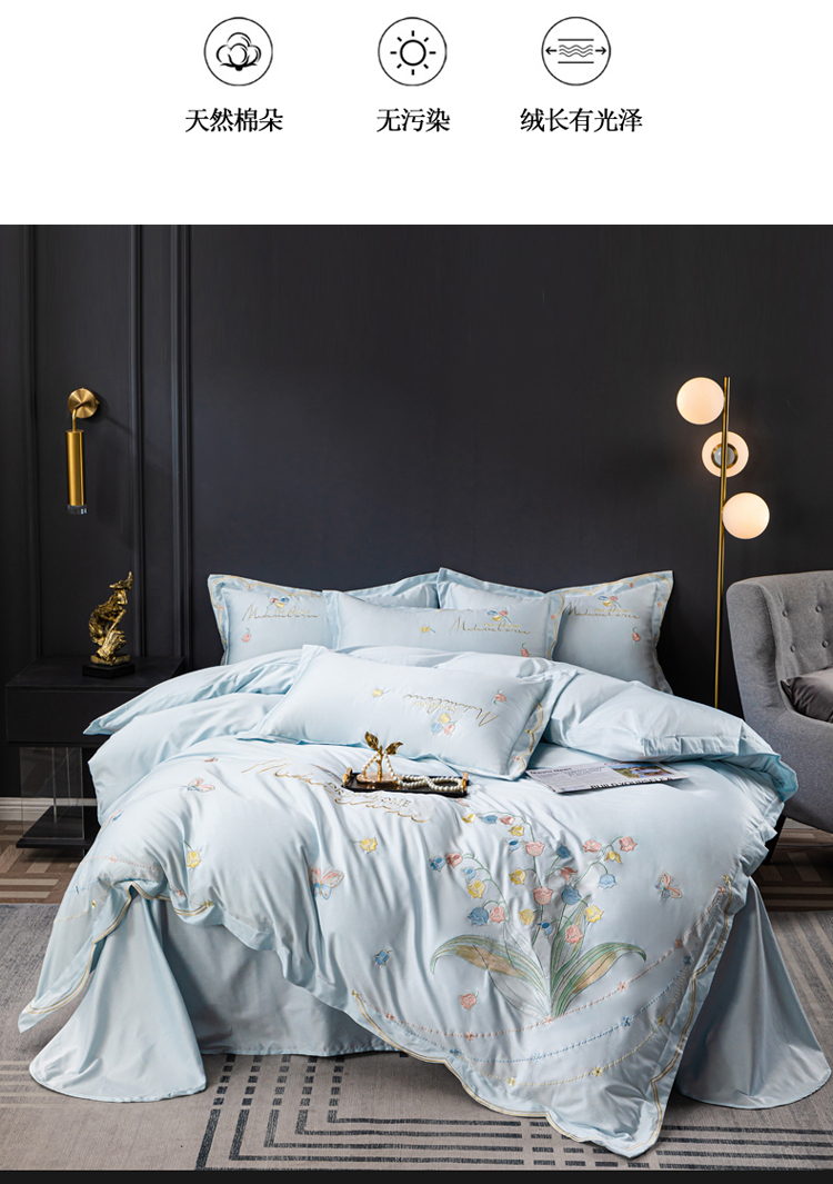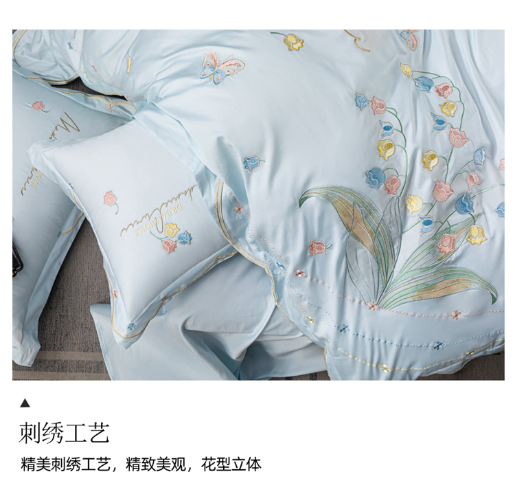 商品名称:金窝窝家纺 2024新款式活性纯棉绣花四件套 蝶恋花-天蓝
