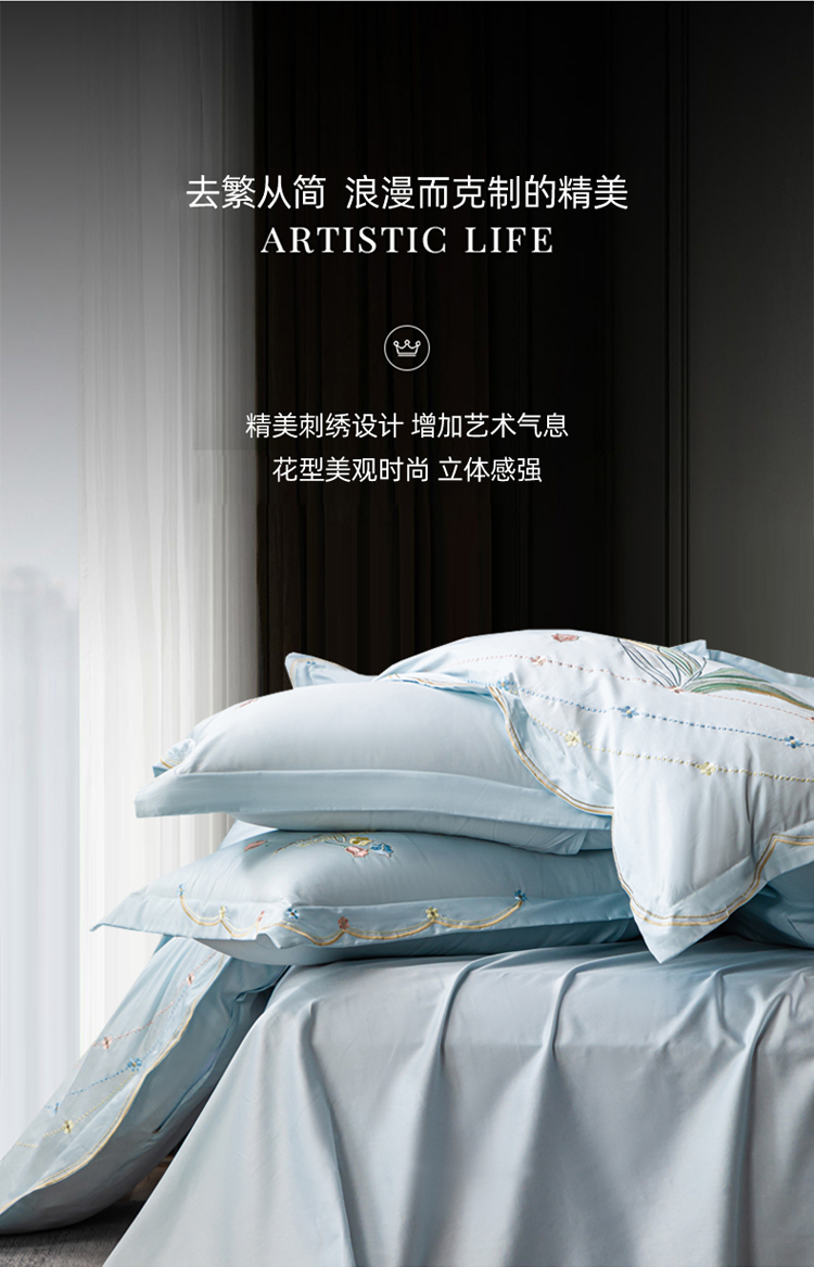 金窝窝家纺 2024新款式活性纯棉绣花四件套 蝶恋花-天蓝