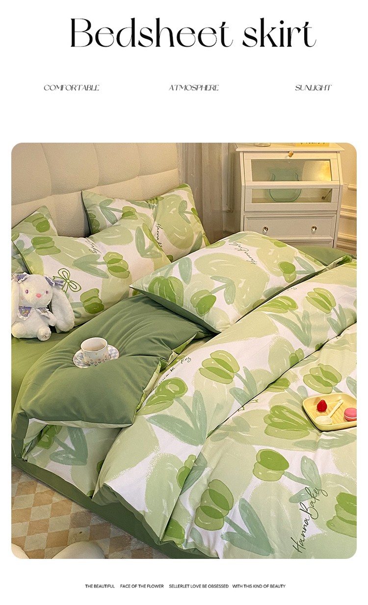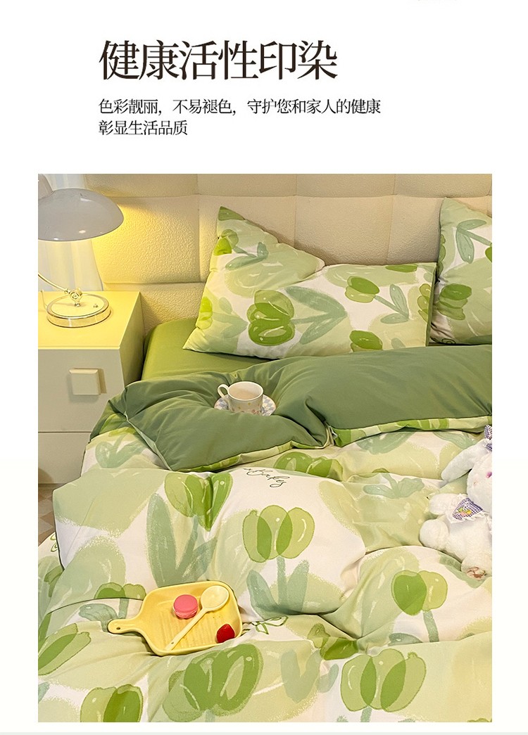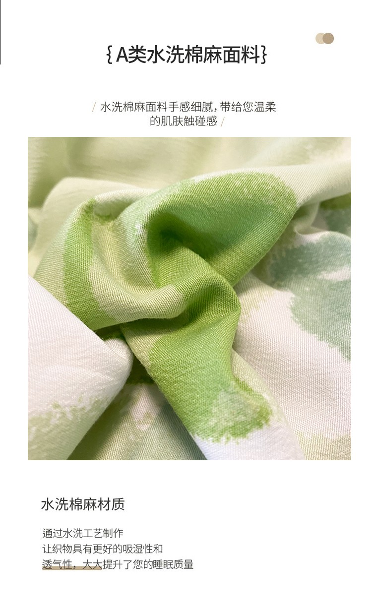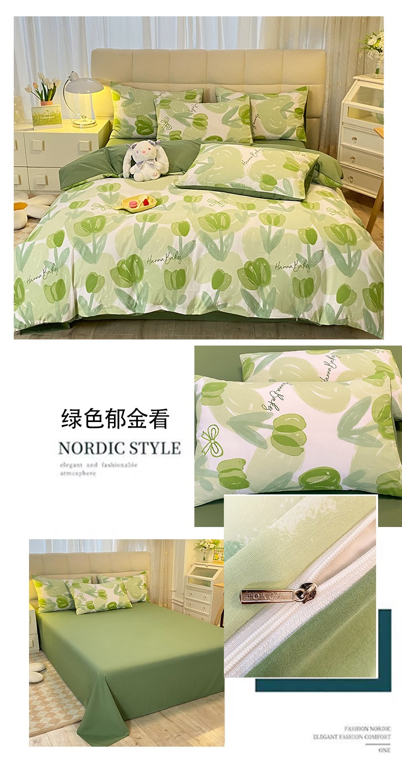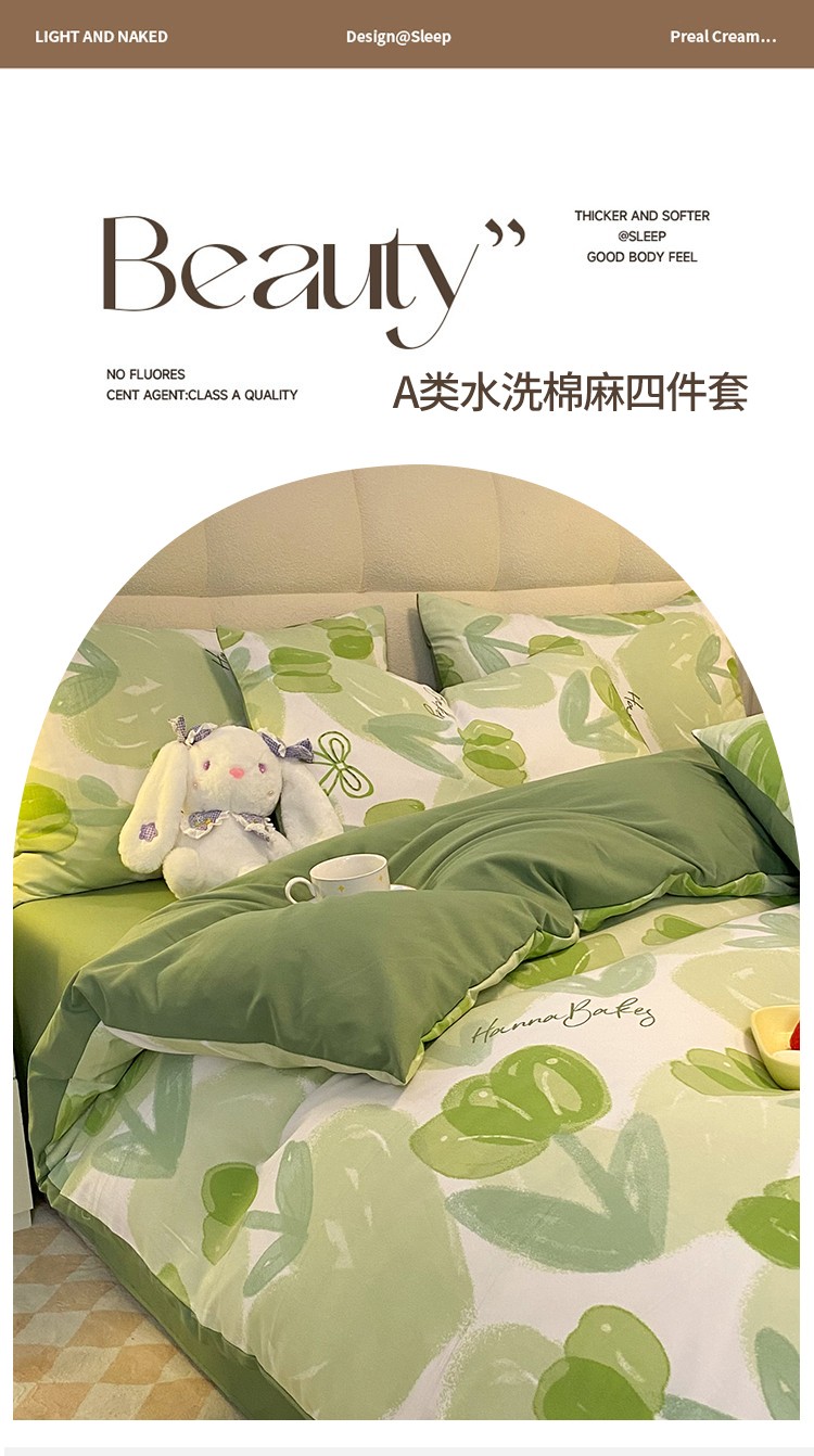 商品名称:妖妖家纺2023新款水洗棉麻四件套 绿色郁金香