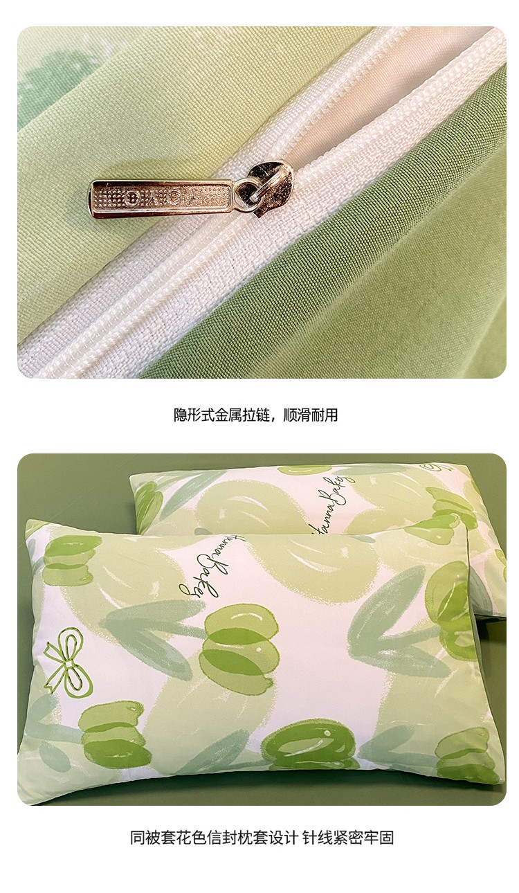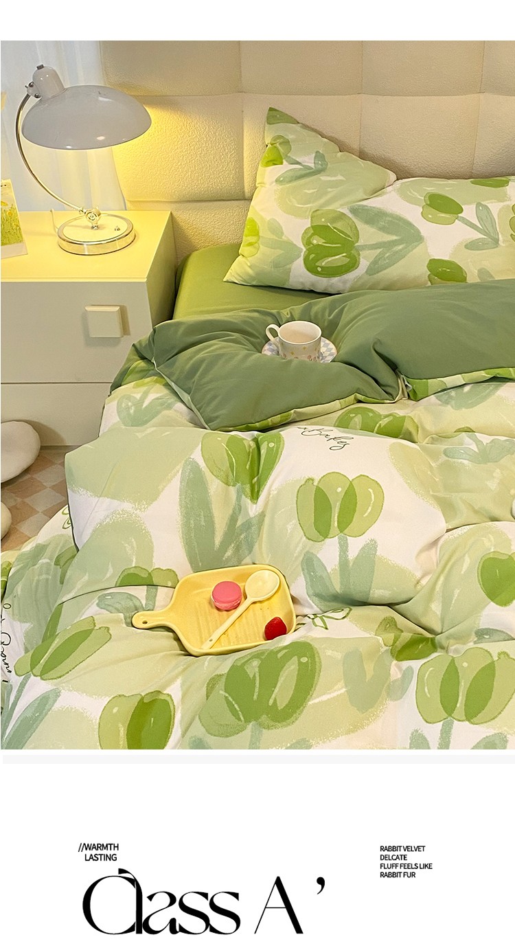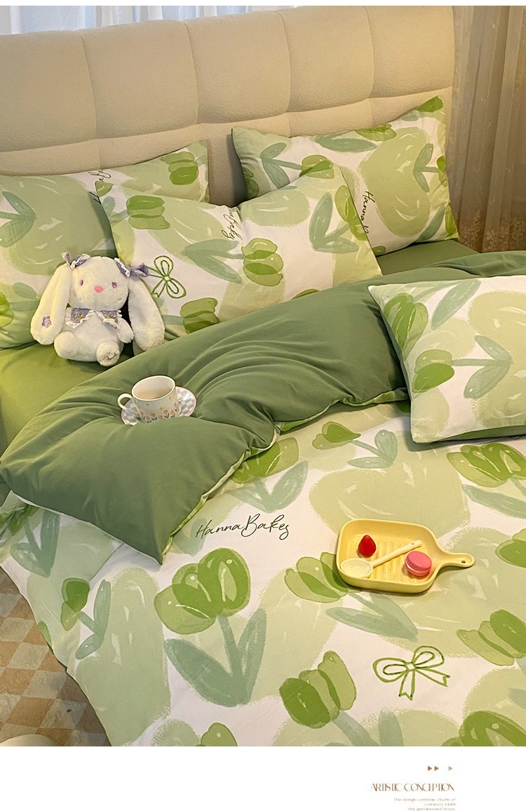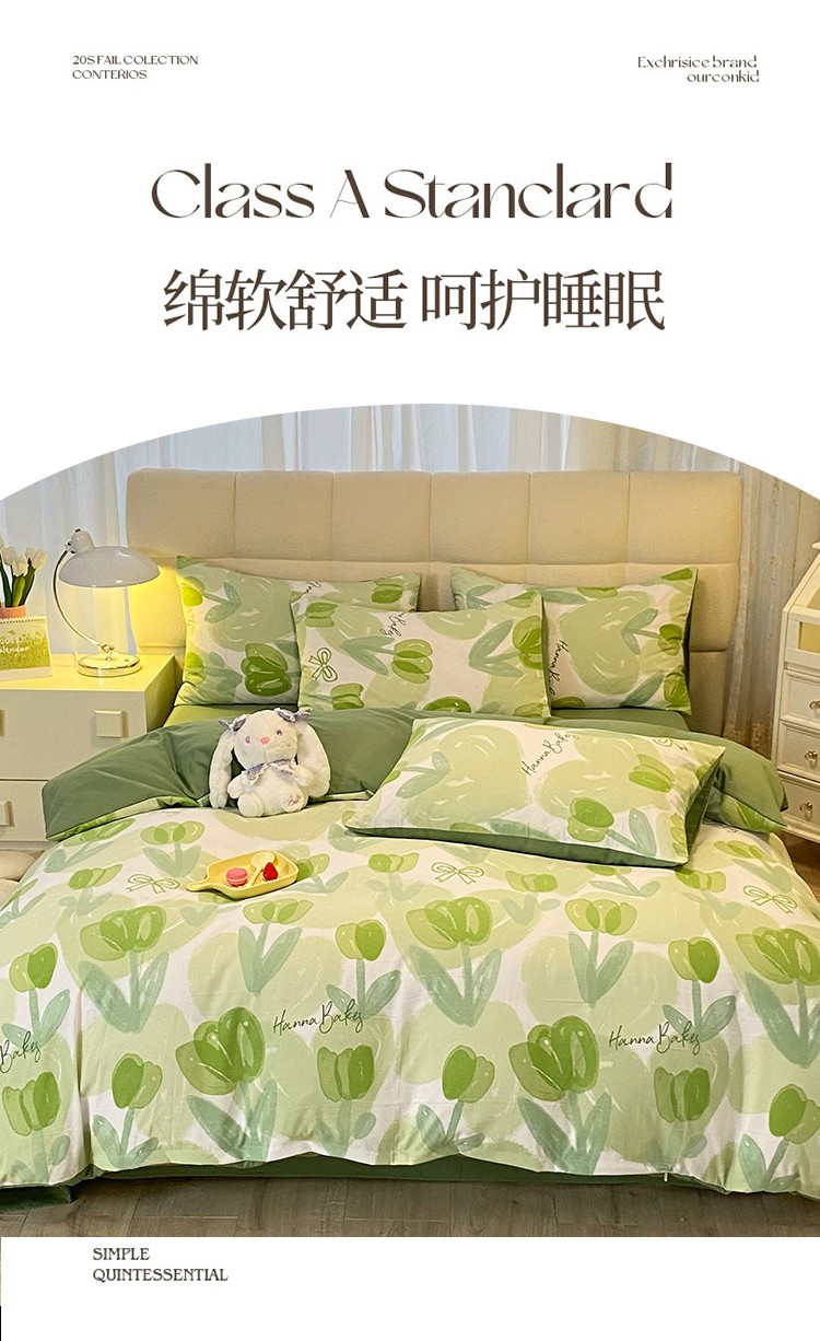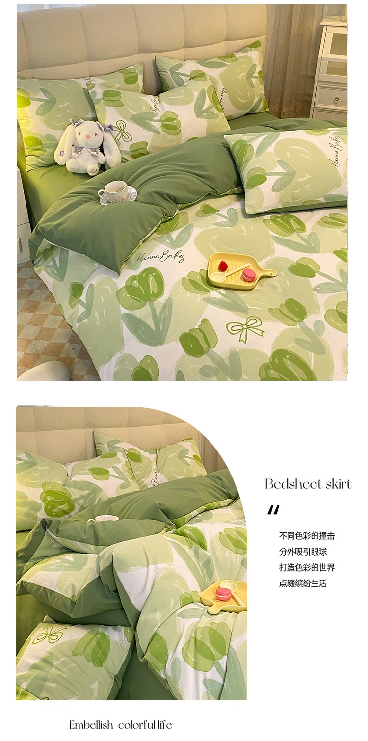 商品名称:妖妖家纺2023新款水洗棉麻四件套 绿色郁金香