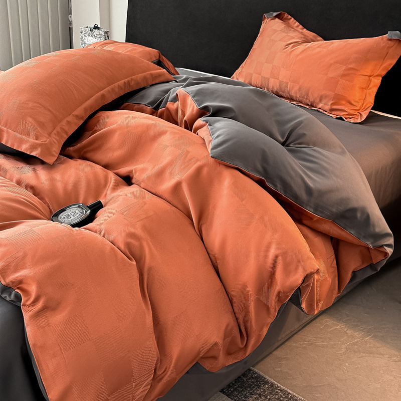 遇见家居2022新款水洗磨毛亲肤棉贡缎提花四件套-柏林 柏林-香颂橘