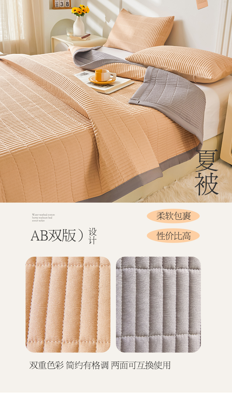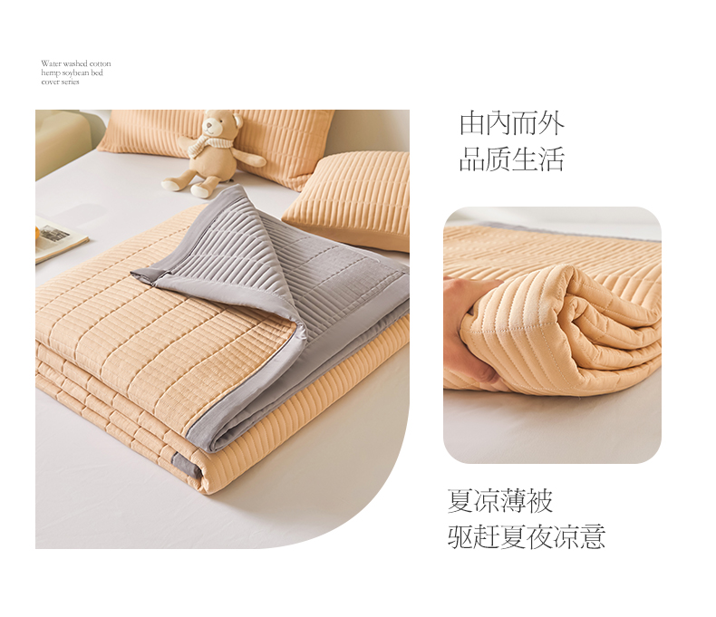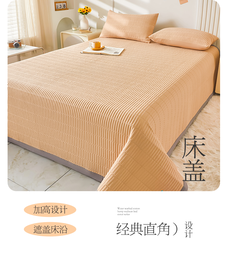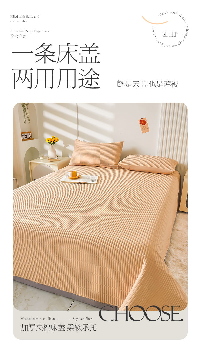 商品名称:水洗棉麻床盖大豆纤维夹棉加厚宿舍铺盖两用床单床裙保护垫 香槟色
