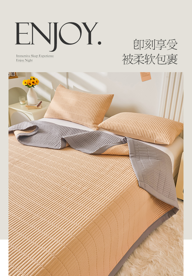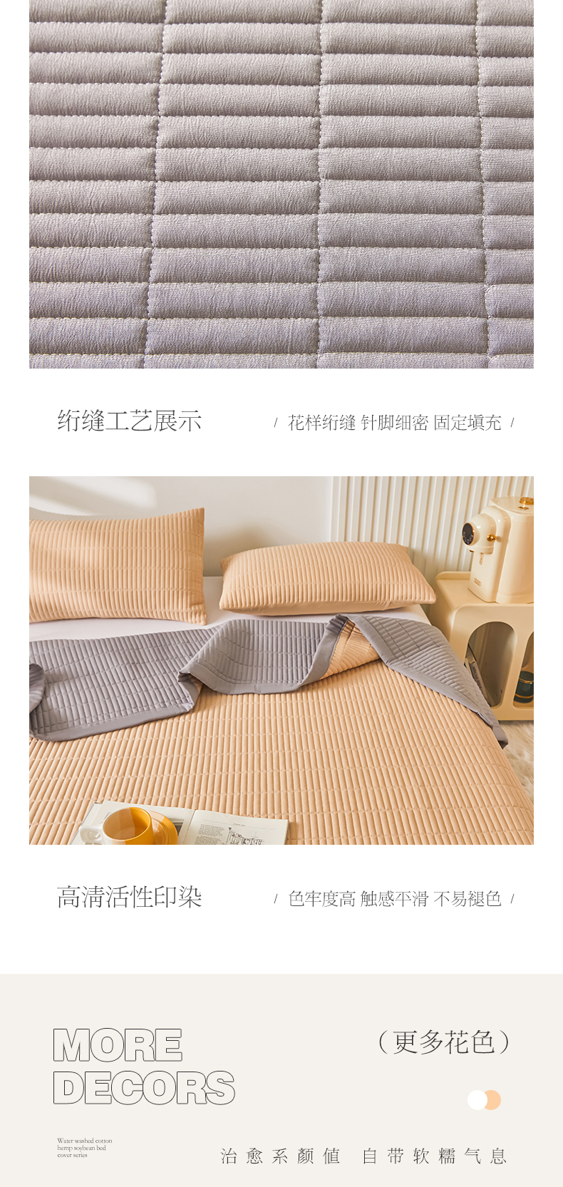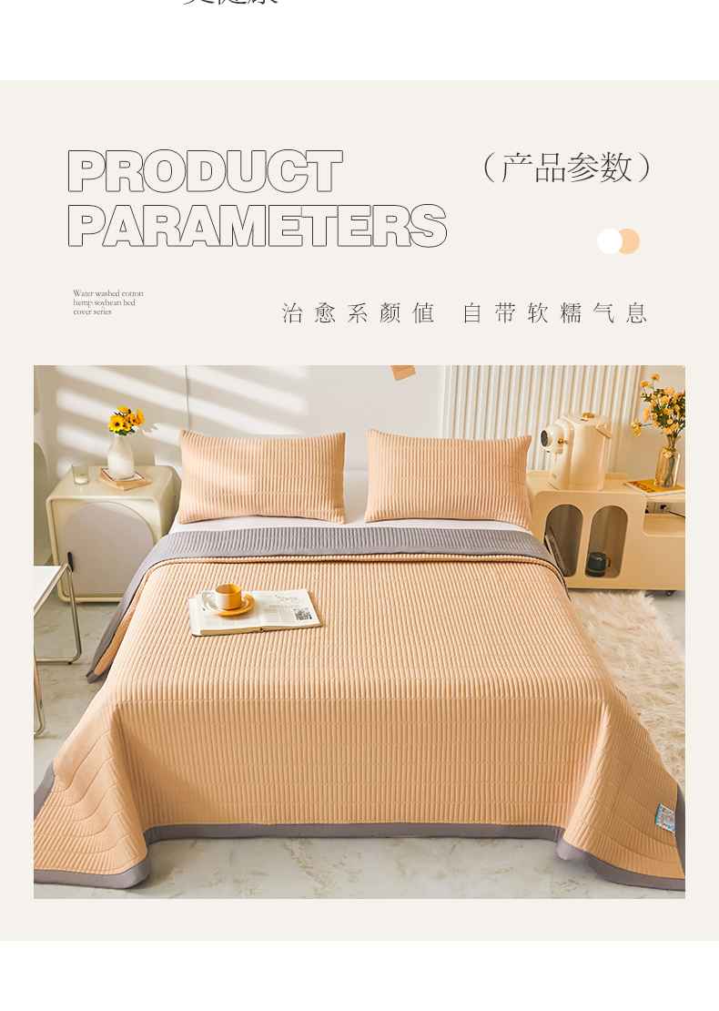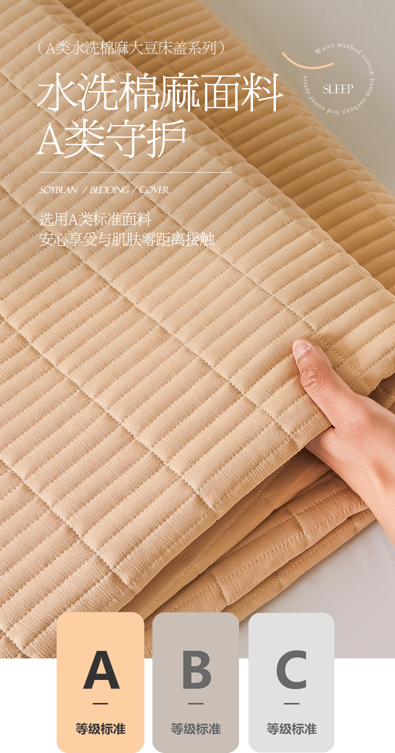 商品名称:水洗棉麻床盖大豆纤维夹棉加厚宿舍铺盖两用床单床裙保护垫 香槟色