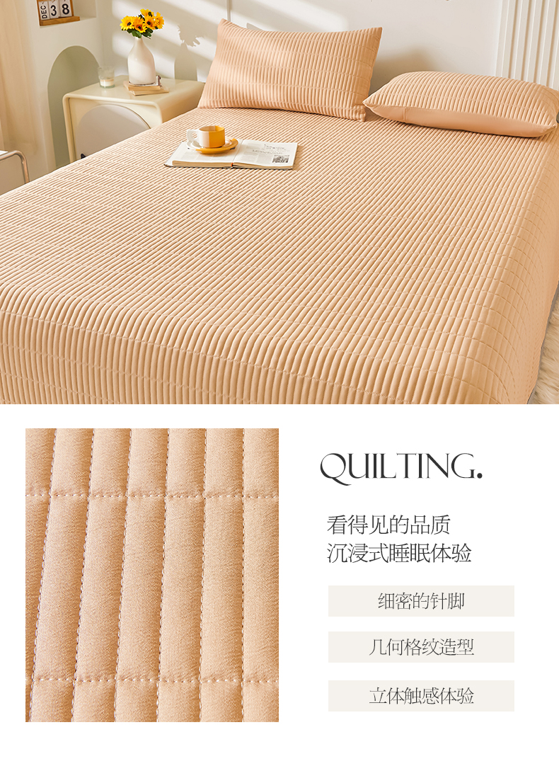 水洗棉麻床盖大豆纤维夹棉加厚宿舍铺盖两用床单床裙保护垫 香槟色