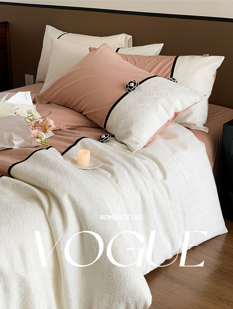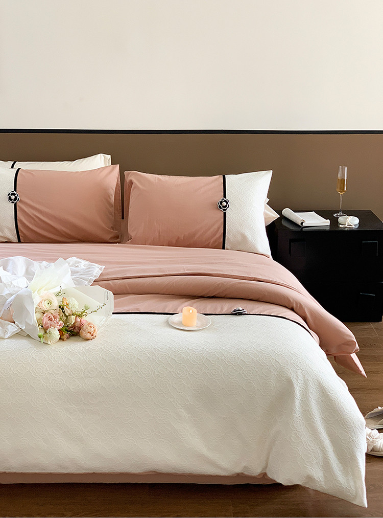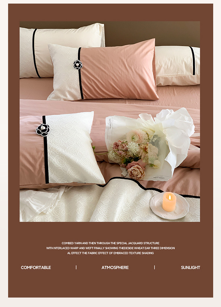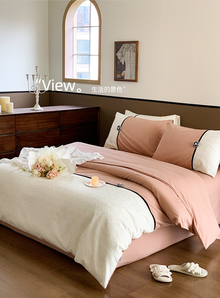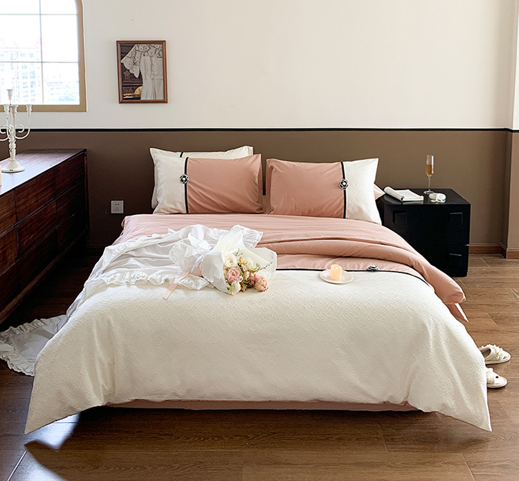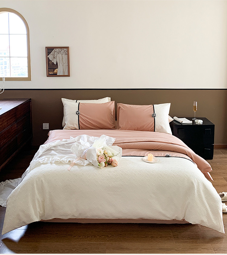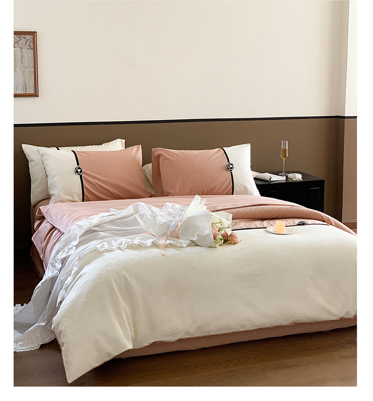 (总)玛奇朵 2025新款韩系少女全棉立体提花四件套-,青纱粉黛