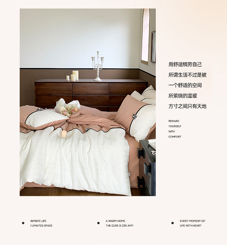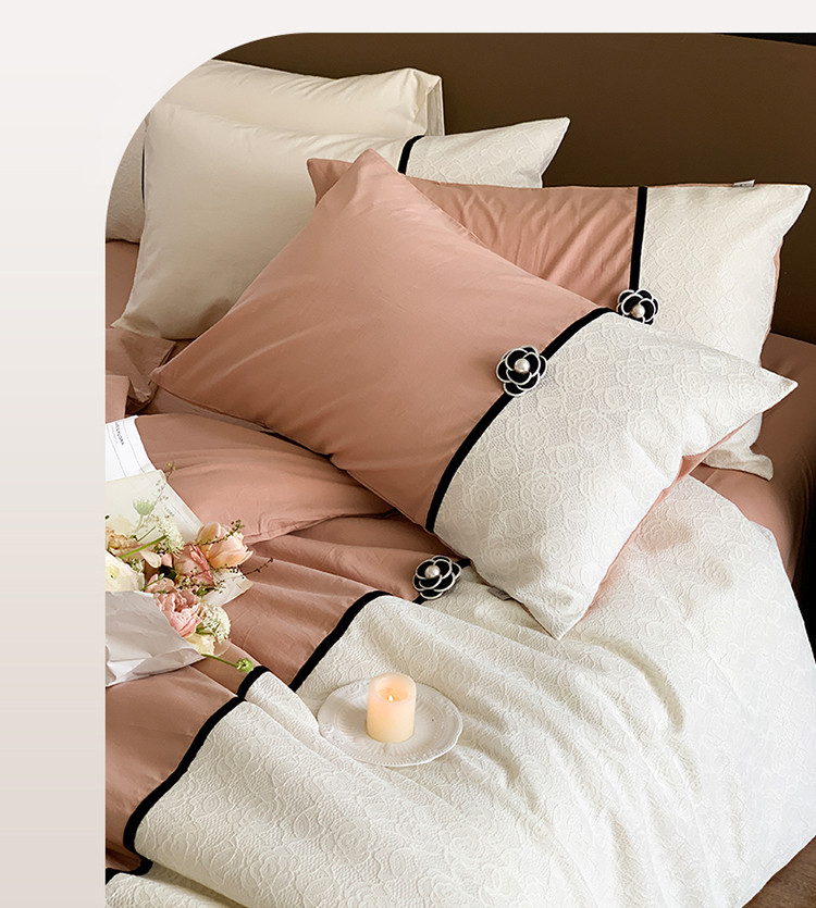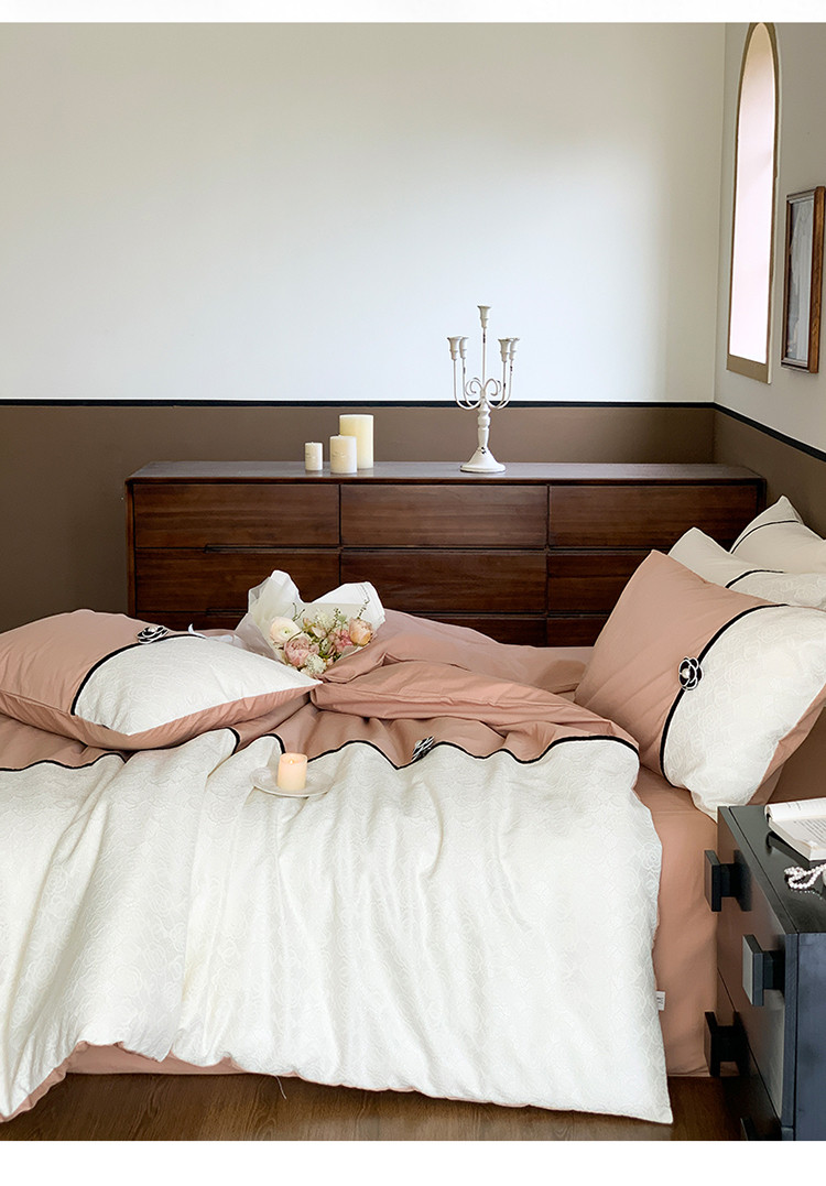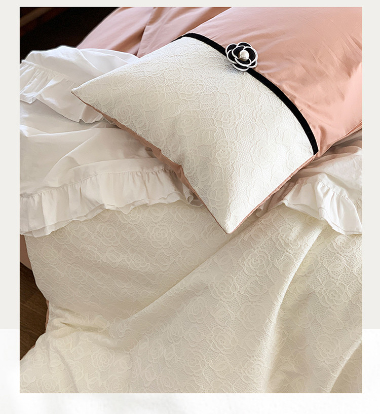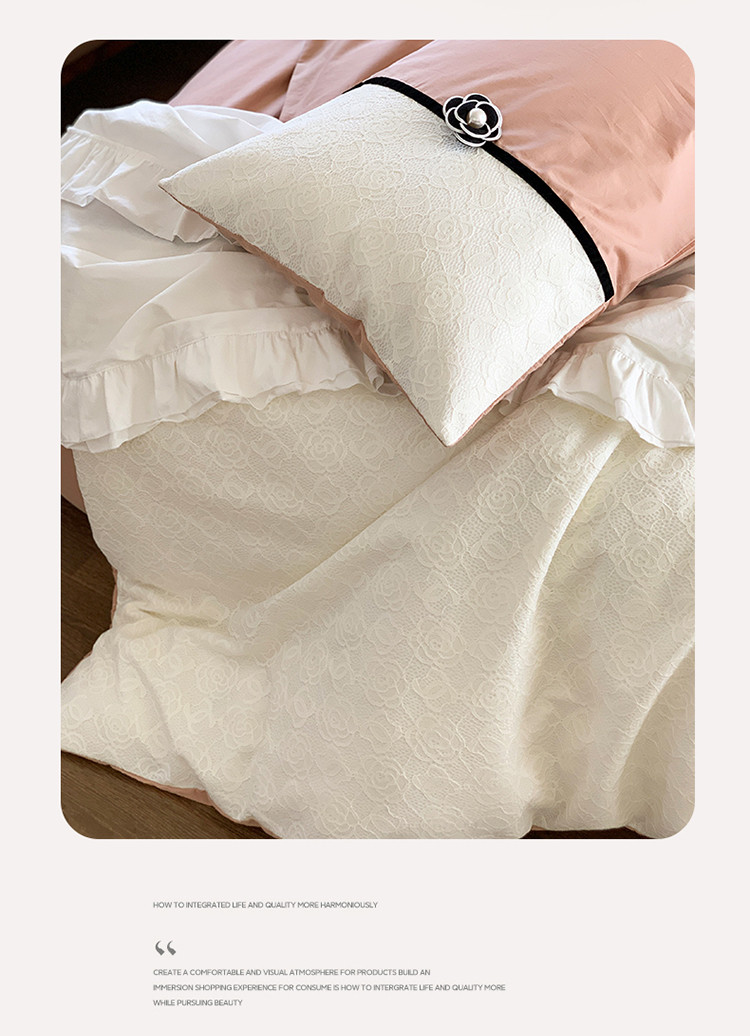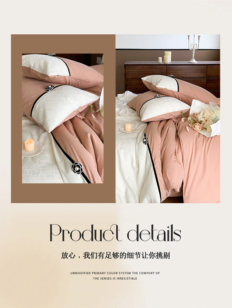 (总)玛奇朵 2025新款韩系少女全棉立体提花四件套-,青纱粉黛