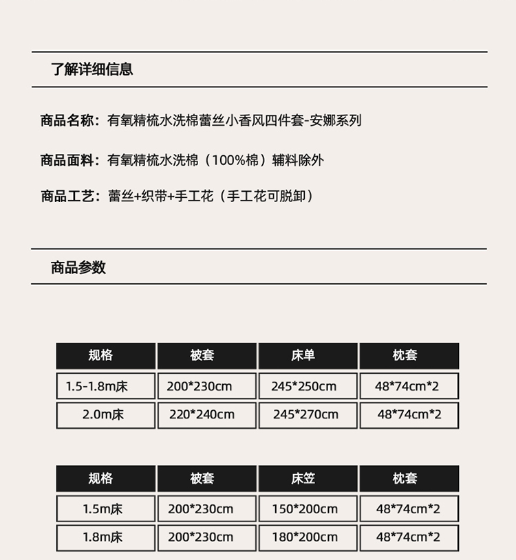 商品名称:玛奇朵 2023新款全棉有氧水洗棉蕾丝小香风-安娜系列 安娜-奶咖色