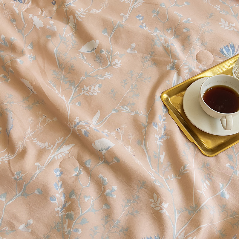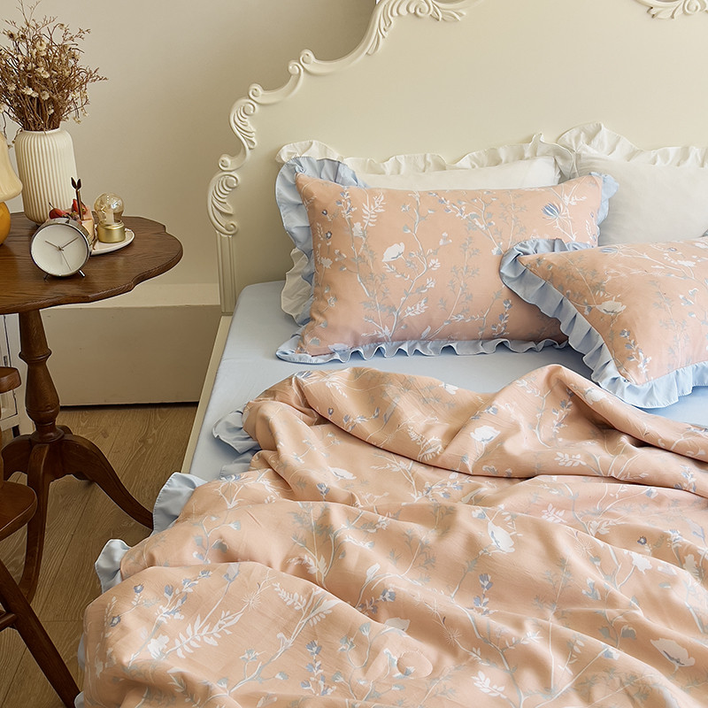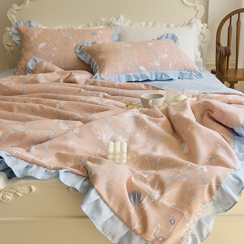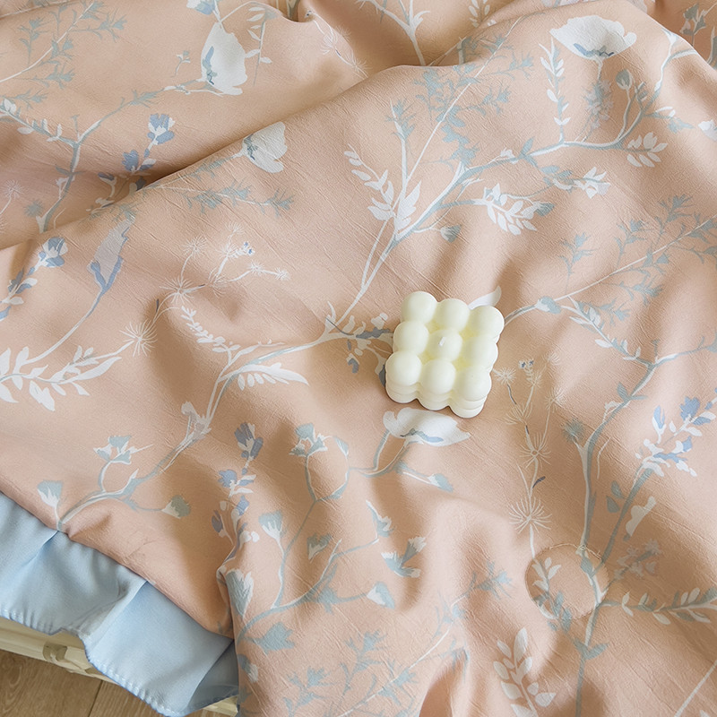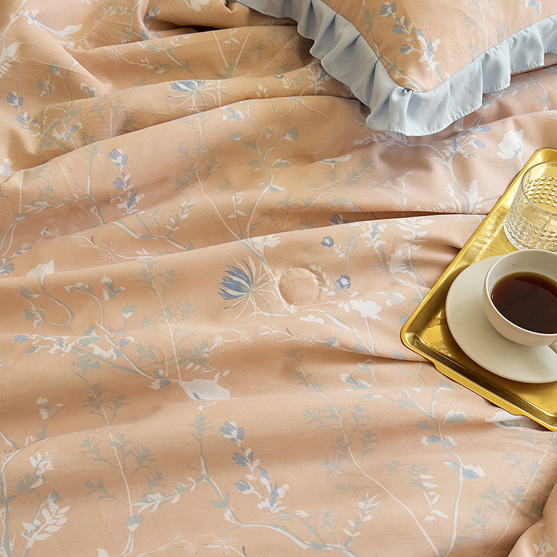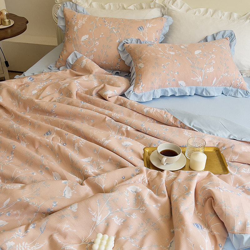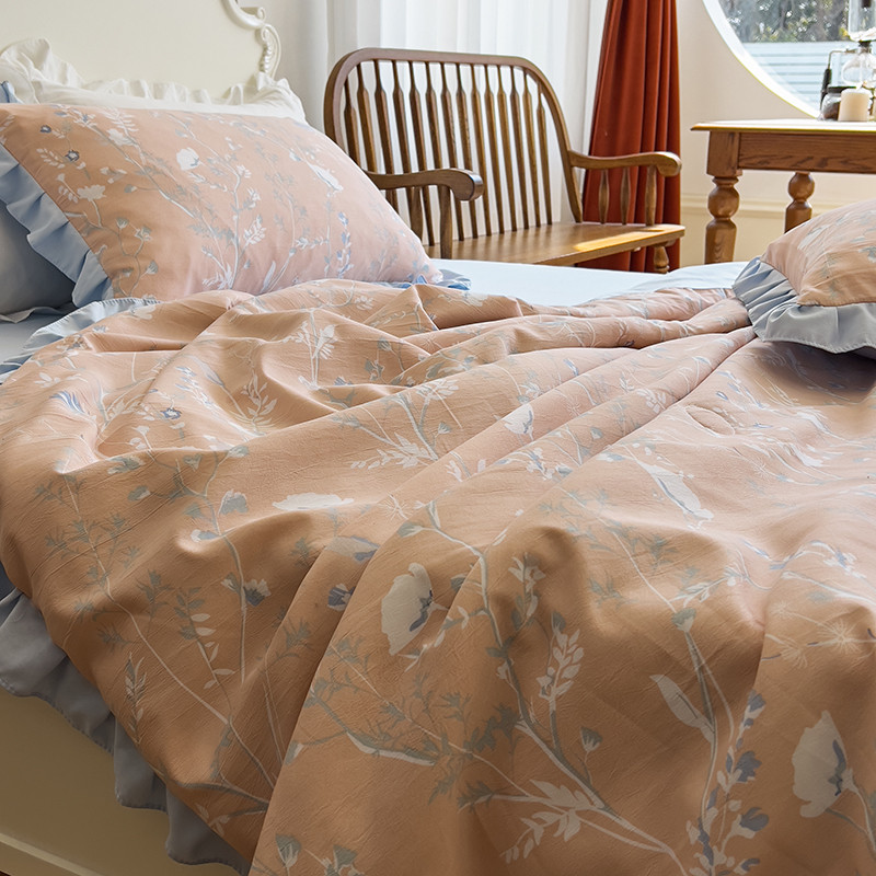梦莱斯 2023新款水洗棉麻印花夏被四件套 司藤桔