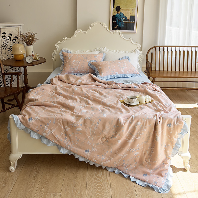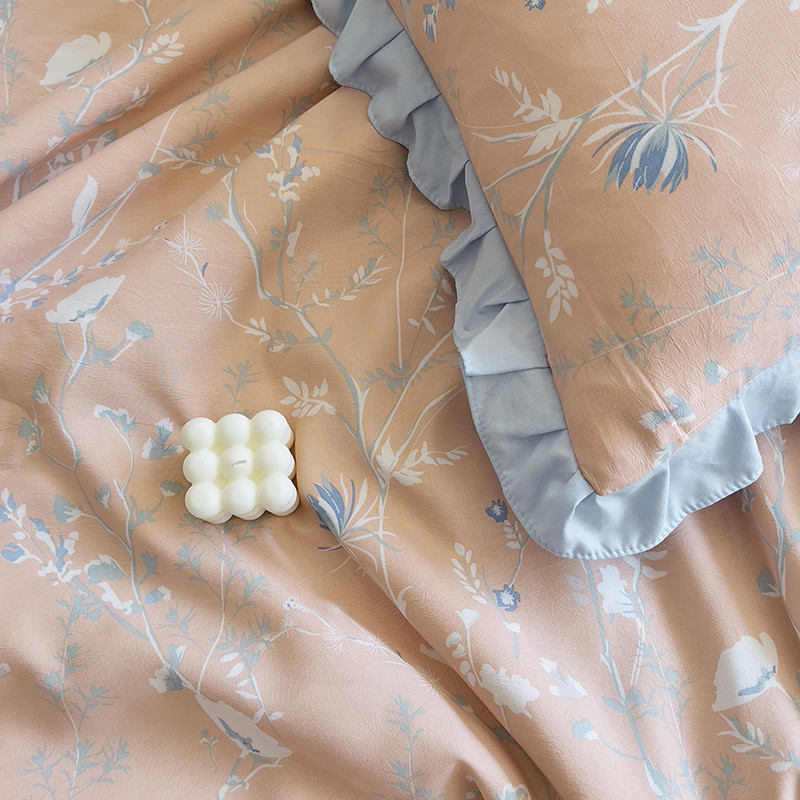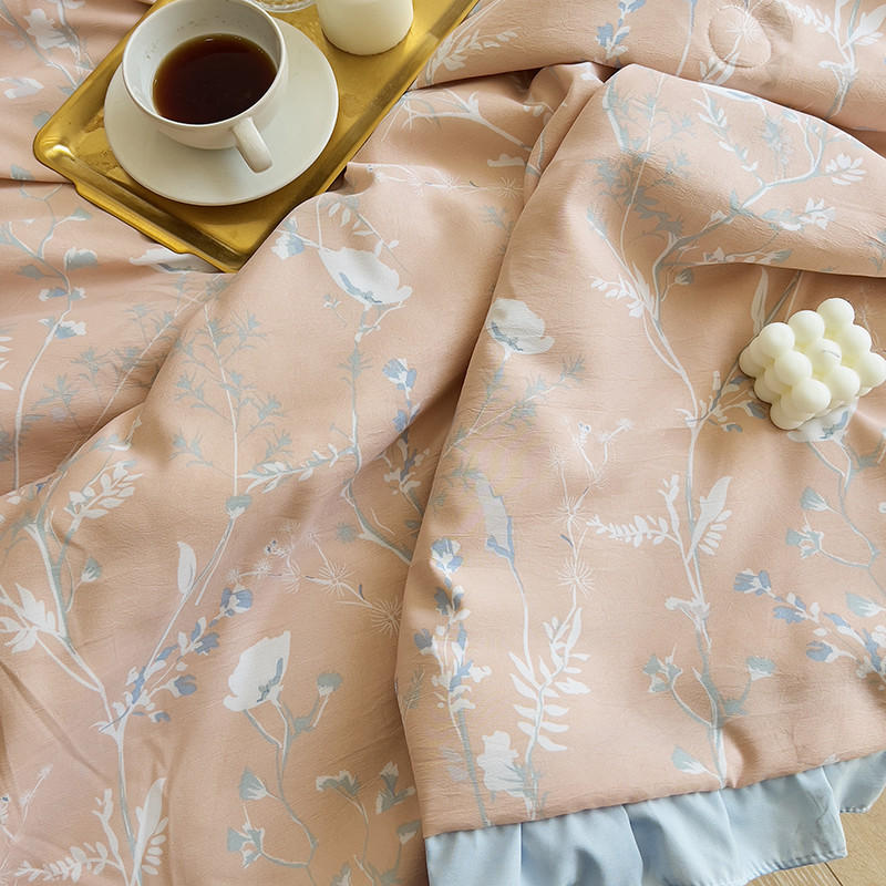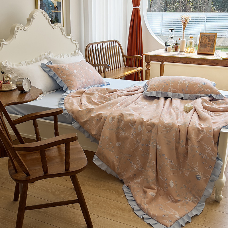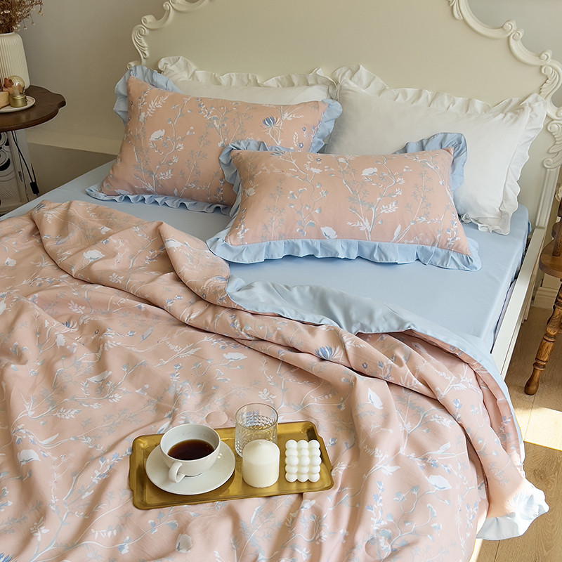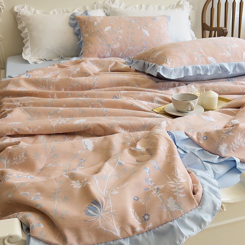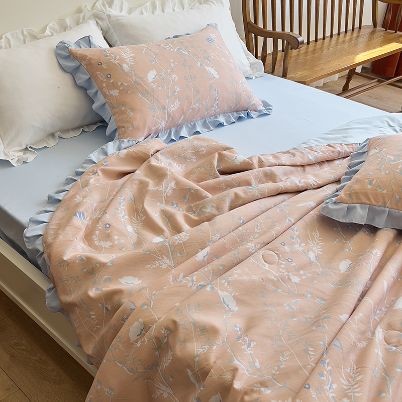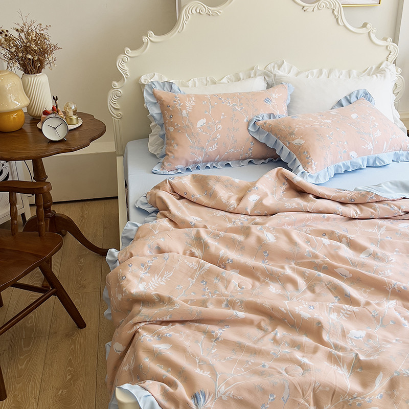 梦莱斯 2023新款水洗棉麻印花夏被四件套 司藤桔