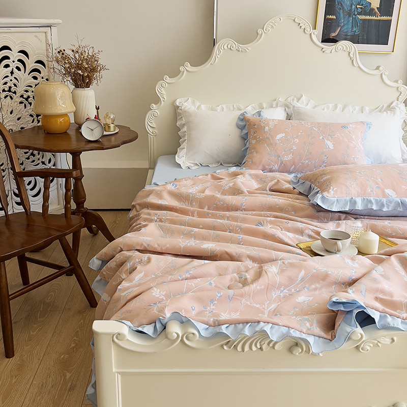 (总)梦莱斯 2025新款田园碎花纯棉花边四件套-床盖款,采薇,花精灵,花开半夏,莱茵,恋爱季,绿叶仙踪,糜花似锦,糜花熙悦,秘境花园