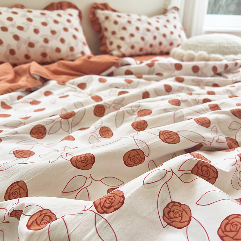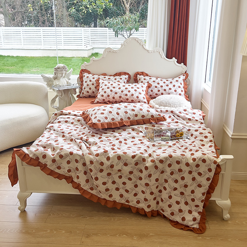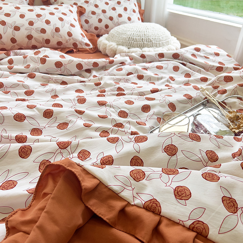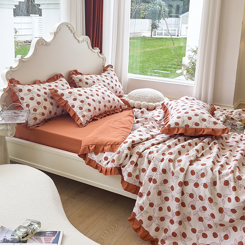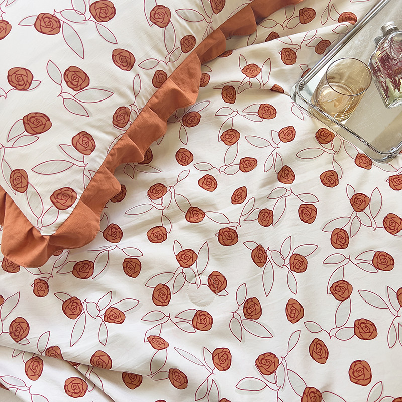 梦莱斯 2023新款水洗棉麻印花夏被四件套 情人砖红