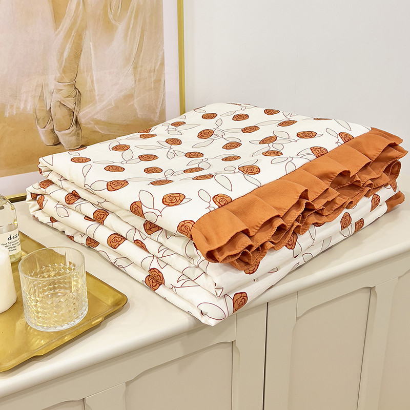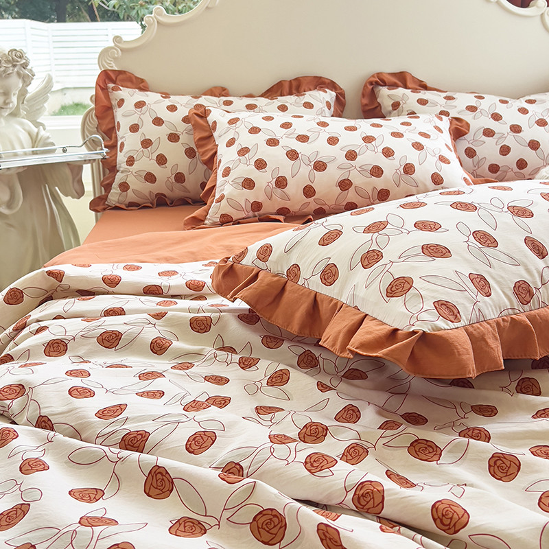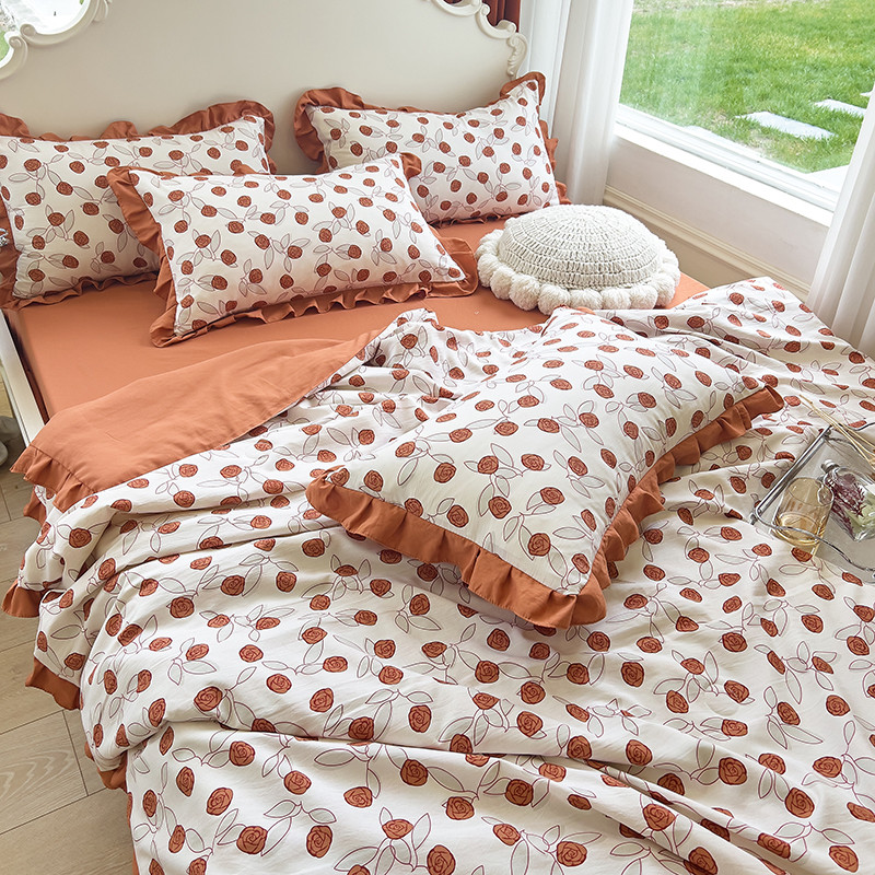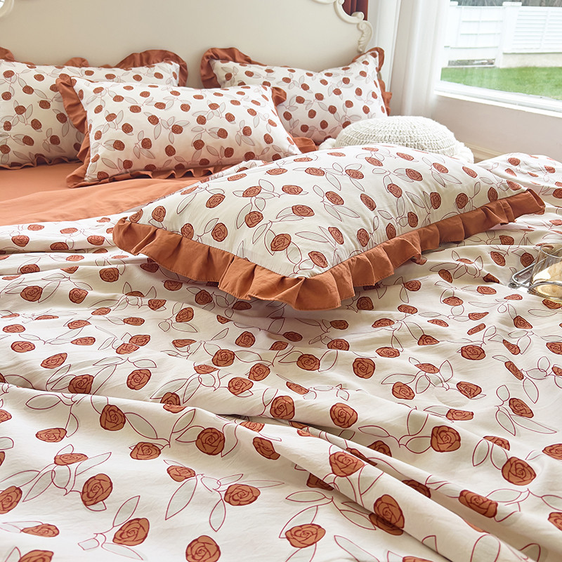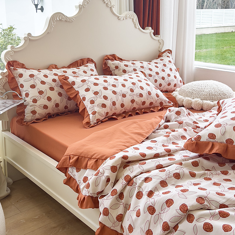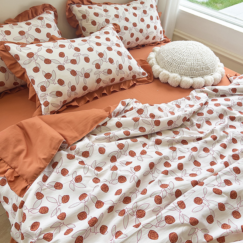 梦莱斯 2023新款水洗棉麻印花夏被四件套 情人砖红