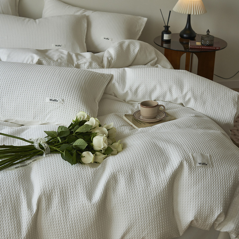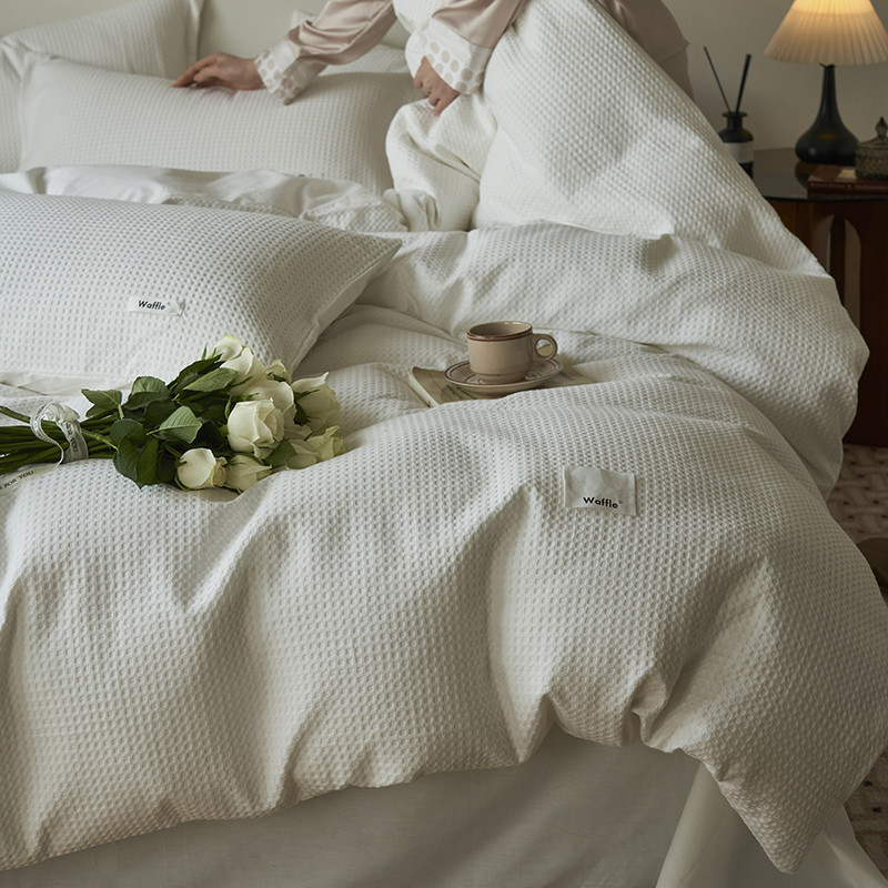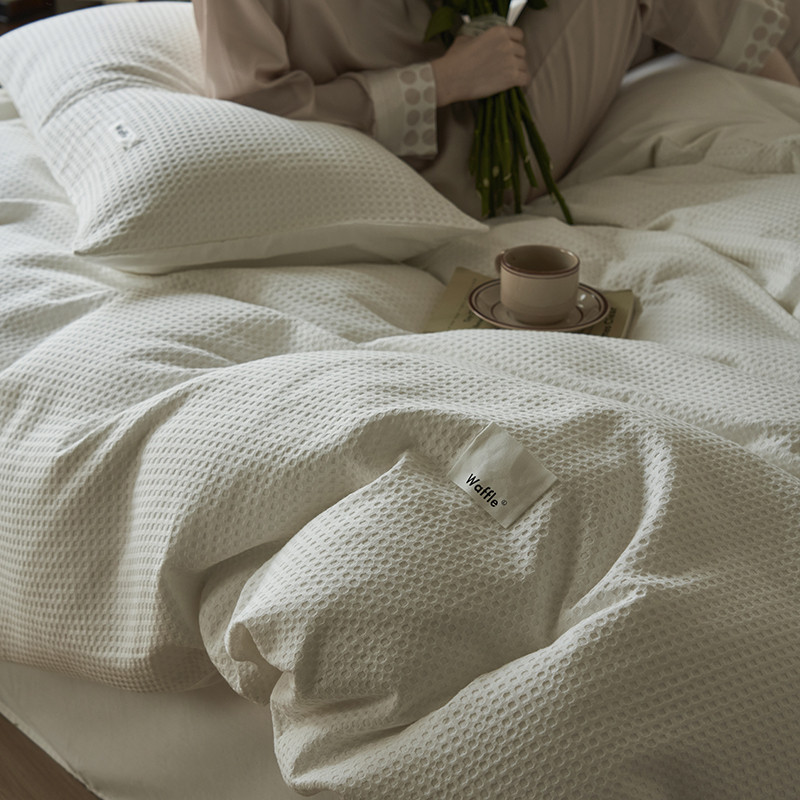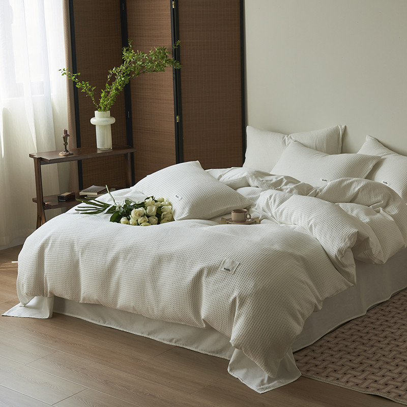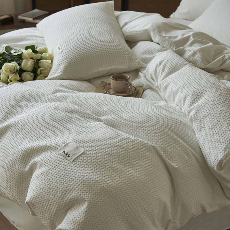 晨曦家纺 2023新款华夫格四季款四件套-小森林系列 小森林-荼白