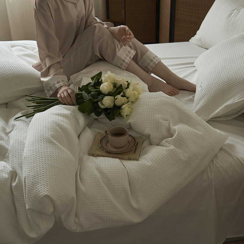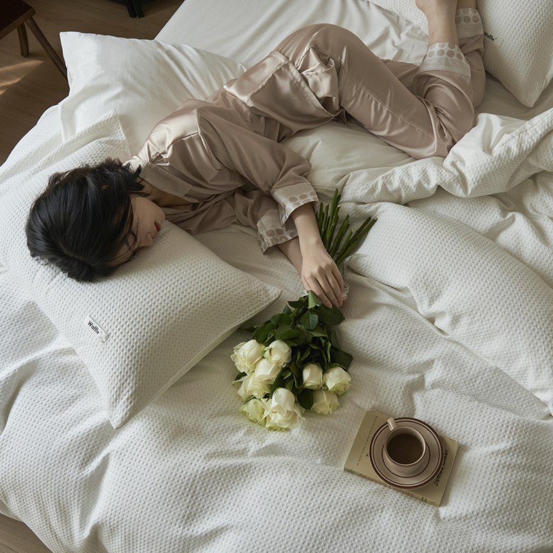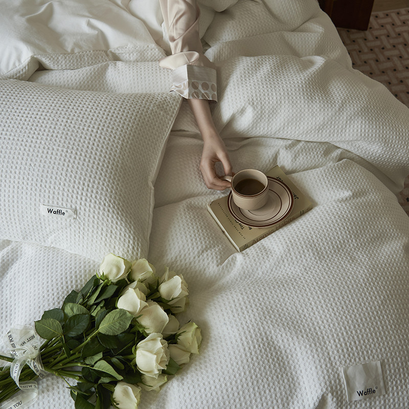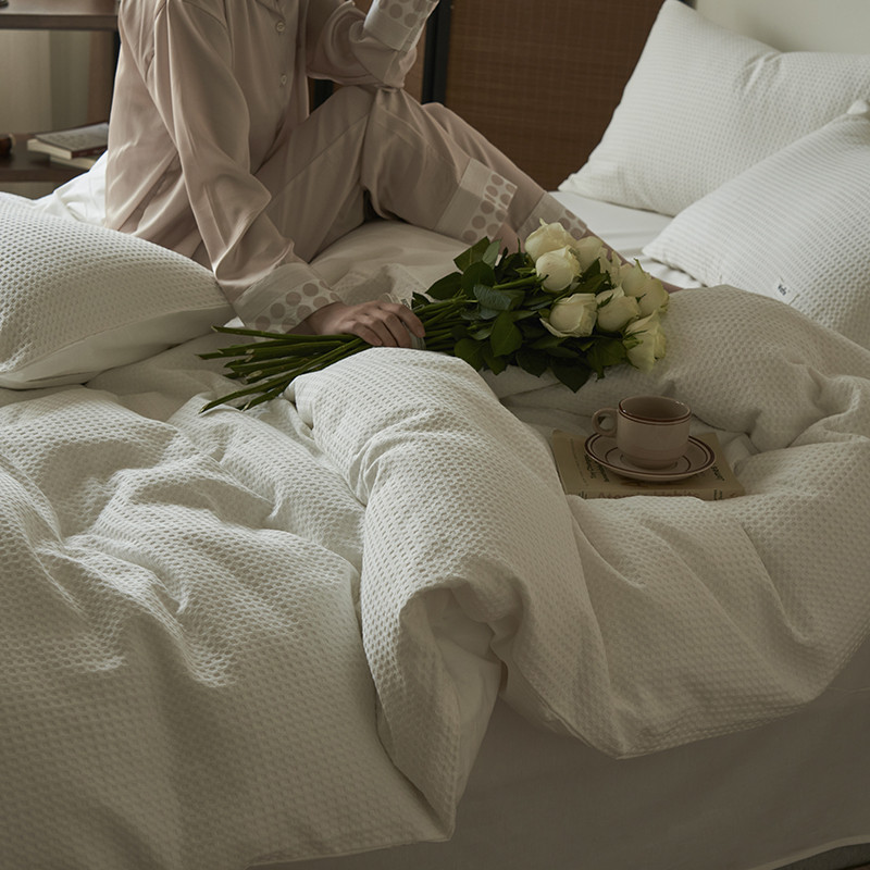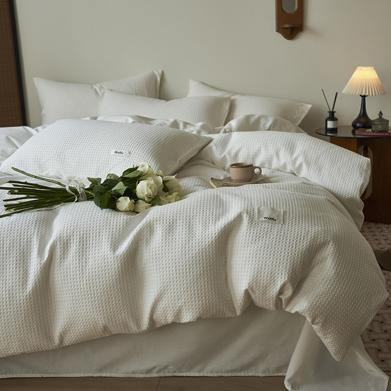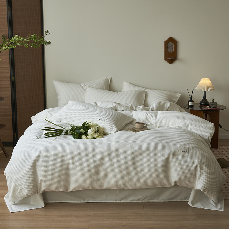 晨曦家纺 2023新款华夫格四季款四件套-小森林系列 小森林-荼白