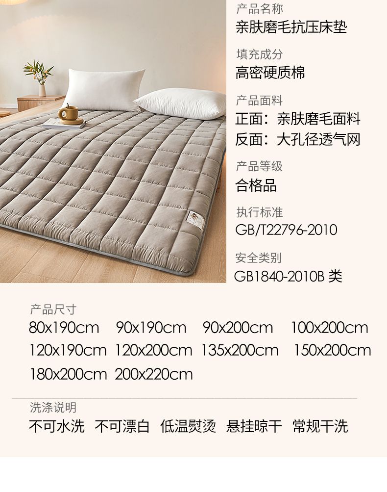 当前位置: 91家纺网 > 商品网购 > 床垫/床褥 > 普通床垫 > 亿丁点 2023新款磨毛抗压硬质棉绗缝抗压成人床垫 灰色