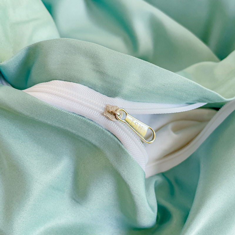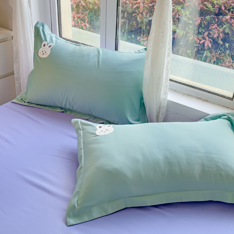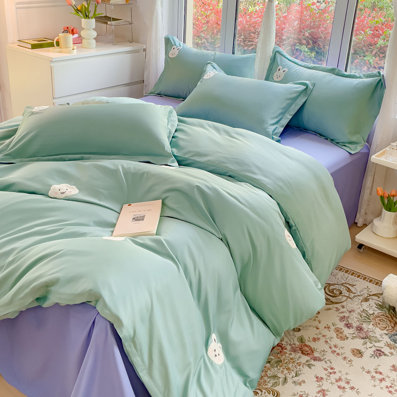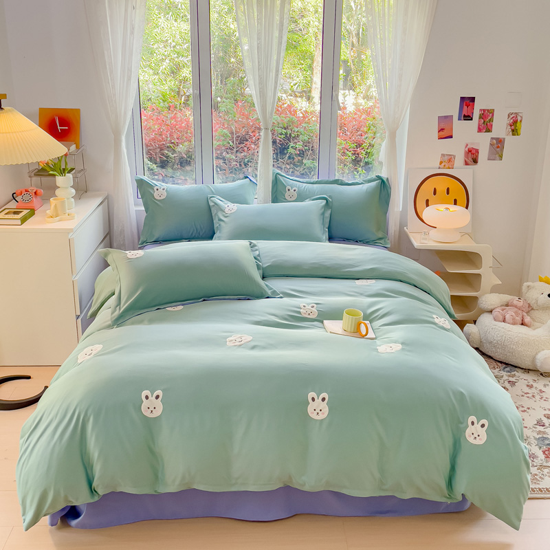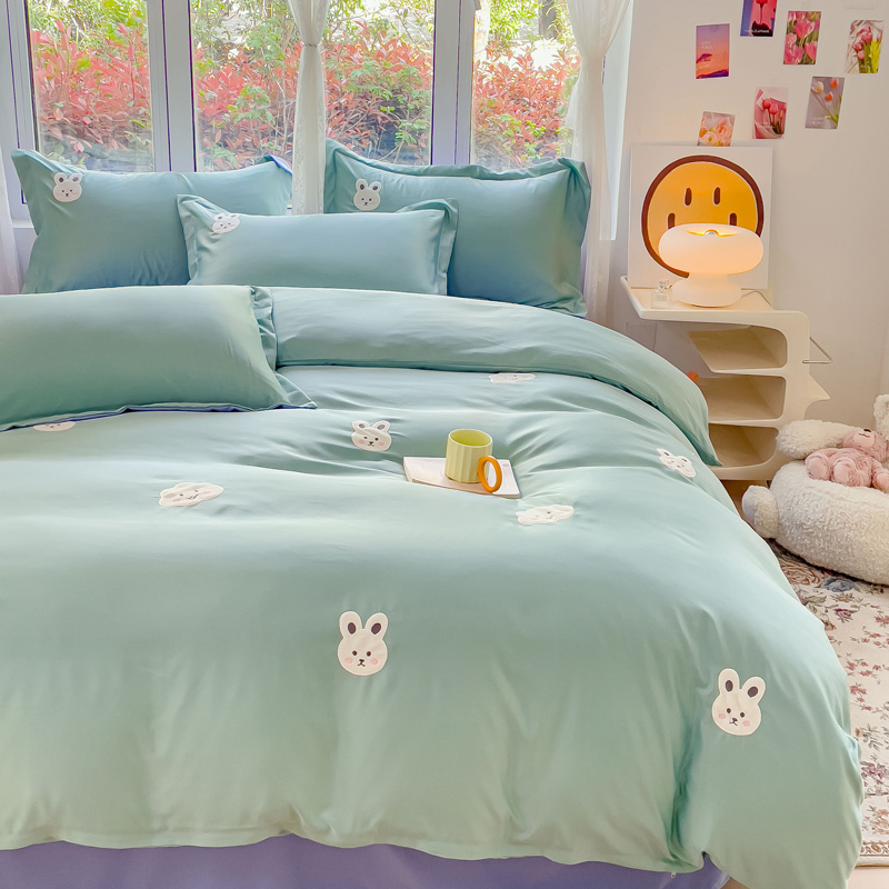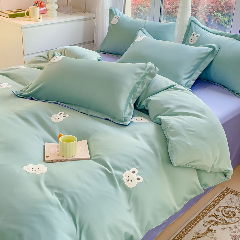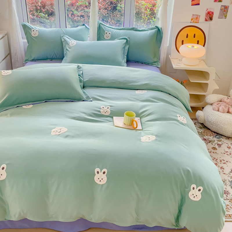 金丝鸟 2023新款水洗真丝贴布绣花四件套 萌兔-水绿