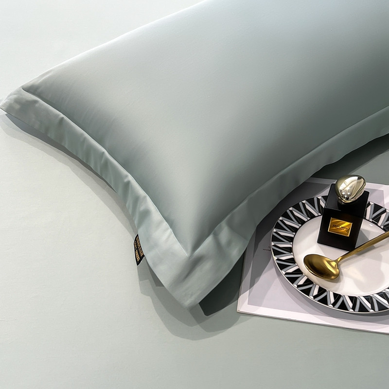 莱阁亿 2023新款高支高密纯色新疆长绒棉四件套单品枕套 丹青绿
