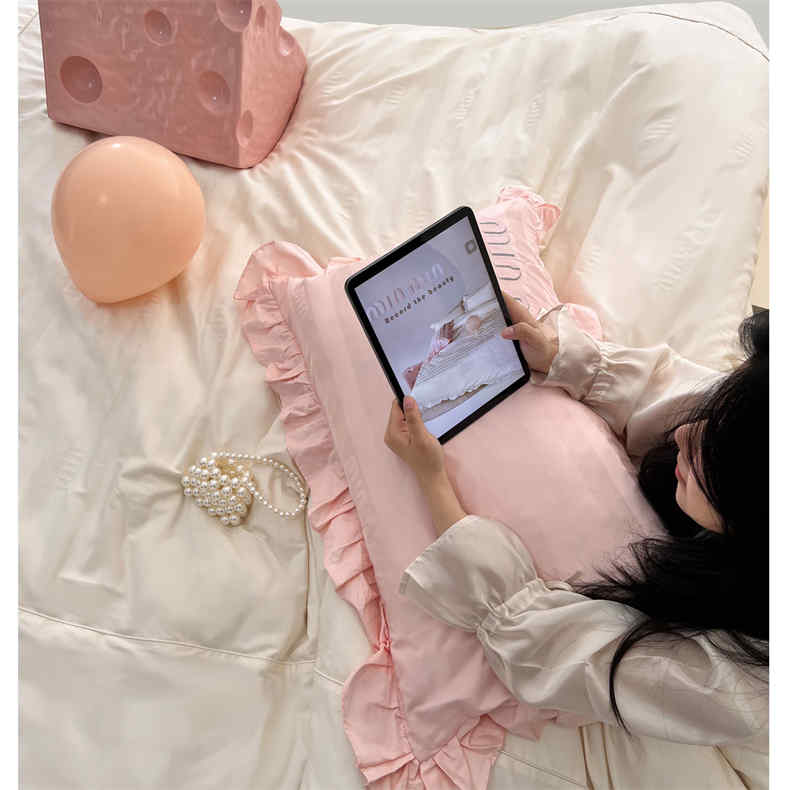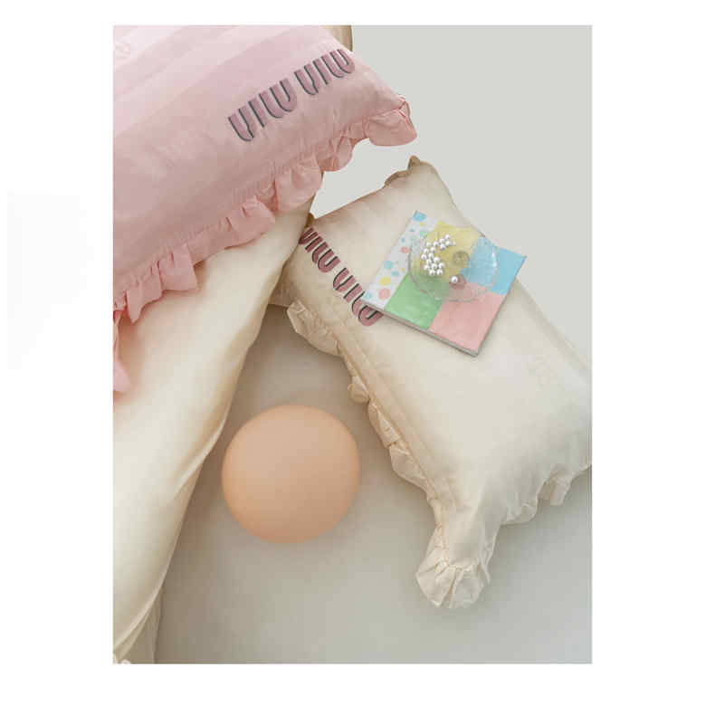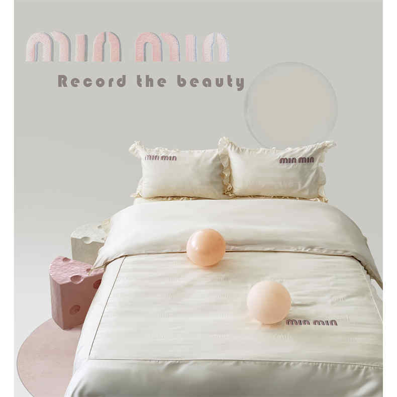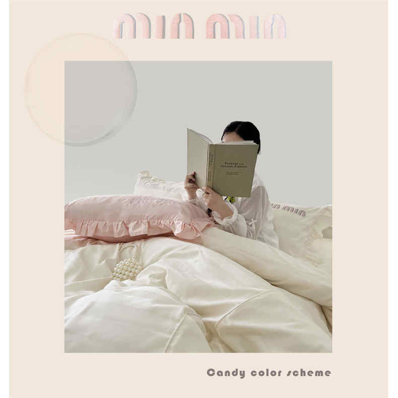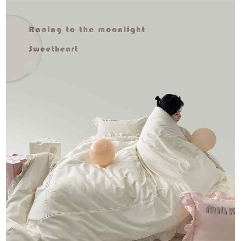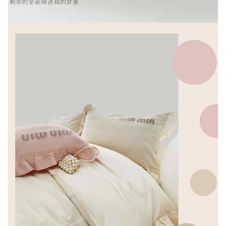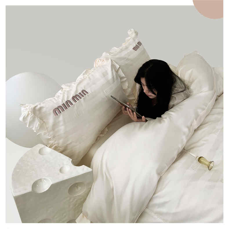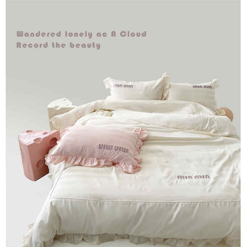 嘉汀兰家居 2023新款100支长绒棉绣花拼角宽边四件套-MIUMIU简爱 奶茶白