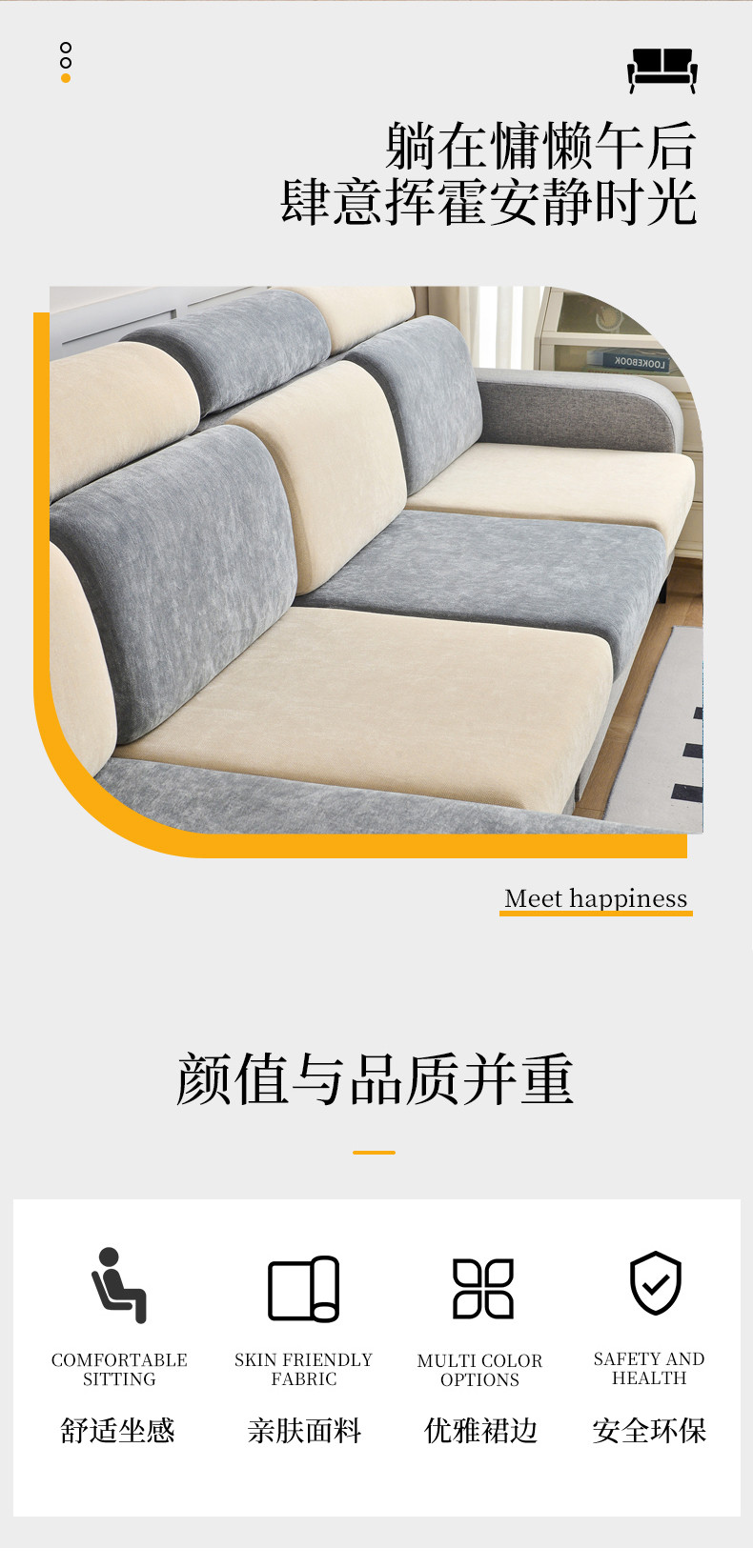 当前位置: 91家纺网 > 商品网购 > 居家布艺 > 坐垫/椅垫/沙发垫 > 沙发 > 千彤 2023新款常规款雪尼尔沙发笠系列 中性灰米黄
