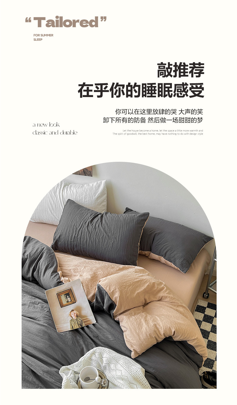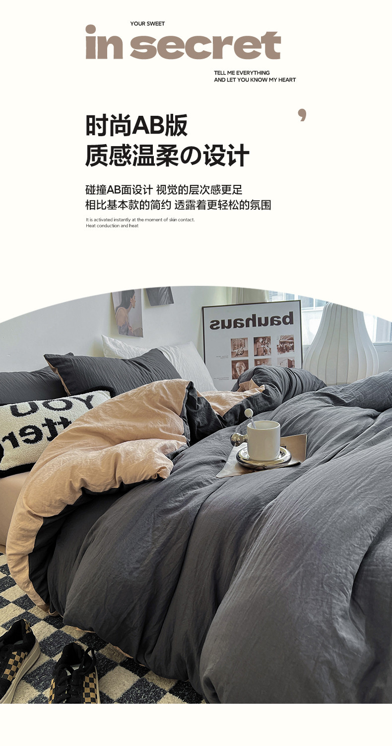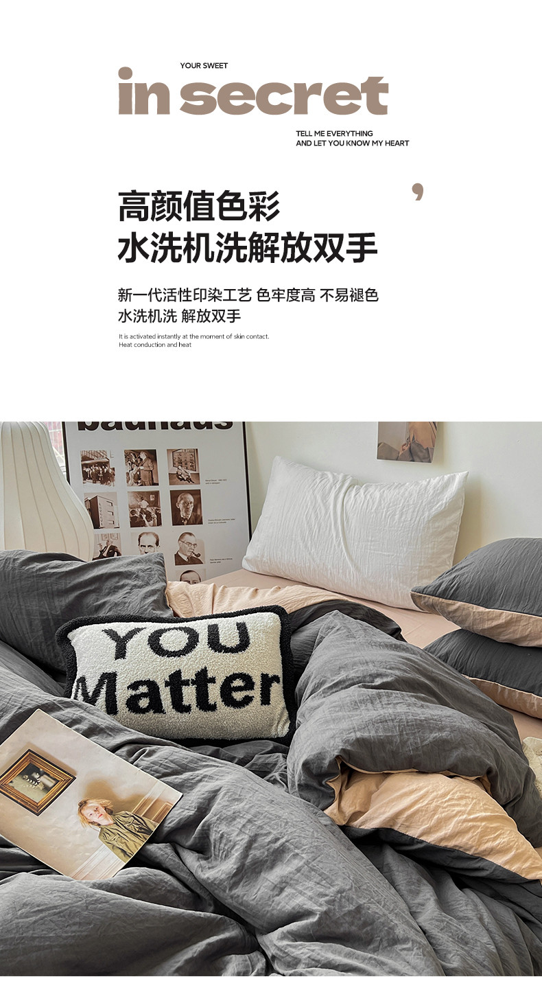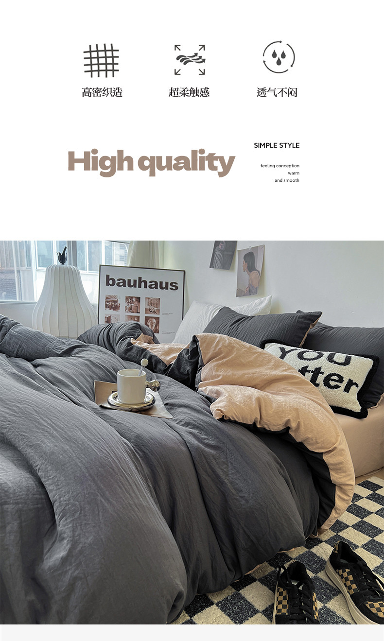 商品名称:水墨江南 2023新款超柔水洗棉简约纯色四件套 深灰中驼