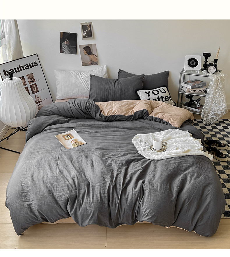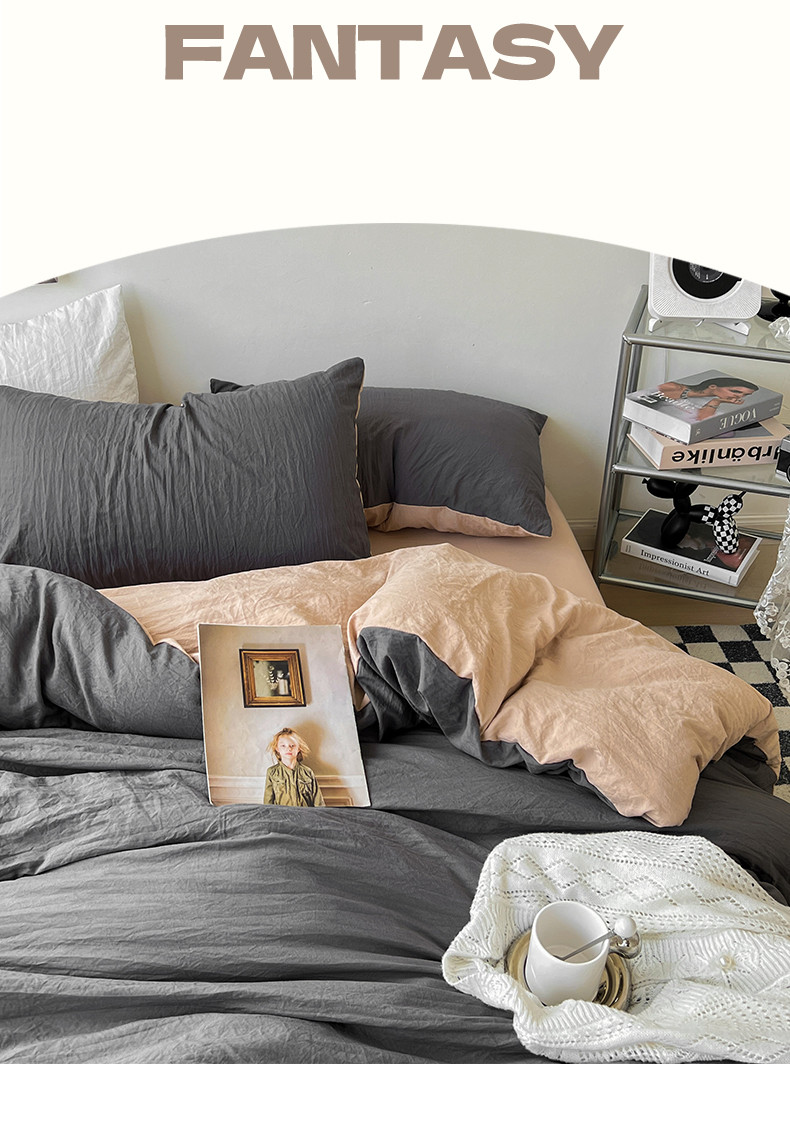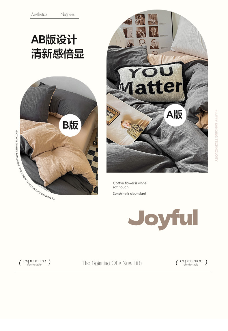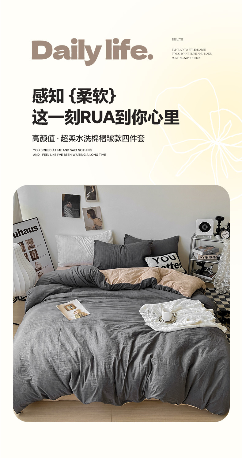 商品名称:水墨江南 2023新款超柔水洗棉简约纯色四件套 深灰中驼