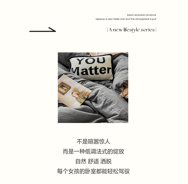 水墨江南 2023新款超柔水洗棉简约纯色四件套 深灰中驼