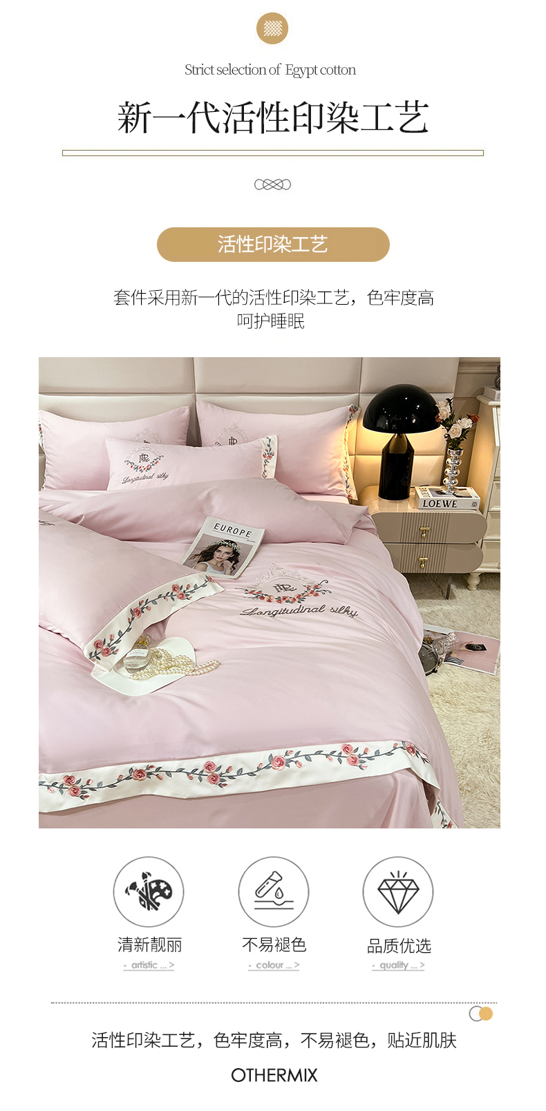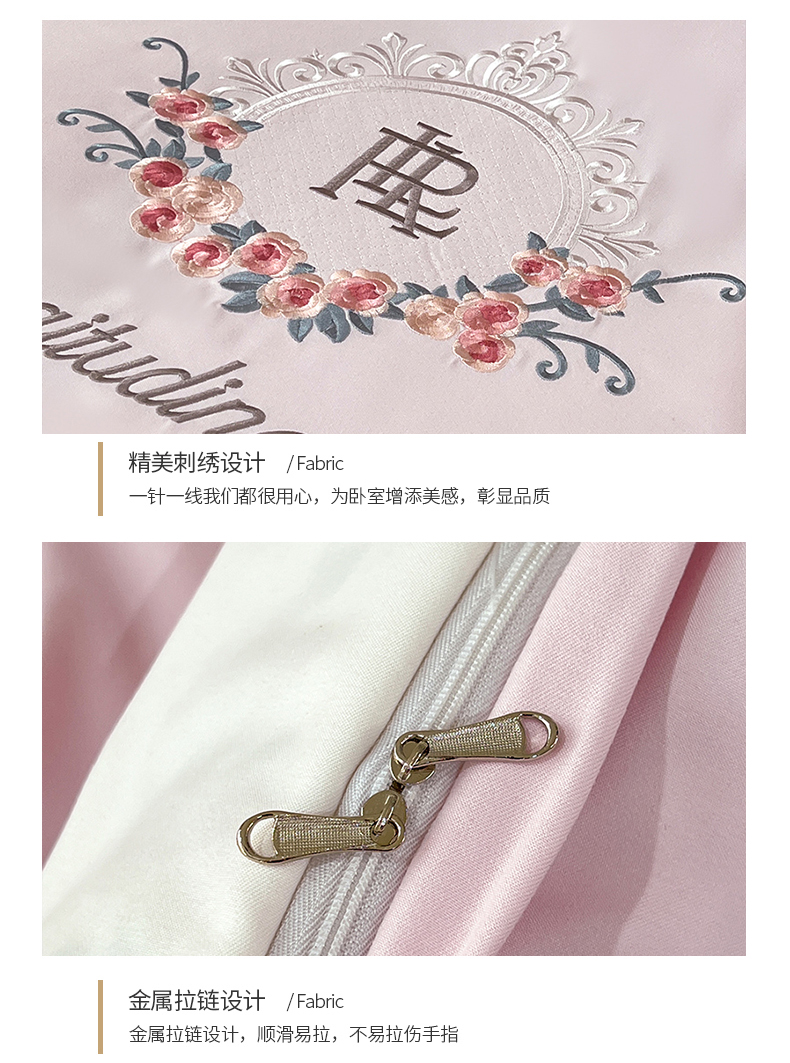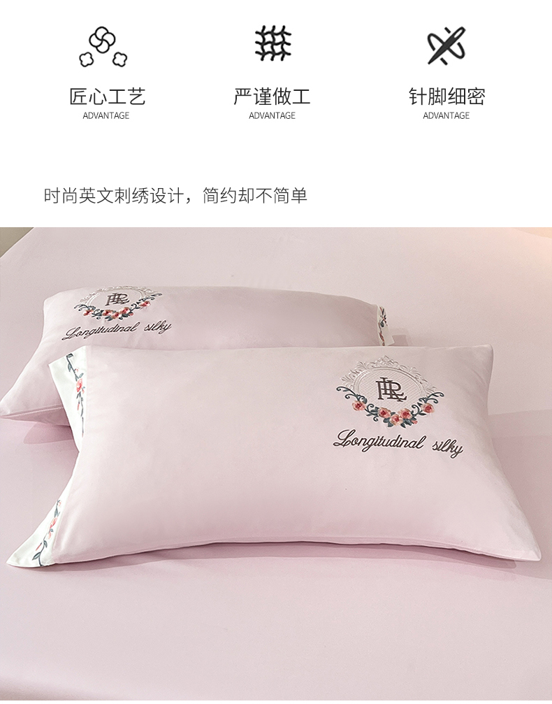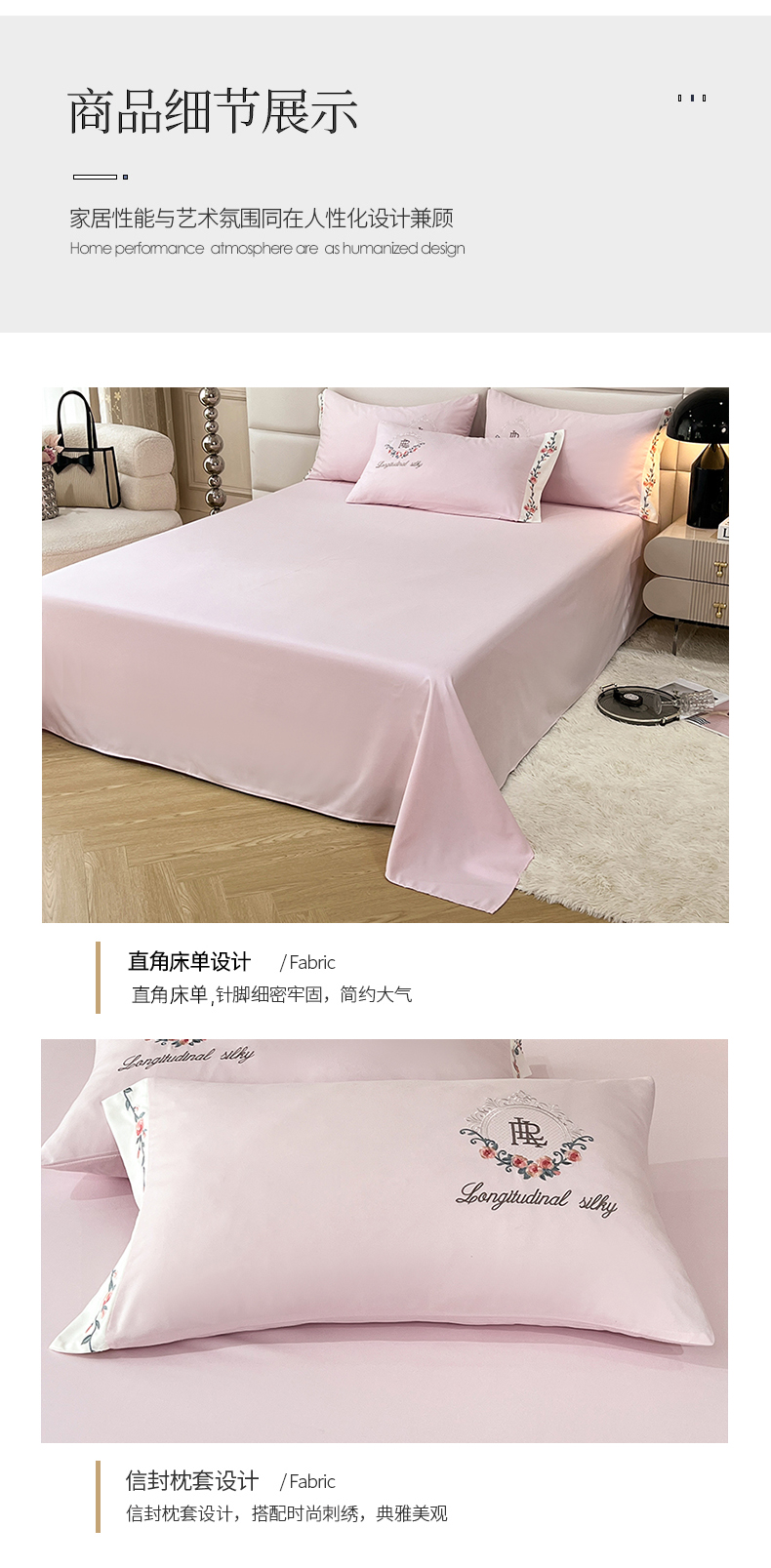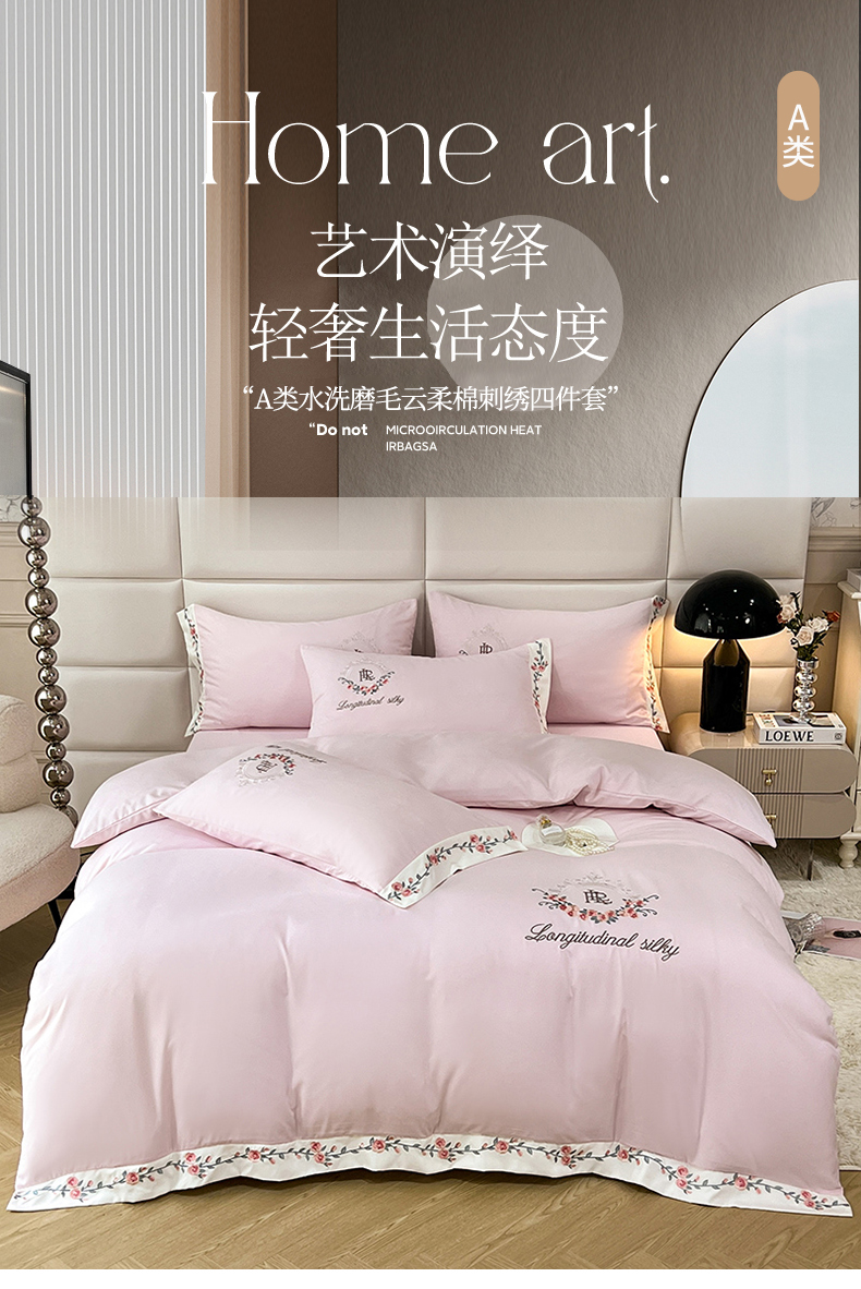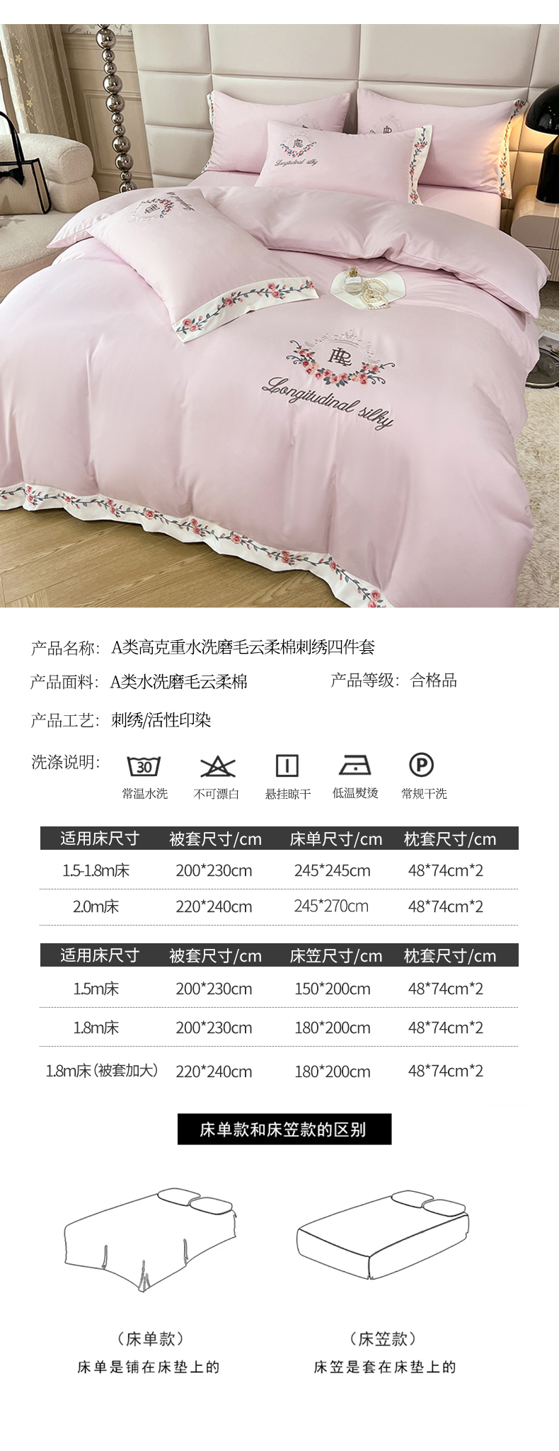 商品名称:易辰美 2024新款A类高克重水洗磨毛云柔棉刺绣四件套 少女粉