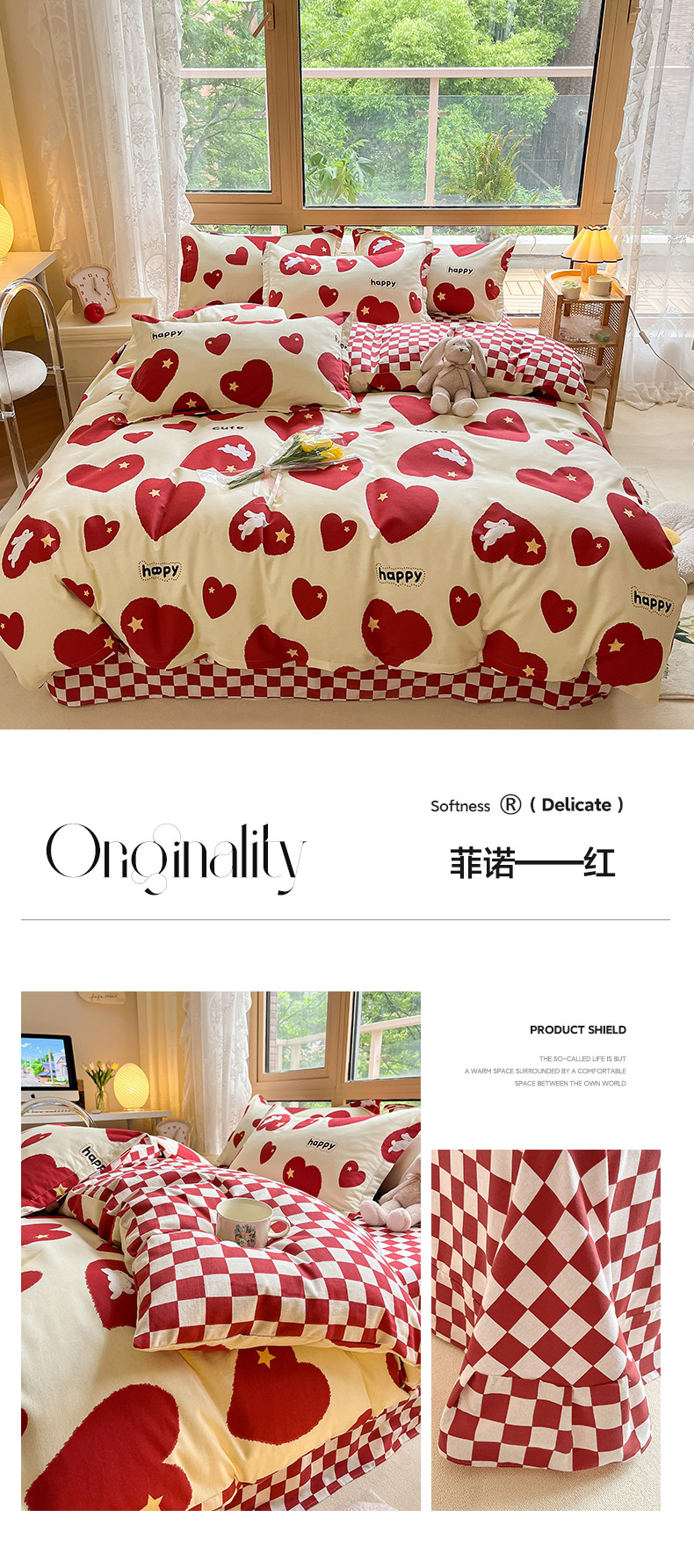 当前位置: 91家纺网 > 商品网购 > 床品套件 > 四件套 > 普通磨毛四件套 > 莱米 2023新款全棉磨毛印花四件套 菲若-红