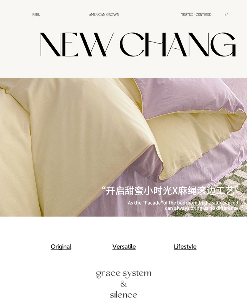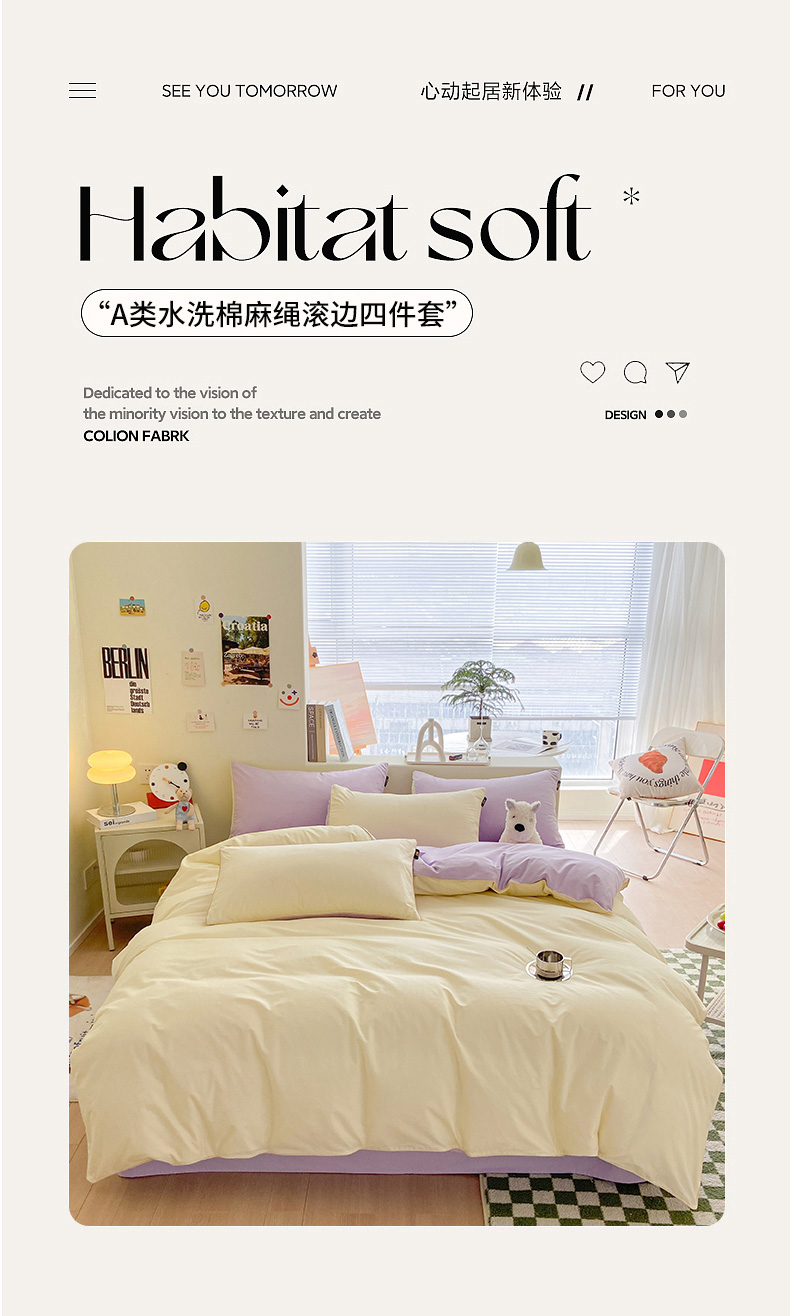当前位置: 91家纺网 > 商品网购 > 床品套件 > 四件套 > 水洗棉四件套 > 眠帛家居 2023新款A类芝士系列水洗棉麻绳滚边四件套 芝士奶昔白浅紫