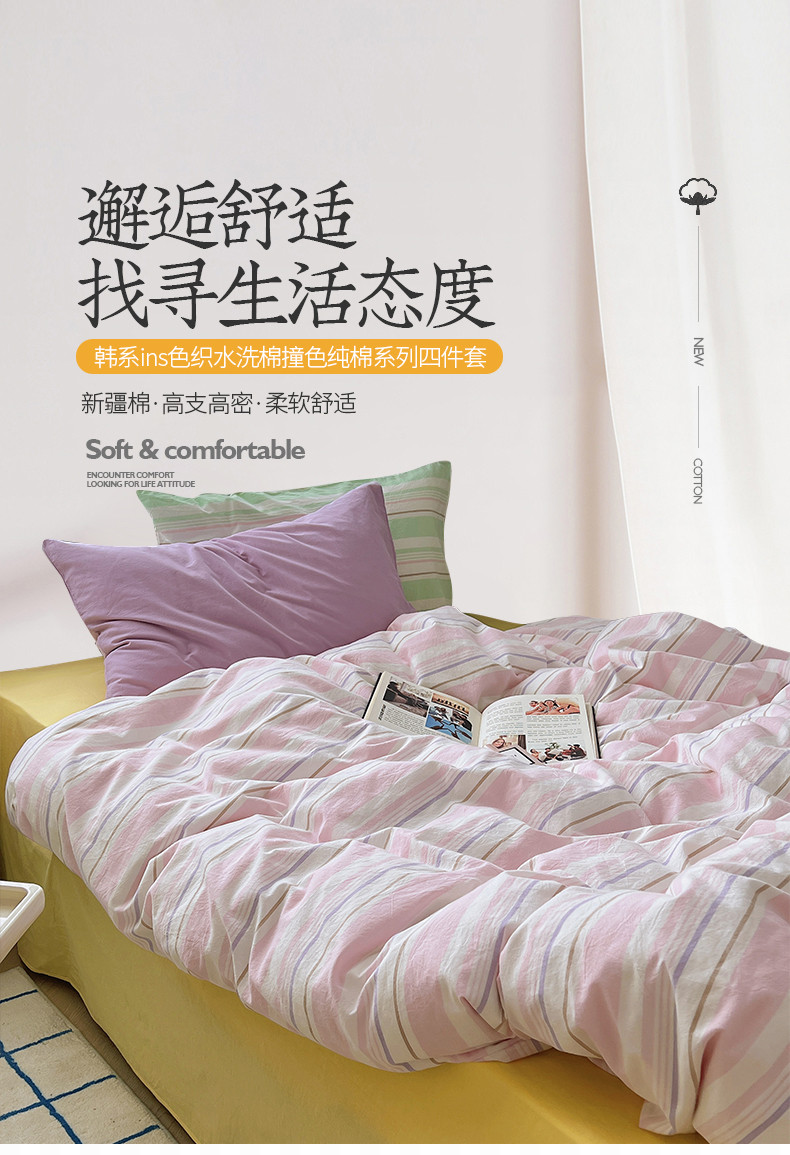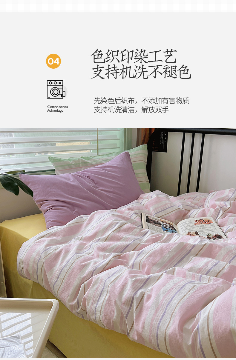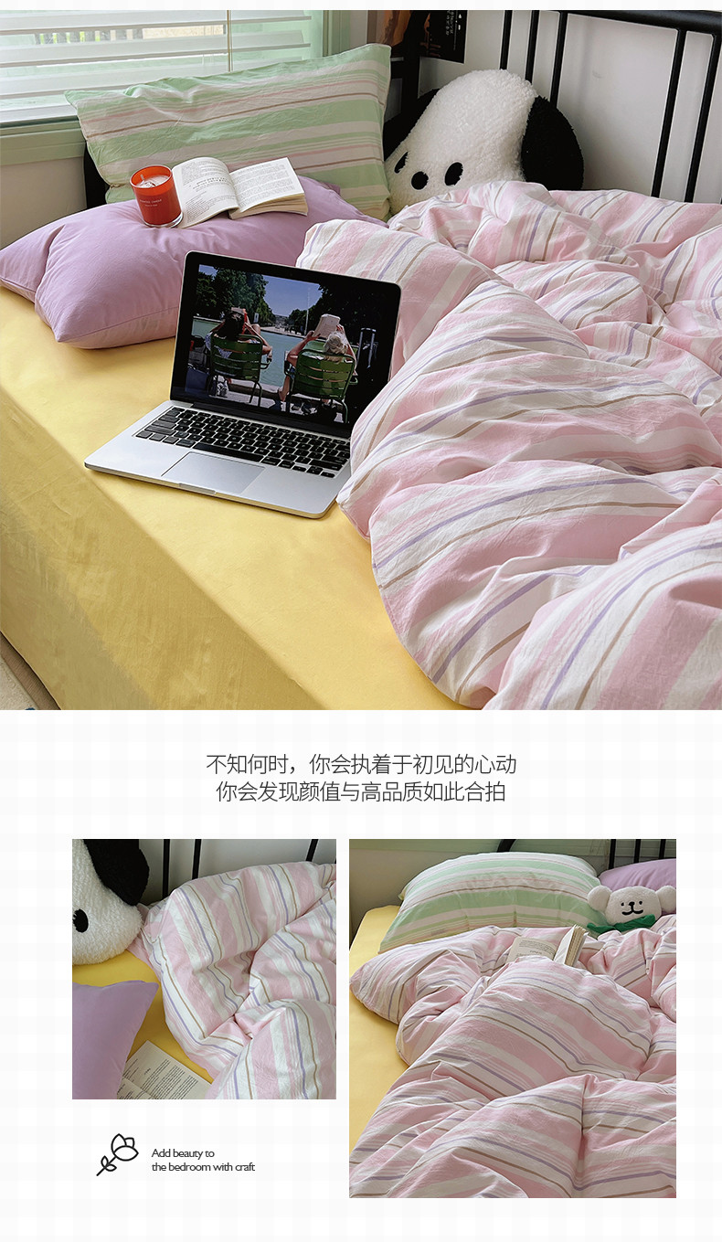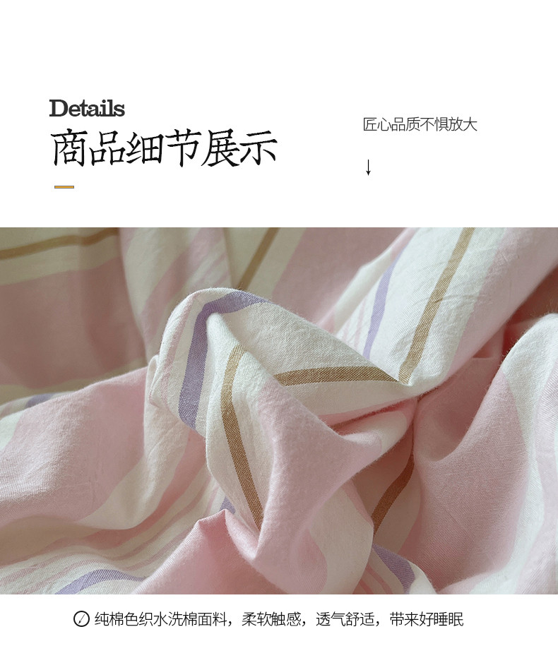 商品名称:桃子 2023新款韩系ins色织水洗棉条纹混搭撞色纯棉系列四件套 色织水洗棉-条纹粉