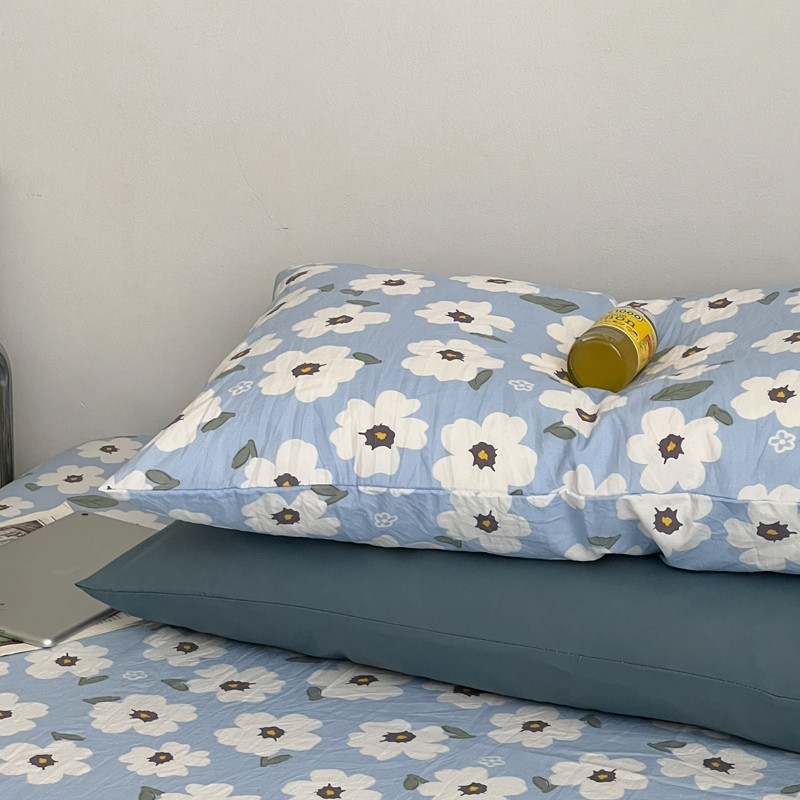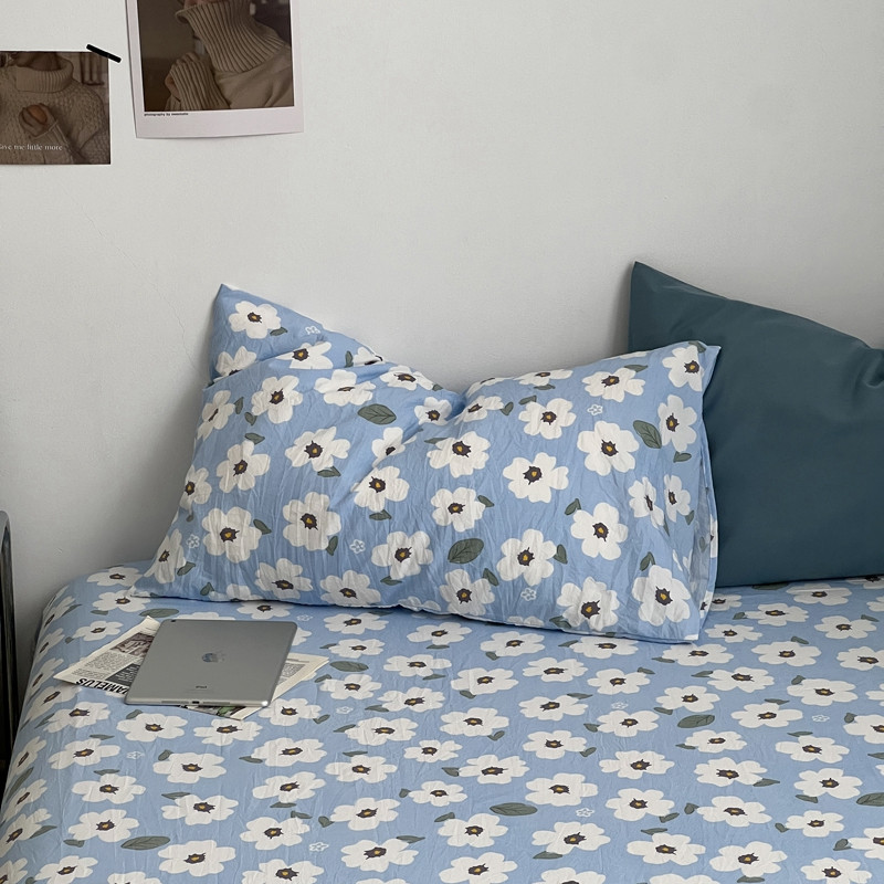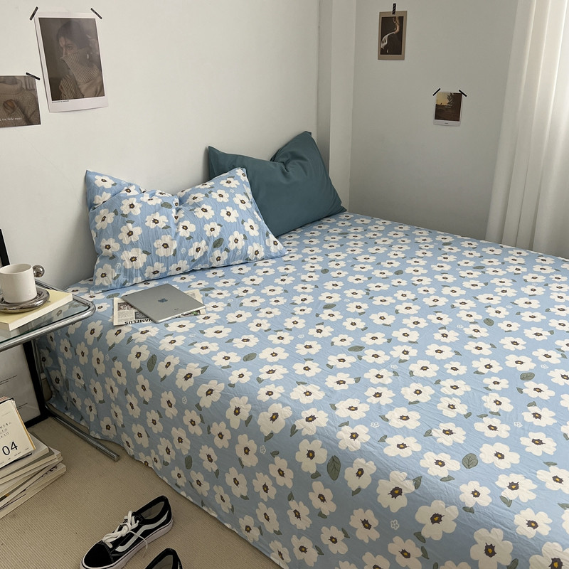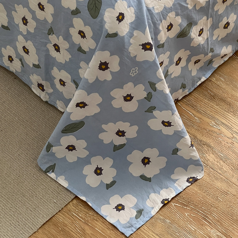 直播热款水洗棉双层纱四件套碎花简约风床单单品单件 雾霾兰+花溪