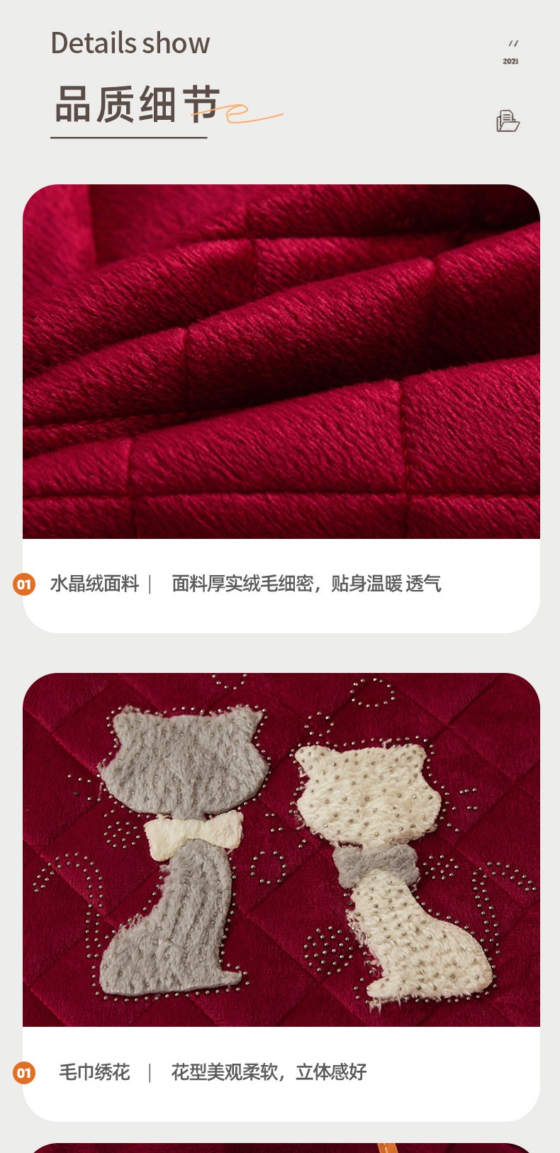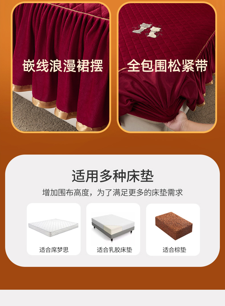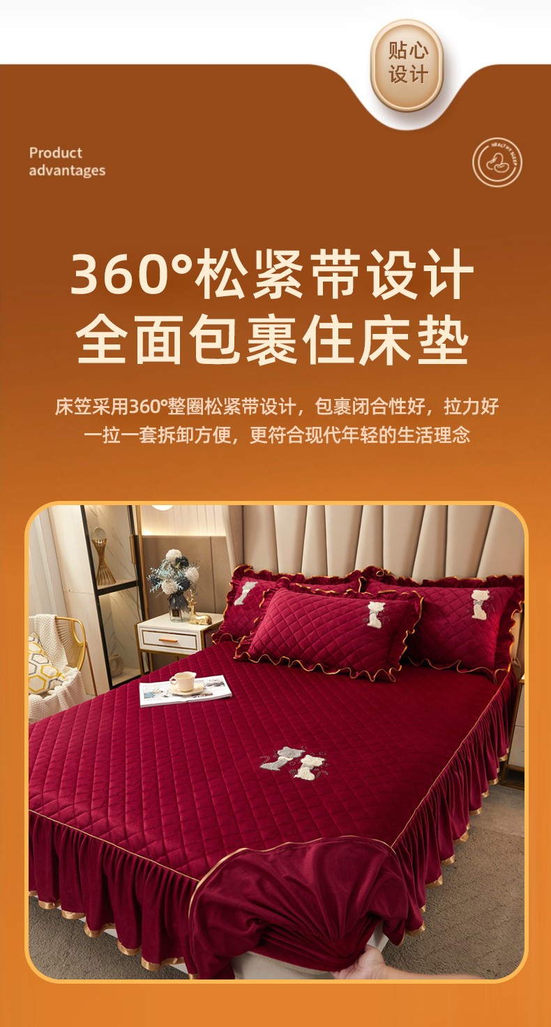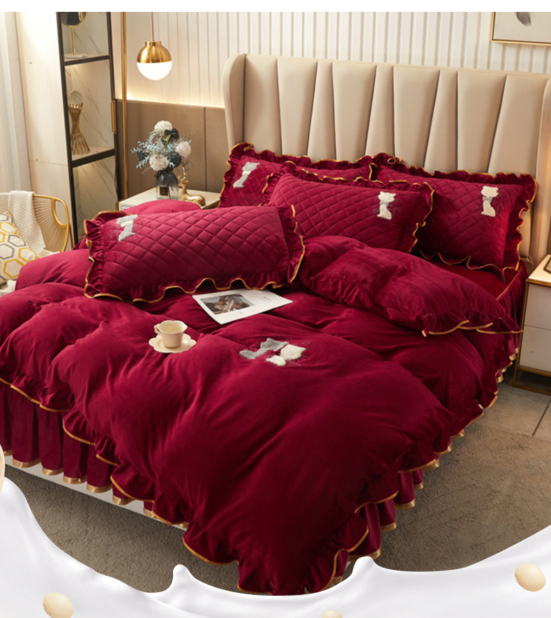 当前位置: 91家纺网 > 商品网购 > 床品套件 > 四件套 > 水晶绒四件套 > 恋尚 2023新款水晶绒夹棉床裙床笠四件套-KT猫系列 酒红