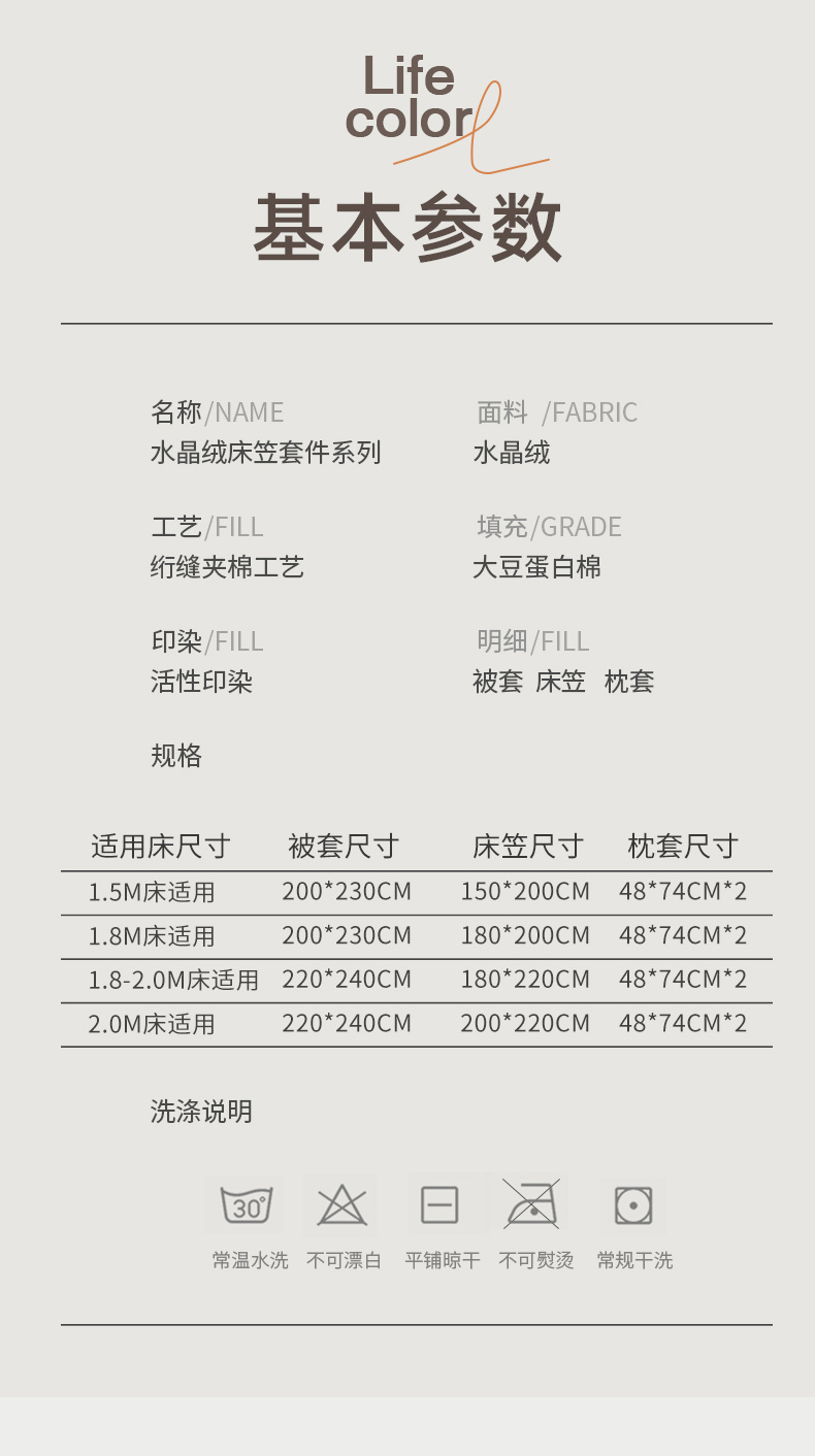 200*220cm夹棉床笠四件套 | ¥190.00 |