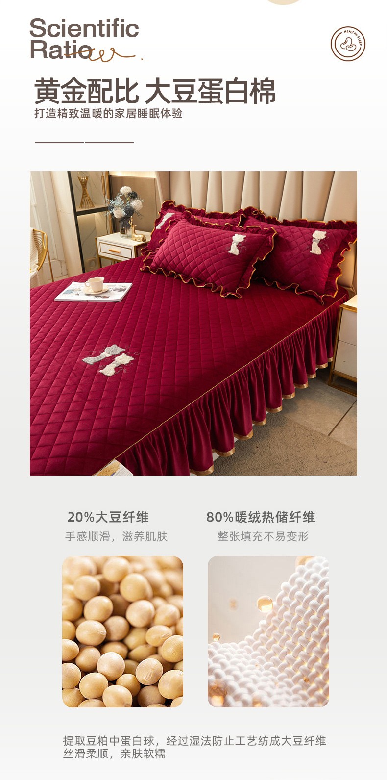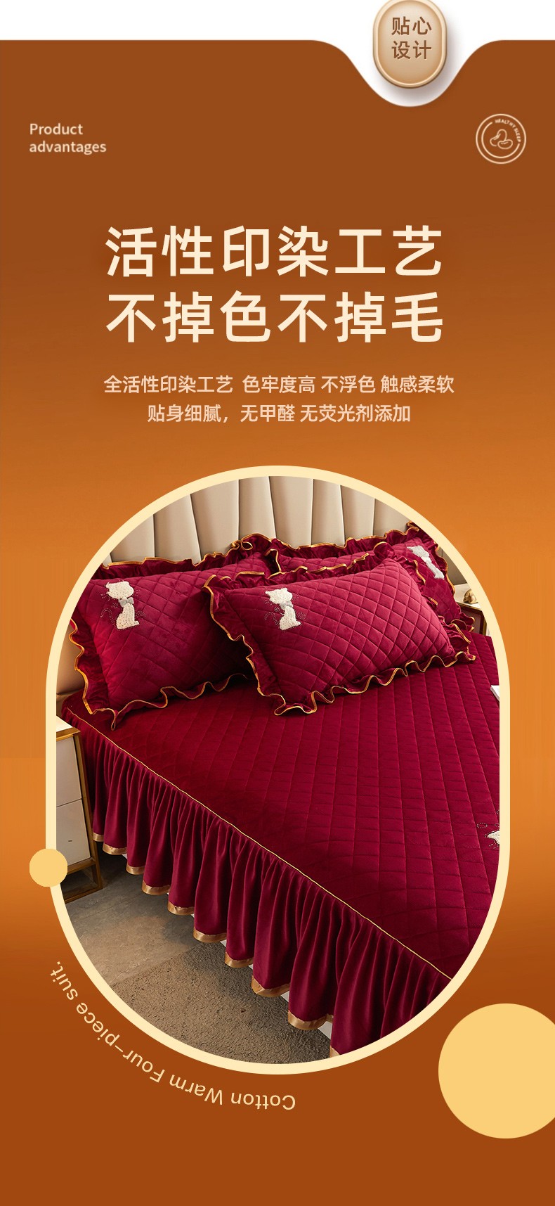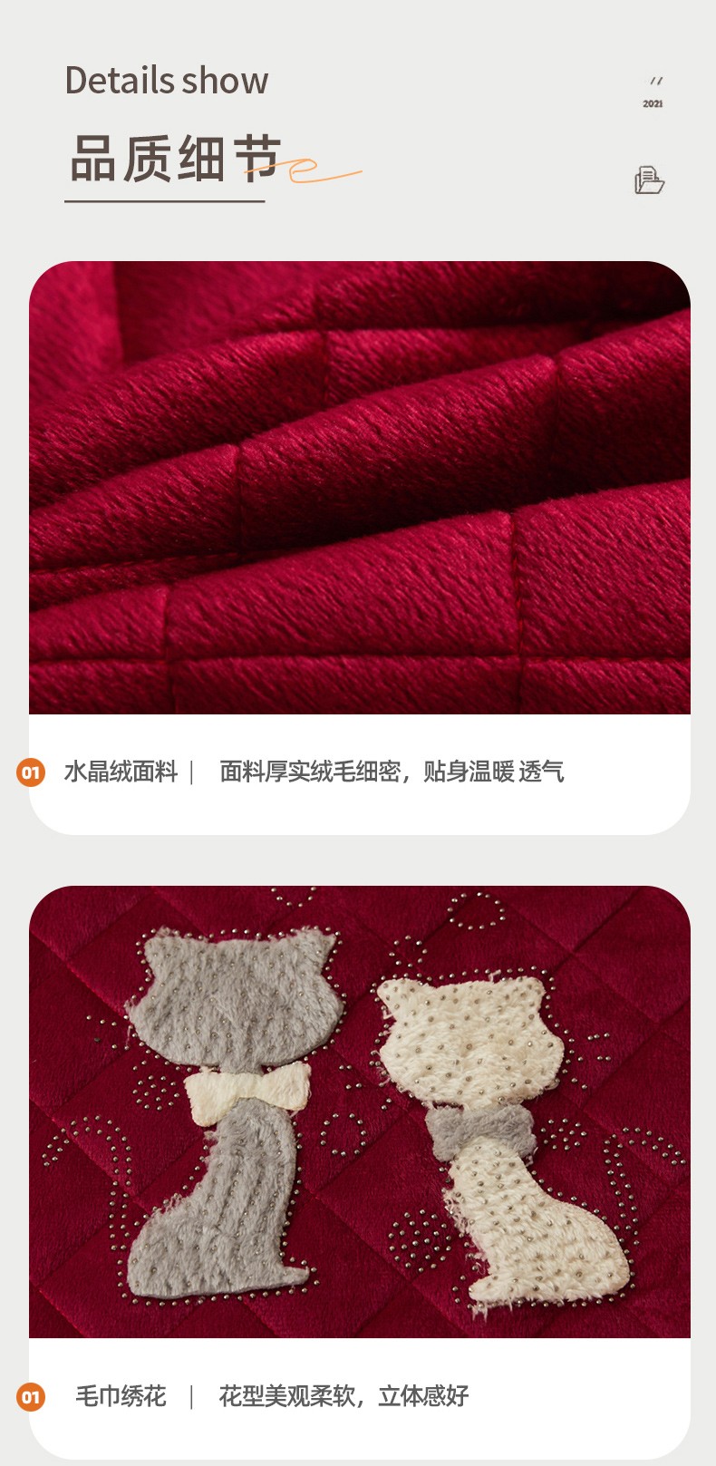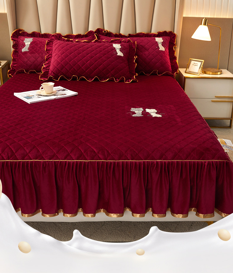 • 91家纺网 家纺一手货源 找家纺 恋尚 2023新款水晶绒夹棉床裙床笠四件套-KT猫系列 酒红