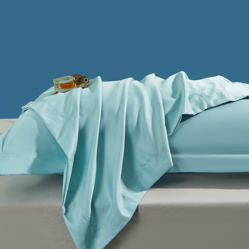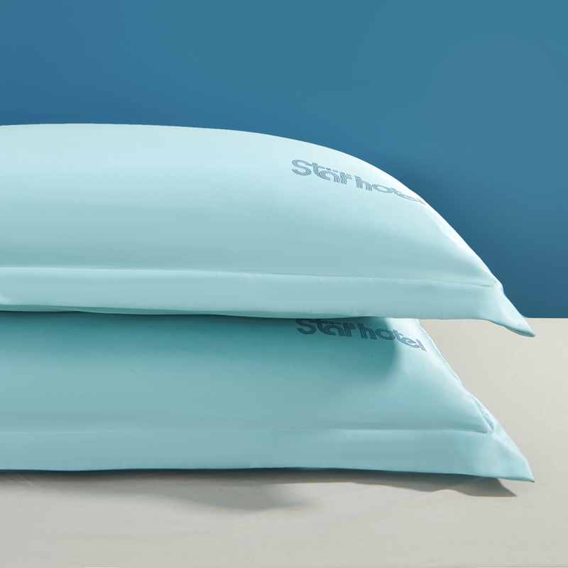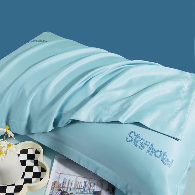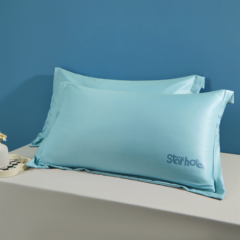 蓝冰家纺 2023新款水洗真丝印花宽边枕套 蓝