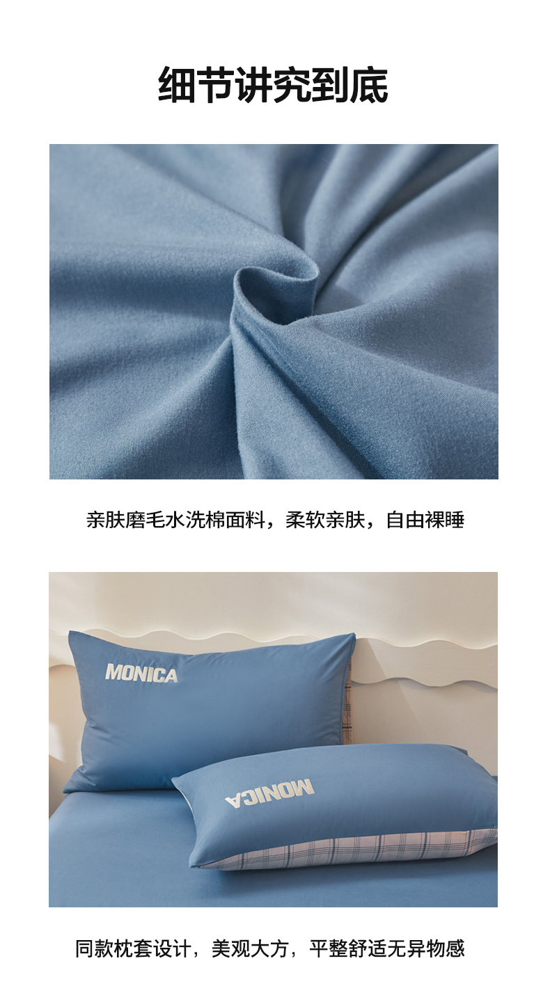 商品名称:欣晴家纺 2023新品色织水洗棉磨毛刺绣四件套 宝蓝格