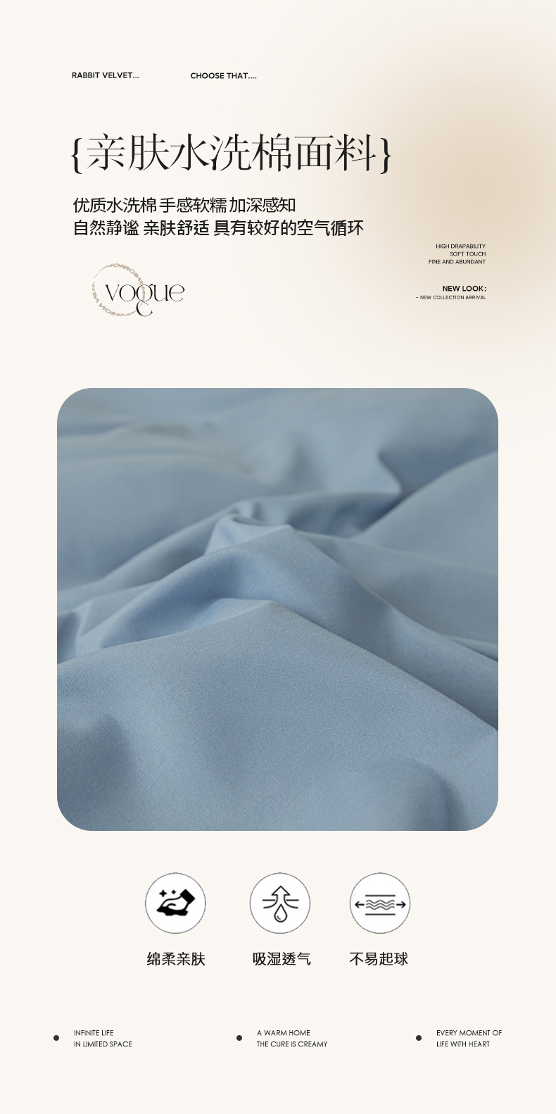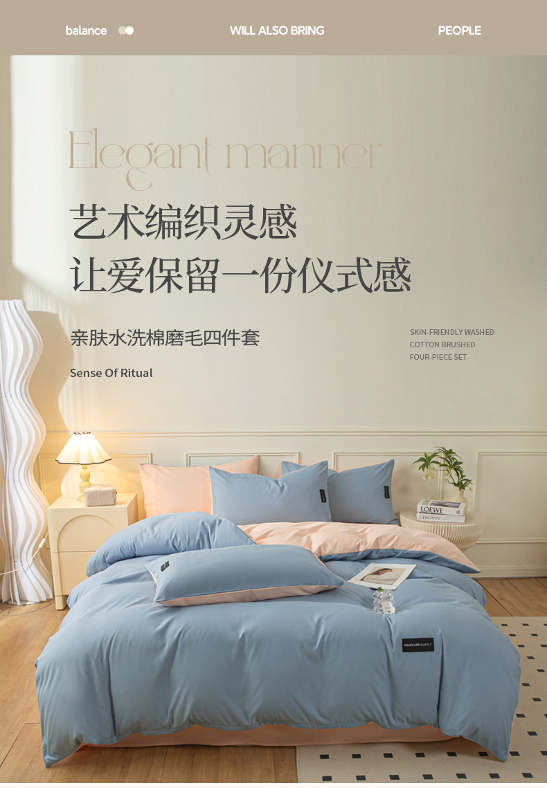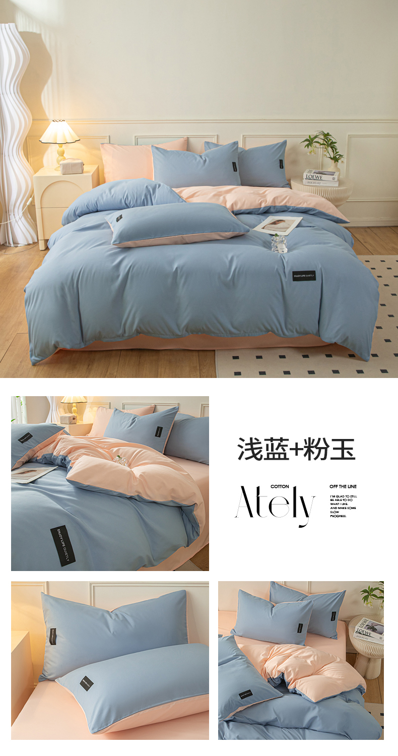 当前位置: 91家纺网 > 商品网购 > 床品套件 > 四件套 > 水洗棉四件套 > 欣晴家纺 2023新品亲肤水洗棉磨毛织标系列三件套四件套 浅蓝+粉玉