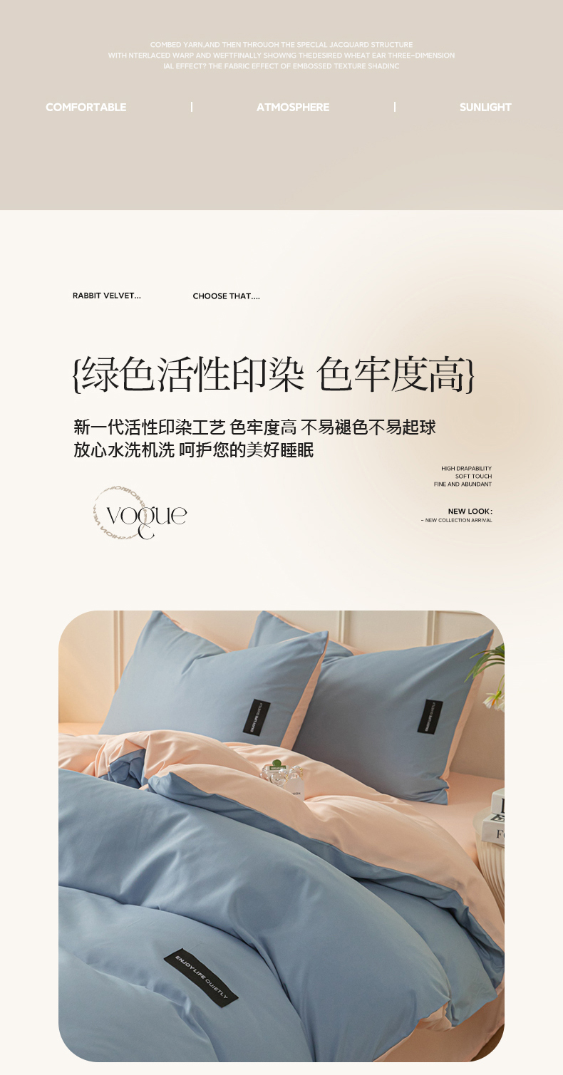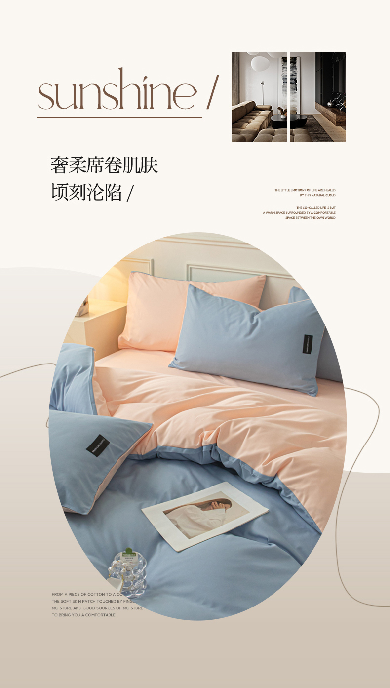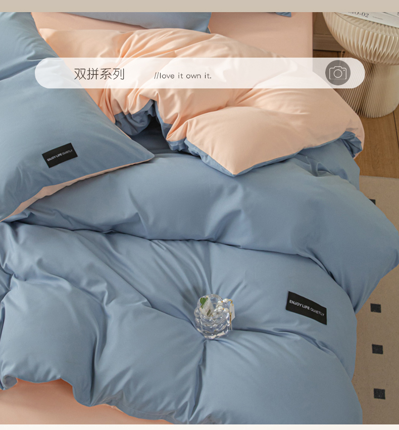 当前位置: 91家纺网 > 商品网购 > 床品套件 > 四件套 > 水洗棉四件套 > 欣晴家纺 2023新品亲肤水洗棉磨毛织标系列三件套四件套 浅蓝+粉玉