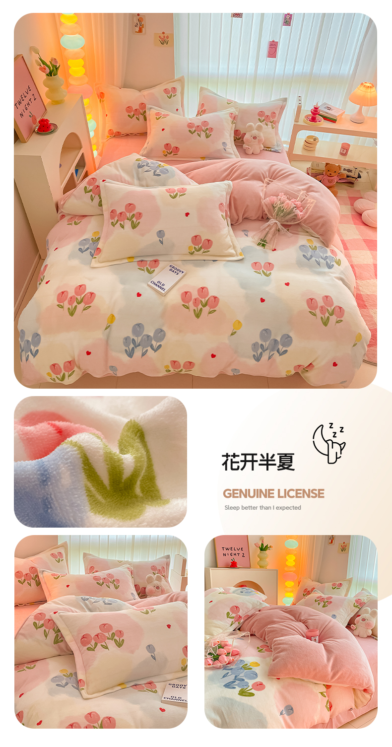 莱米家纺 2023新款小版牛奶绒印花四件套 花开半夏