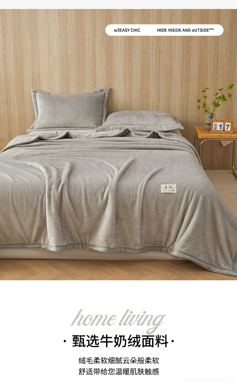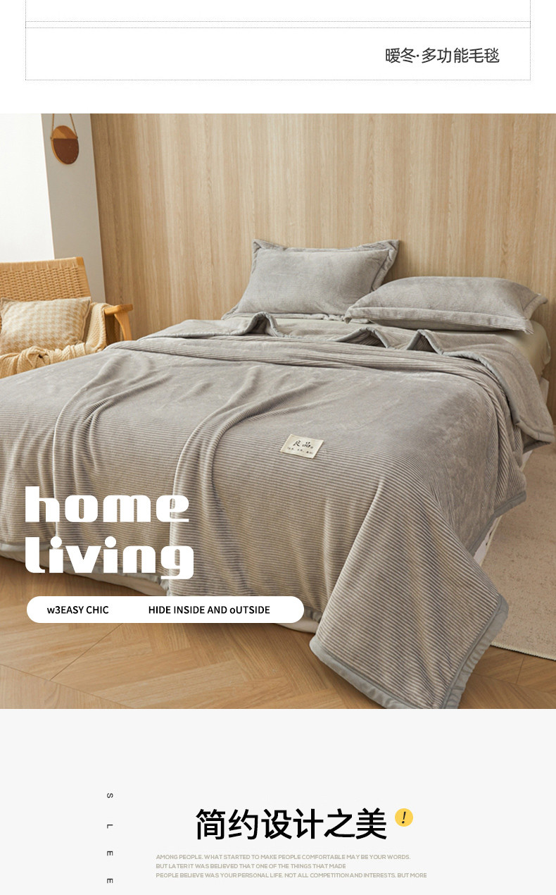 当前位置: 91家纺网 > 商品网购 > 毛毯休闲毯绒毯 > 毛毯 > 雅萱家纺 2024新款良品系列牛奶绒多功能毛毯盖毯 良品-浅灰
