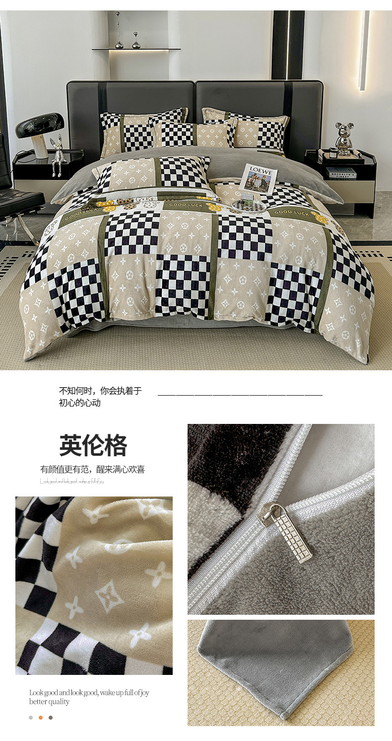 商品名称:耀达 2024新款轻奢加厚牛奶绒四件套 英伦格